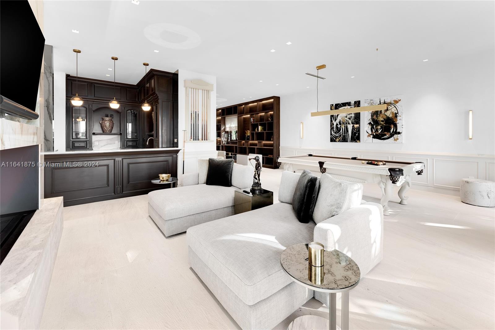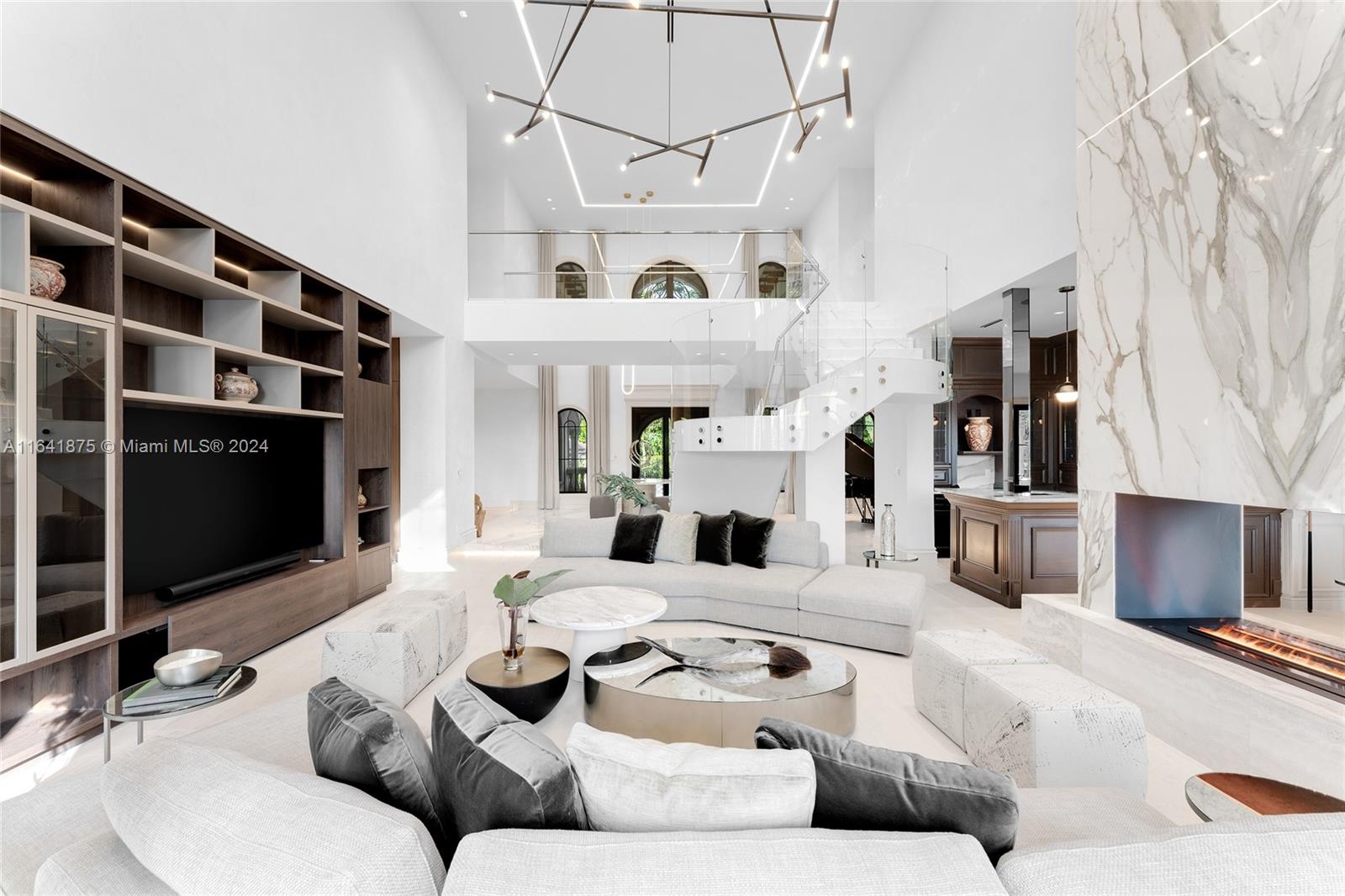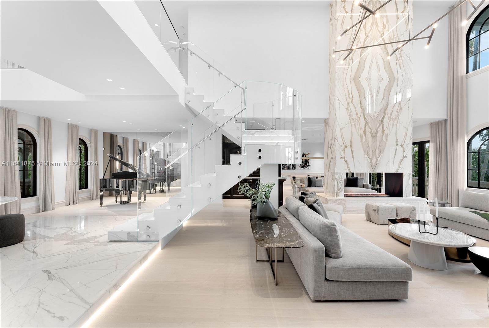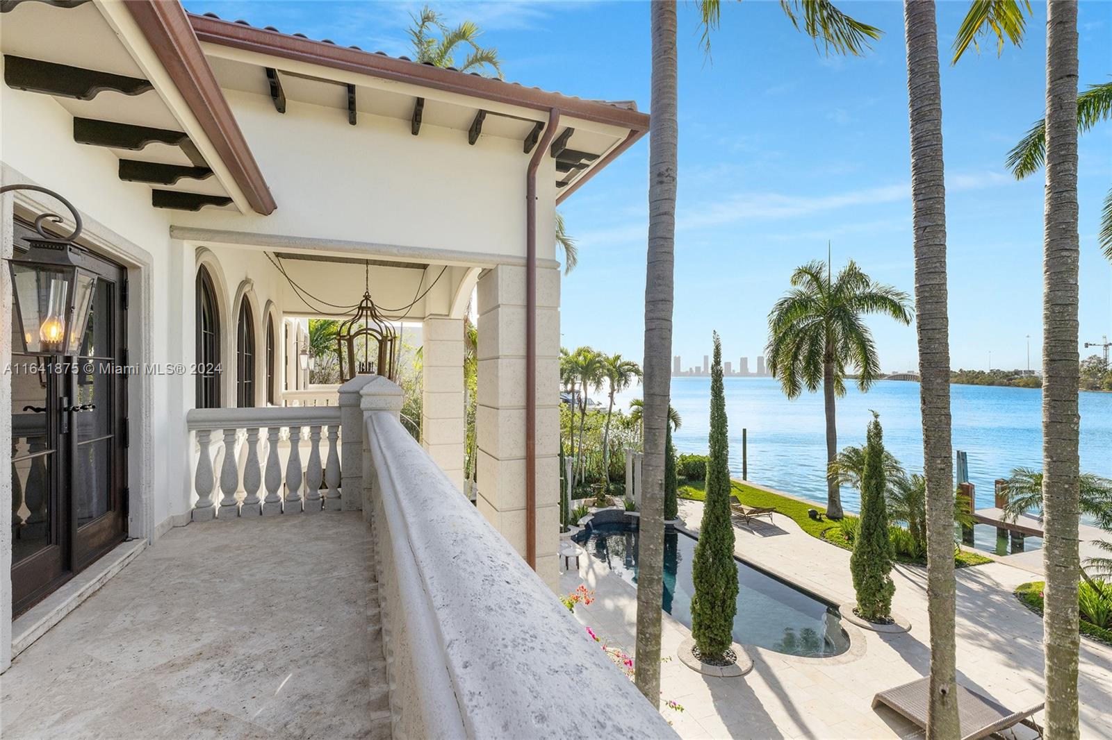 This gated transitional style, 2-story waterfront estate on North Bay Road has undergone a stunning expert renovation using only the finest materials. Sitting on a 20,500 SF lot the 6BR/7+1BA home offers 9,852 total SF. Features soaring ceilings, marble/limestone floors, custom marble/glass staircase, living room w/fireplace, dining room w/wine cellar, family room, bar/game room, all w/amazing water views. Chef’s kitchen boasts top-of-the-line appliances, center island, custom cabinetry & natural stones. Large 2nd floor principal suite with a private terrace & stunning principal bath w/designer walk-in closet. Outdoor highlights: covered seating area, pool, bar/summer kitchen, full cabana bath, 100’ WF, dock w/boat & jet-ski lifts-direct bay access. Truly the Crown Jewel of North Bay Road.
