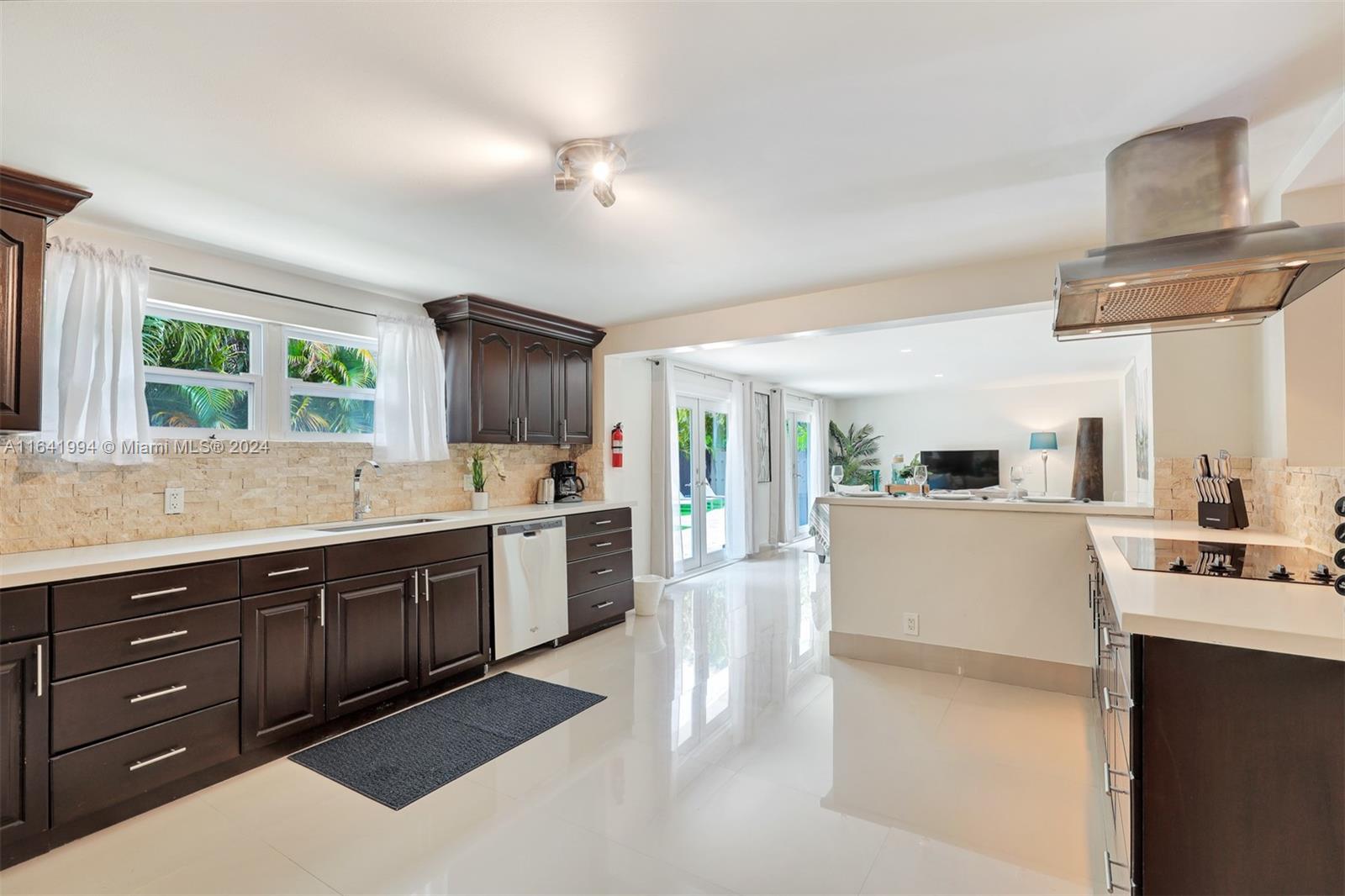 Sparkling porcelain floors throughout. 6 bedroom, 3 bath large split bedroom floorplan w/huge living room. Gourmet-style kitchen. Newer appliances. Beautiful sunken Florida room. Gigantic master bedroom upstairs and also a large jr master suite w/office downstairs. Contemporary feel throughout. Several new, storm impact resistance windows and French doors. Freeform, underground pool! Walk across the street to famous FTL Beach within 5 minutes from your front door. This house has ocean-access dockage w/no fixed bridges and private Harbor Beach Surf Club access available. Google Harbor Beach Surf Club membership available