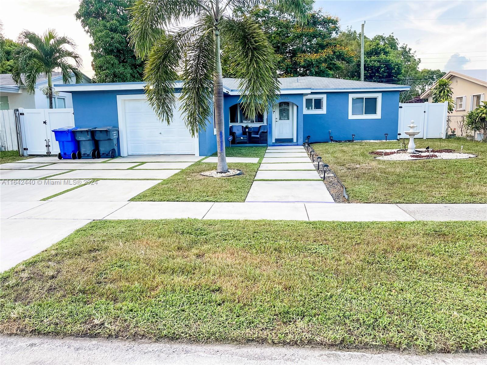 Welcome to the best house on the block! Beautiful, well-kept 3 bed/2 bath/1-Car garage with spacious backyard in prime Hollywood/Pines location! Home features a lovely, split floor plan with modern touches; vinyl flooring, recessed lighting throughout, elegant fixtures, granite countertops, SS appliances, Impact windows, & French doors opening to a lovely, spacious back patio. Family room can be a multi-use room. Owners spared no expense having driveway/walkway redone & expanded for more charm and enhanced curb appeal! The back patio/yard is fully fenced for total privacy and perfect for entertaining! Property is centrally located to Hollywood beach, major highways, local shopping, dining, and entertainment such as The Hard Rock Hotel & Casino. Make this beauty yours today! Sold As-Is.