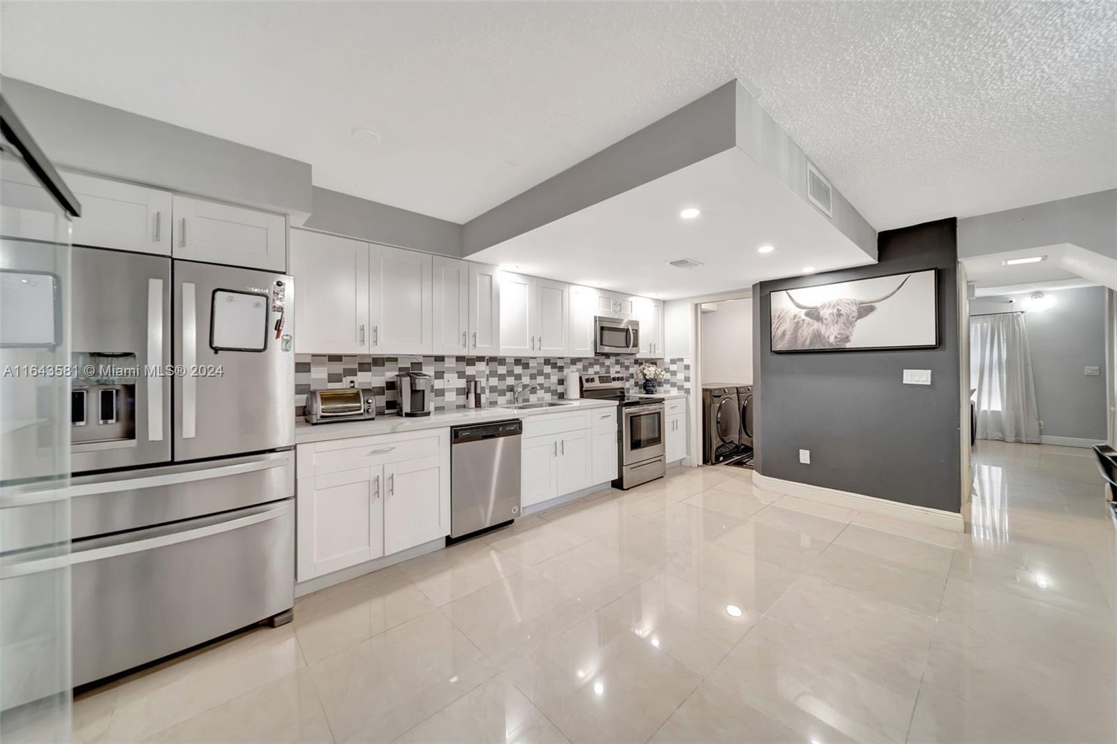 3 bed, 2.5 bath townhouse in the heart of Davie where pets are welcome! Enjoy a bright kitchen with like-new white shaker cabinets, stainless steel appliances, & French door/2-drawer refrigerator. The huge eat-in kitchen & dining area are perfect for gatherings and meal prep. Separate laundry room conveniently located off the kitchen. Living spaces downstairs, bedrooms upstairs. The primary suite boasts a private balcony overlooking a patio with a tropical view of the mango trees. Enjoy BBQ's & time outside w/the private fenced in patio area out back. New A/C in 2023. Conveniently located near highways, NSU, BC, hospitals, shopping, dining, and worship. Two assigned parking spaces. Community amenities include a pool, pickleball/tennis, basketball, playground, & clubhouse.