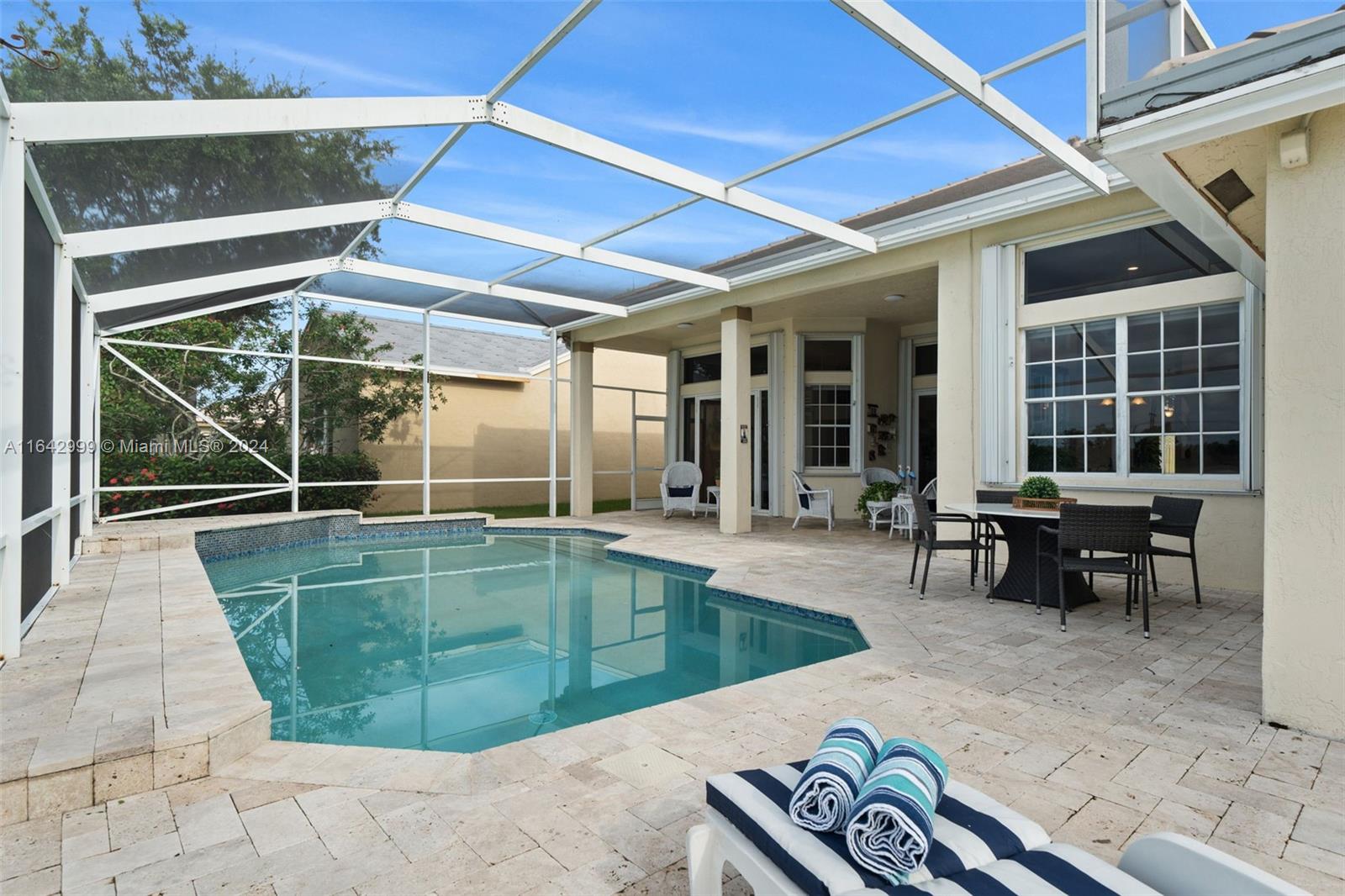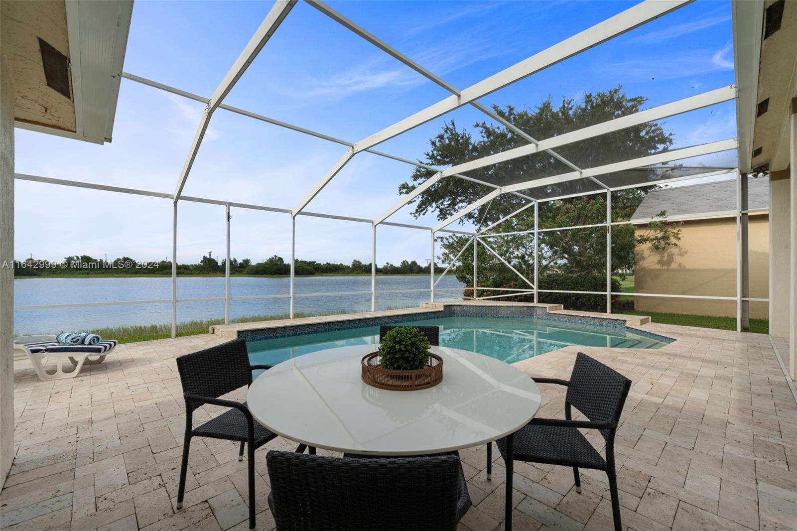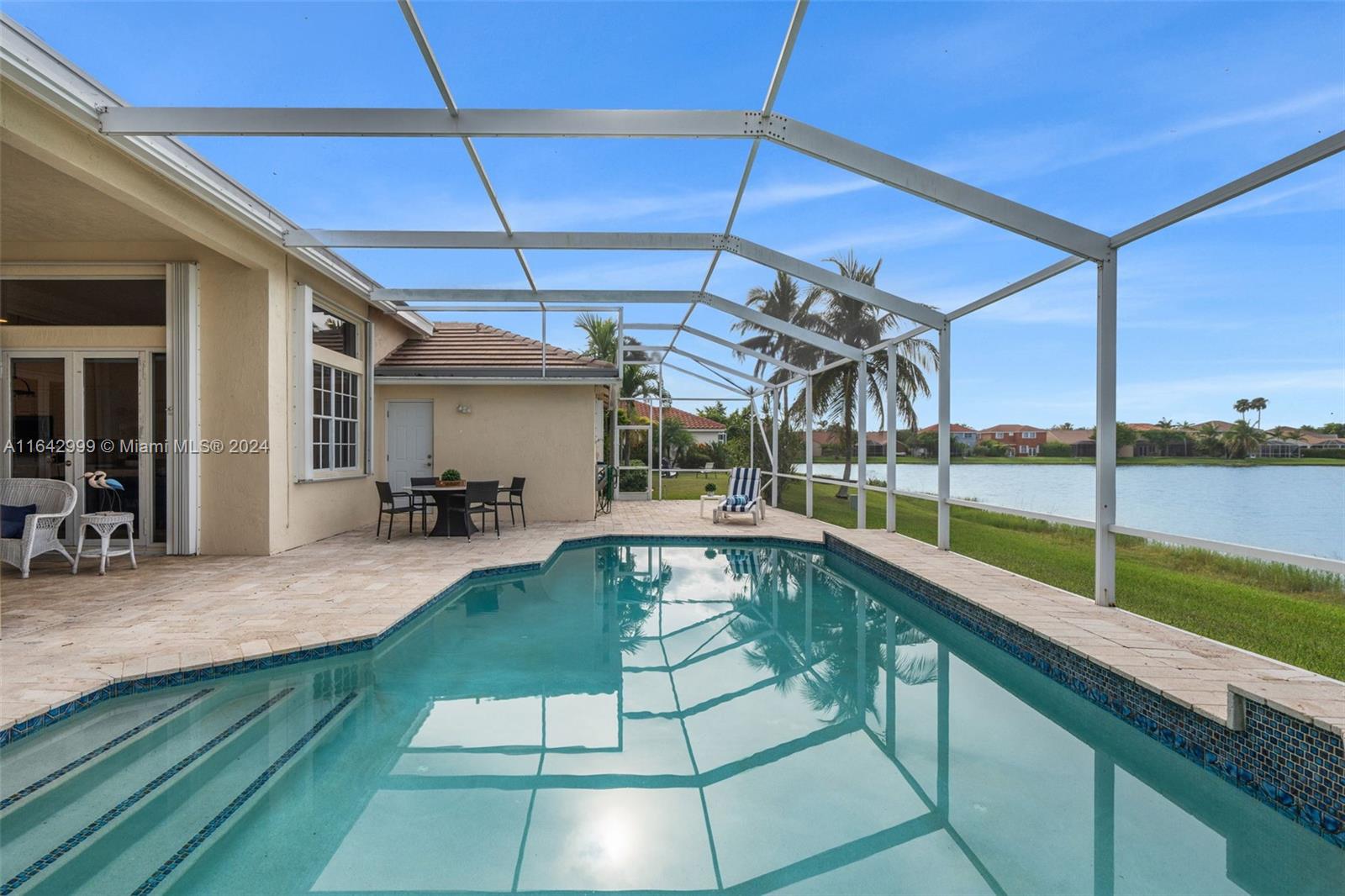 Experience luxury in this renovated single-story pool home in Weston’s prestigious North Lake community. With 5 beds, 3.5 baths, and open living areas with high ceilings, this home offers elegance and comfort. The master suite features a cozy sitting area, walk-in closet, and updated bath with a separate tub and shower. Two bedrooms share an updated Jack-and-Jill bath, while a guest suite has its own. The 5th bedroom is perfect as an office. Upgrades include a new roof, accordion shutters, a remodeled kitchen with granite countertops, and a travertine pool deck with an oversized screened-in pool. Premium lot with lake views, private yard, and nearby top-rated schools.