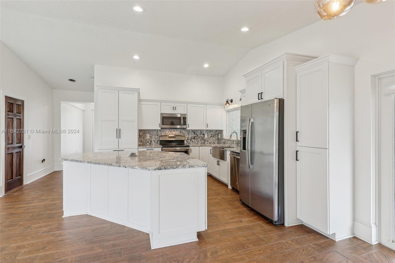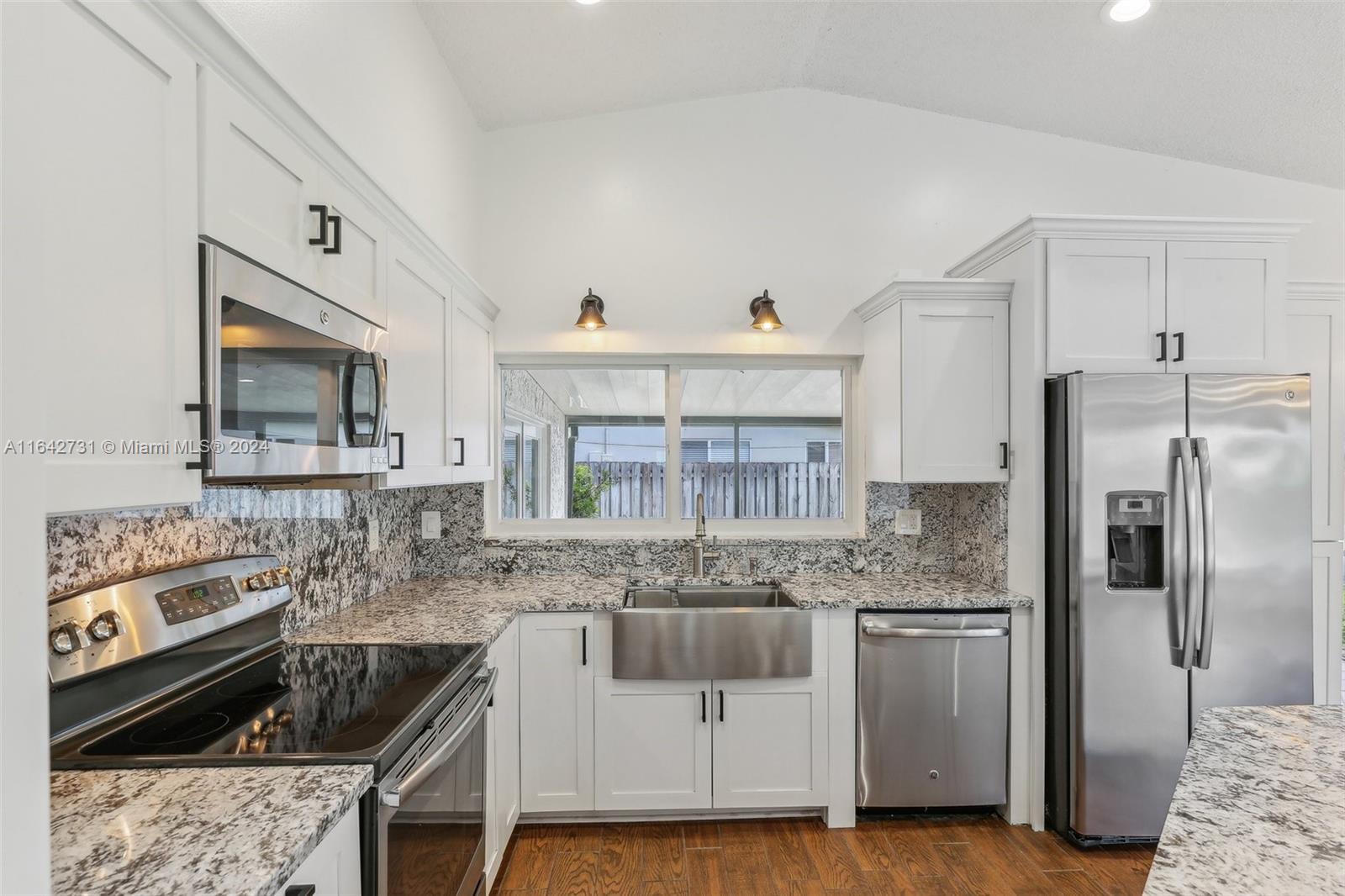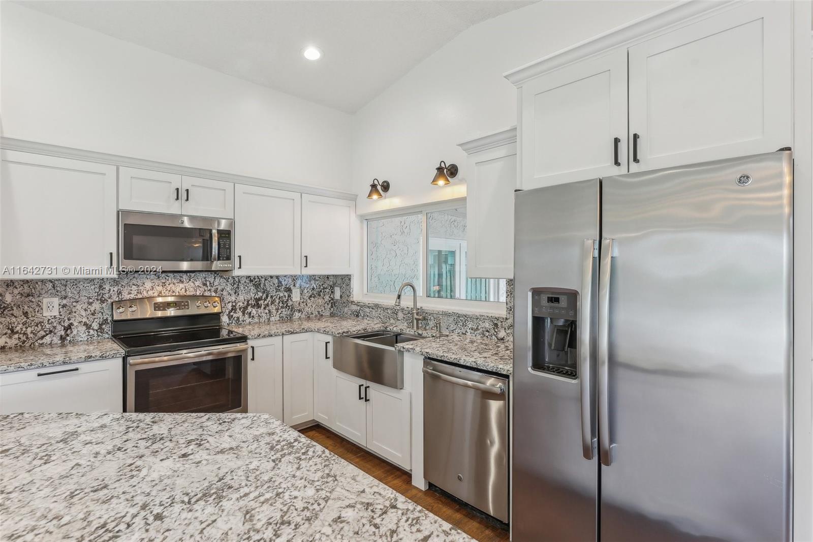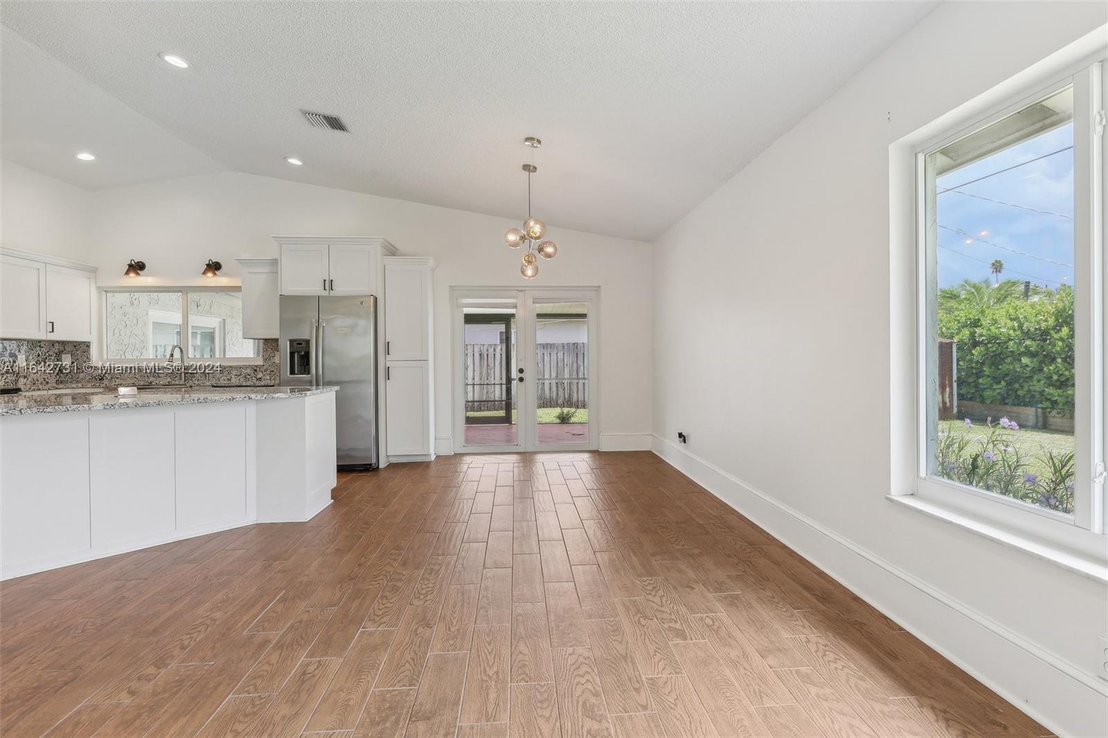 Welcome to this beautiful 4 bdrm, 2.5-bath home, perfectly designed for modern living. Recently upgraded with permitted additions, the home now offers 1,680 sq ft of stylish and functional space. The heart of the home is the stunning white kitchen, featuring a center island, sleek granite countertops, & stainless steel appliances w/ a farmhouse sink. High vaulted ceilings & decorative baseboards throughout adds a touch of elegance, while impact windows & doors provide both security and peace of mind. The primary bedroom includes a luxurious en-suite bathroom w/dual sinks, and a generous walk-in closet. Step outside to your expansive backyard w/ room to accommodate a pool, making it an ideal space for entertaining or unwinding. Don’t miss the opportunity to make this charming home your own!