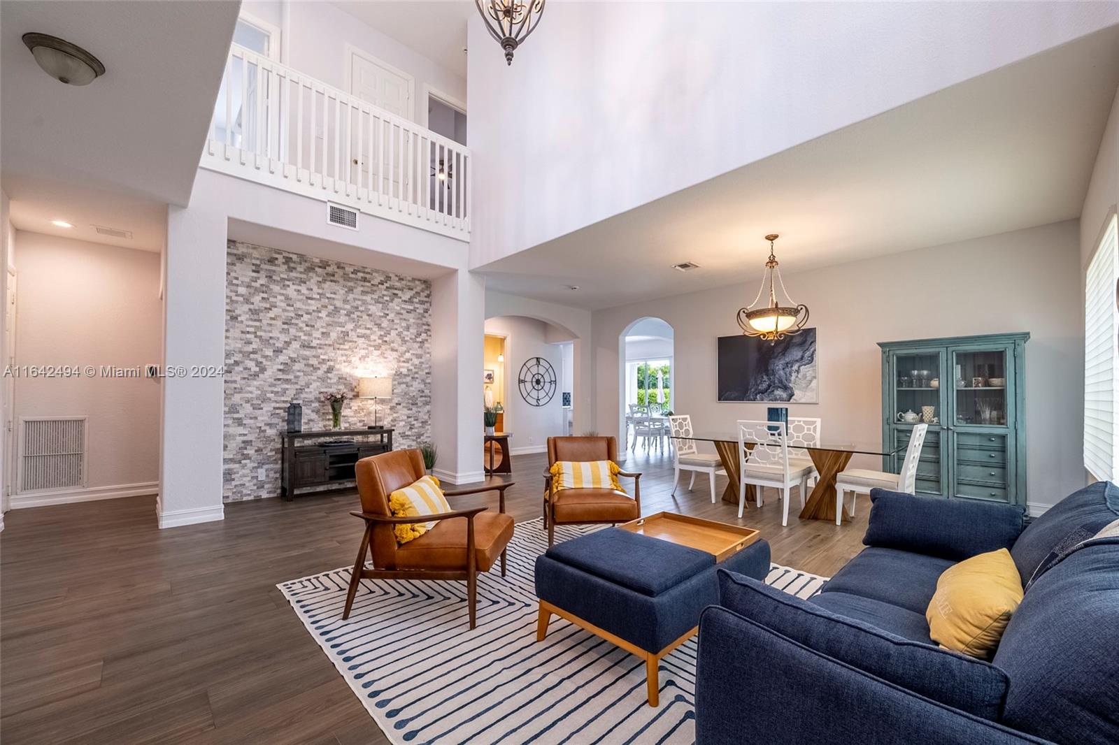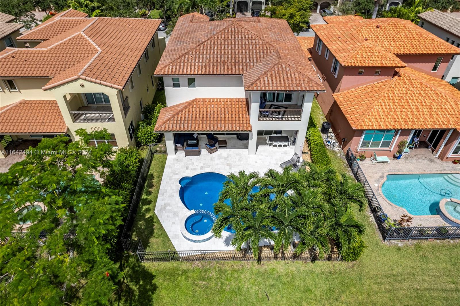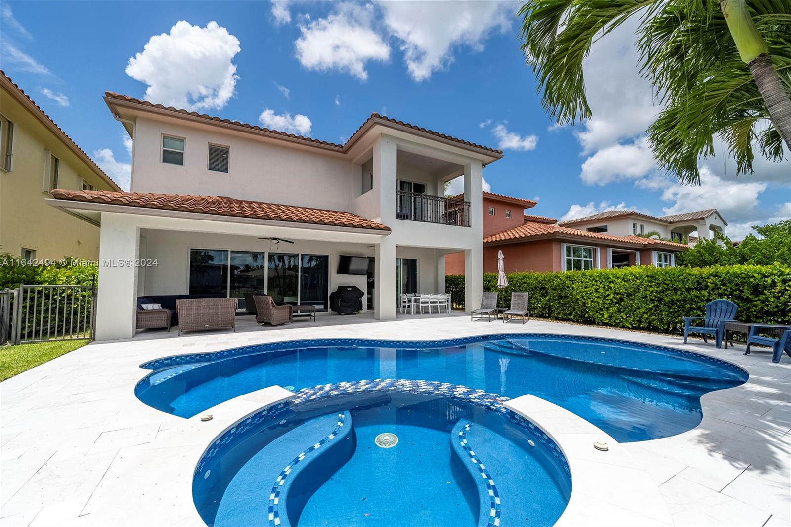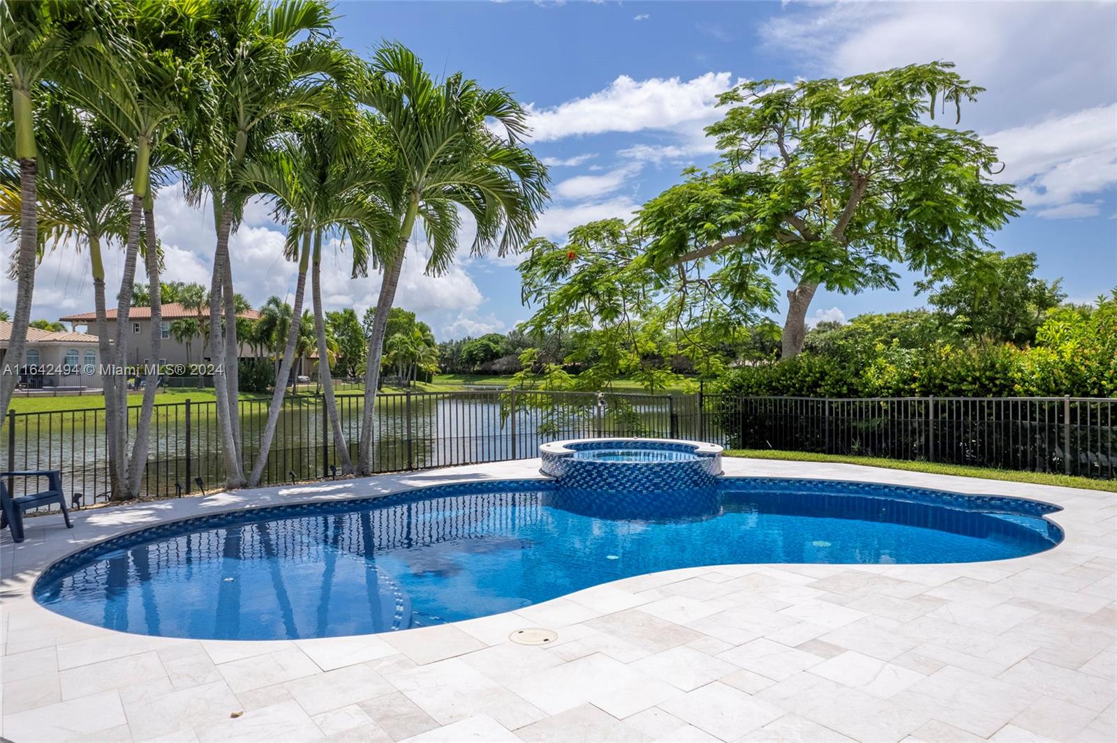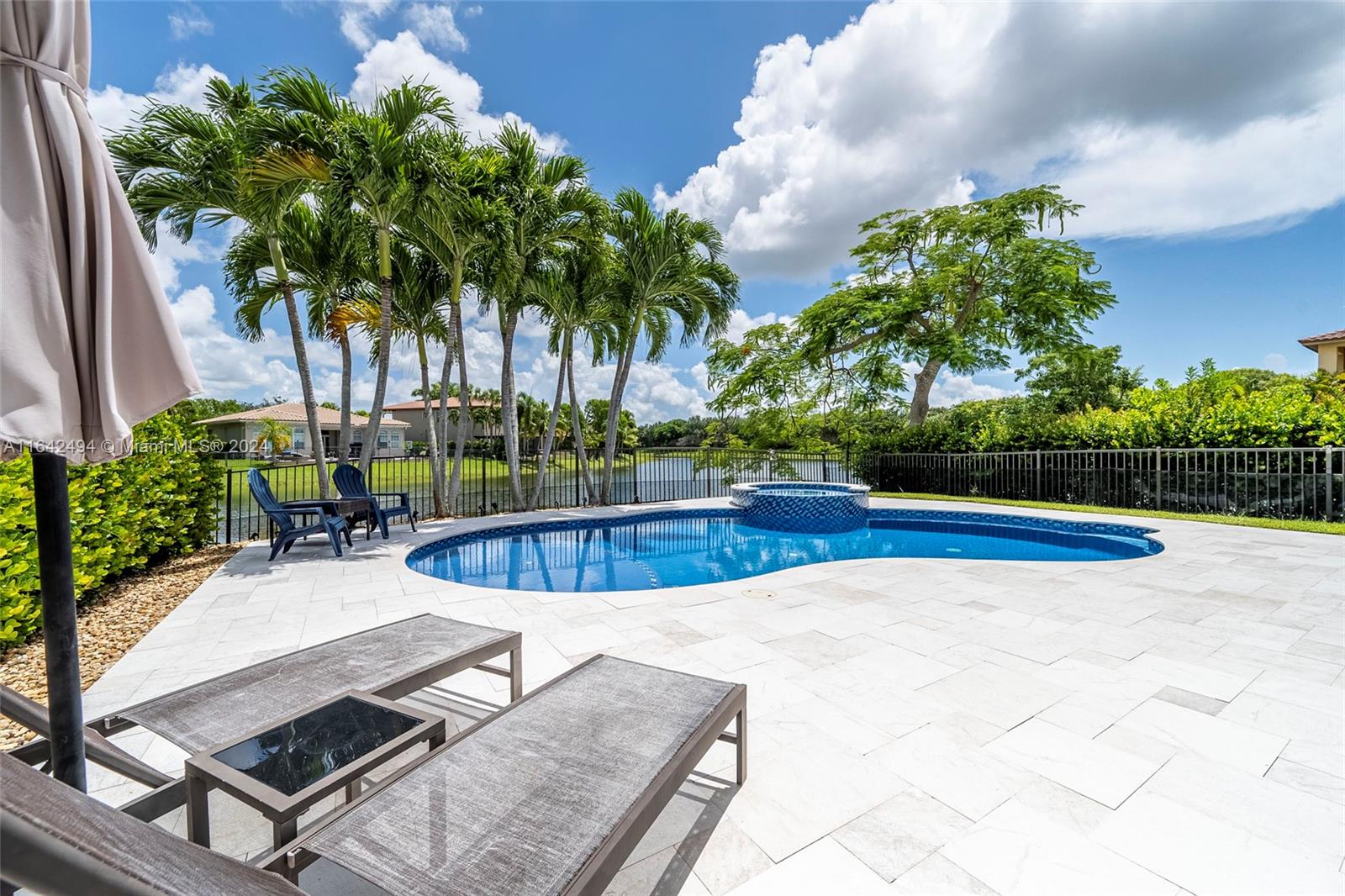 Immaculate and large 5-bedroom, 4-bathroom home in move-in condition. This house is freshly painted inside out, and boasts an extended paver driveway, a custom saltwater pool with a new heater and a new variable speed pump remotely controlled by mobile app, new floors with large tiles, and a new kitchen with quarts countertops, new appliances and water heater. The new marble pool deck overlooks a beautiful lake and is completely fenced in for safety. The primary bedroom features a large balcony with a lake view. This community offers many amenities including 2 clubhouses with heated pools, 2 gyms, tennis, pickleball, basketball, a waterpark, party rooms & walking trails. Close to A+ rated schools, parks shopping, and Sawgrass Expw. Please check the 360 virtual tour for details. Must see!