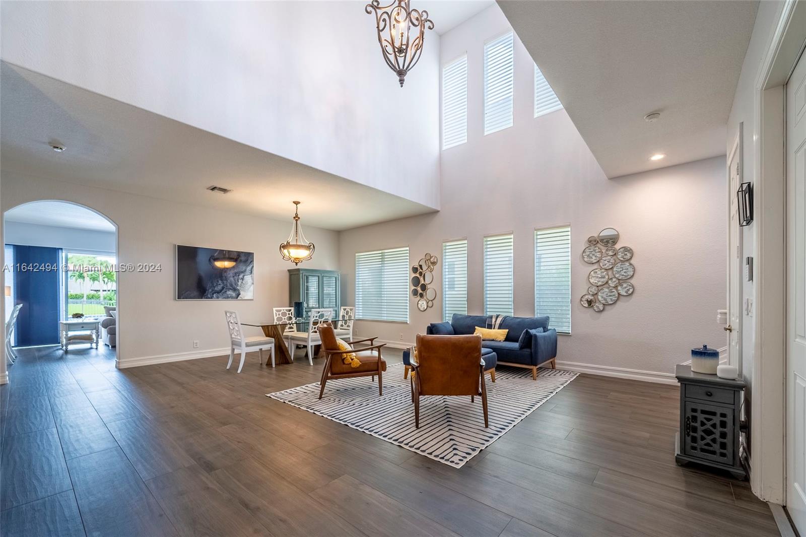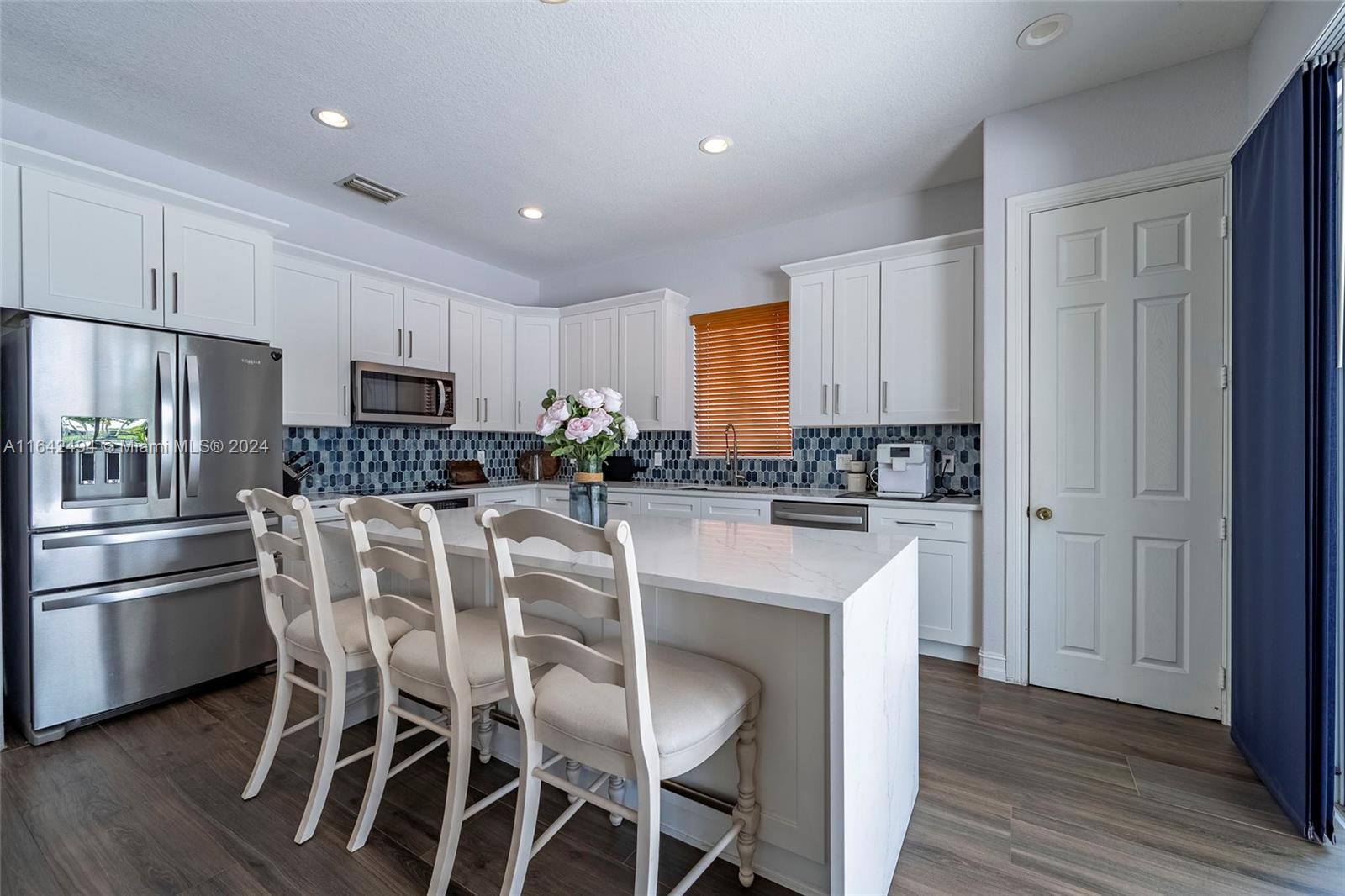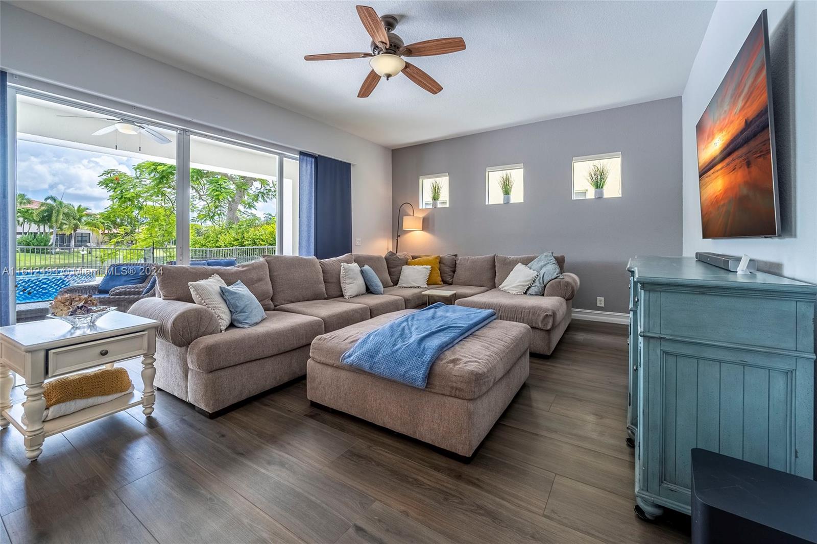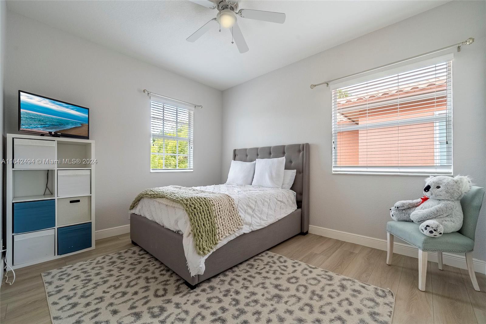 Immaculate and large 5-bedroom, 4-bathroom home in move-in condition. This house is freshly painted inside out, and boasts an extended paver driveway, a custom saltwater pool with a new heater and a new variable speed pump remotely controlled by mobile app, new floors with large tiles, and a new kitchen with quarts countertops, new appliances and water heater. The new marble pool deck overlooks a beautiful lake and is completely fenced in for safety. The primary bedroom features a large balcony with a lake view. This community offers many amenities including 2 clubhouses with heated pools, 2 gyms, tennis, pickleball, basketball, a waterpark, party rooms & walking trails. Close to A+ rated schools, parks shopping, and Sawgrass Expw. Please check the 360 virtual tour for details. Must see!