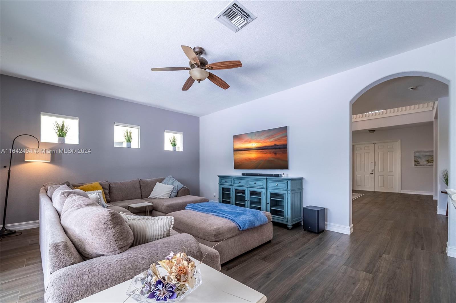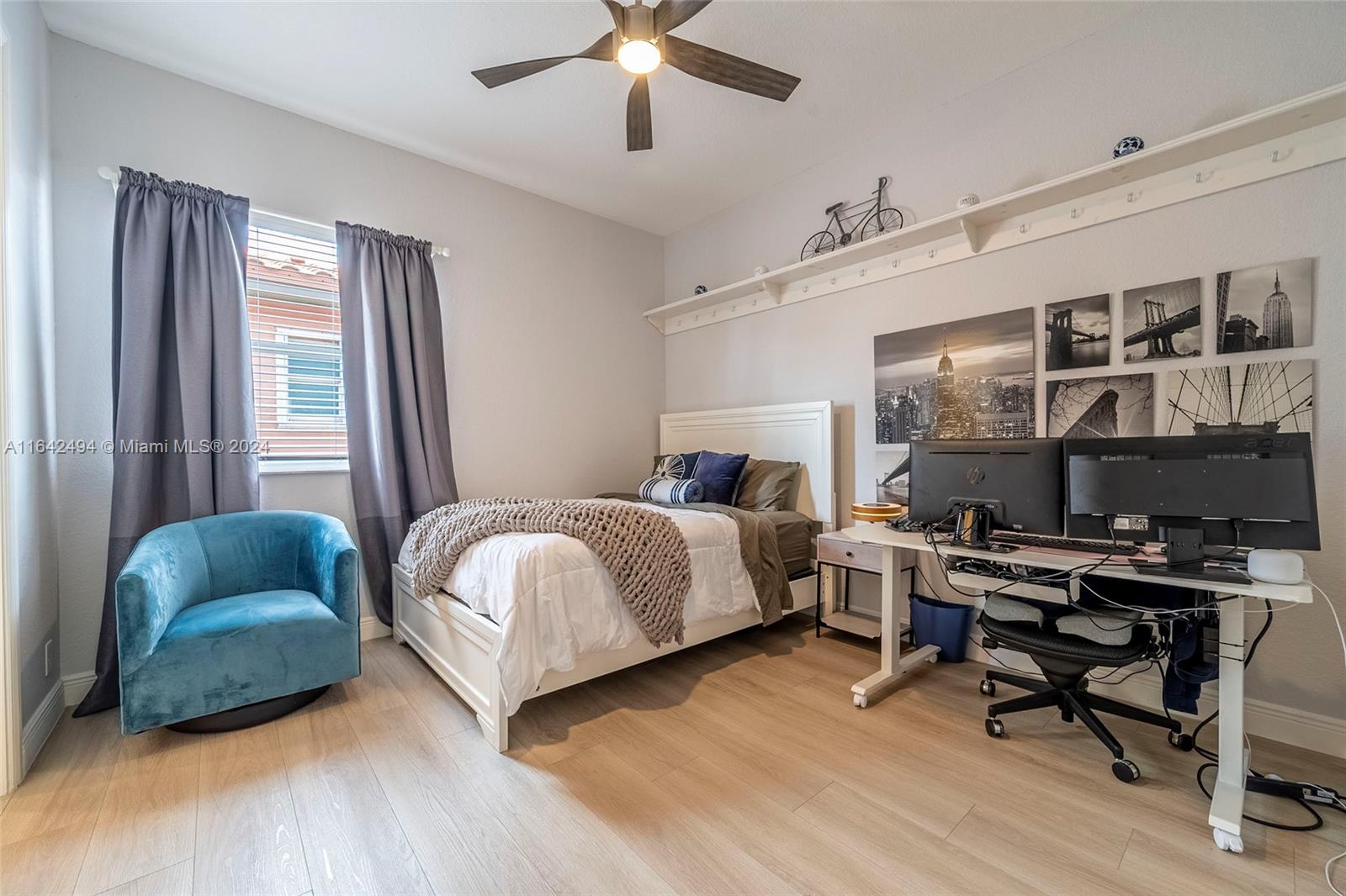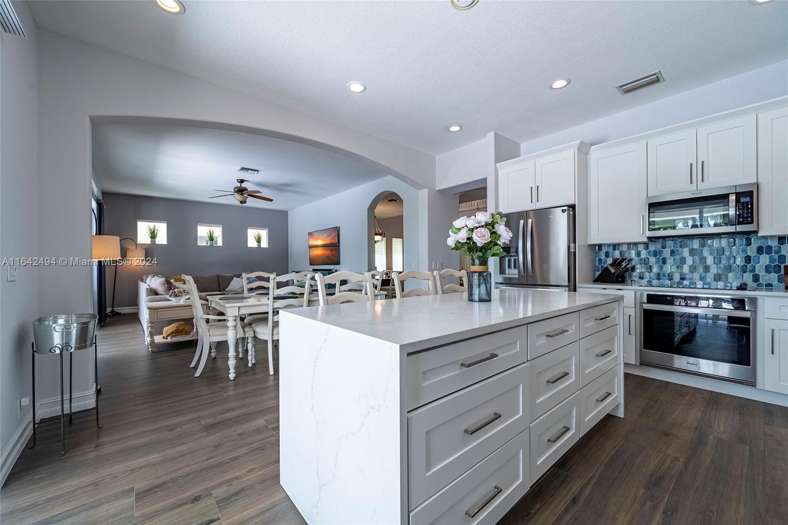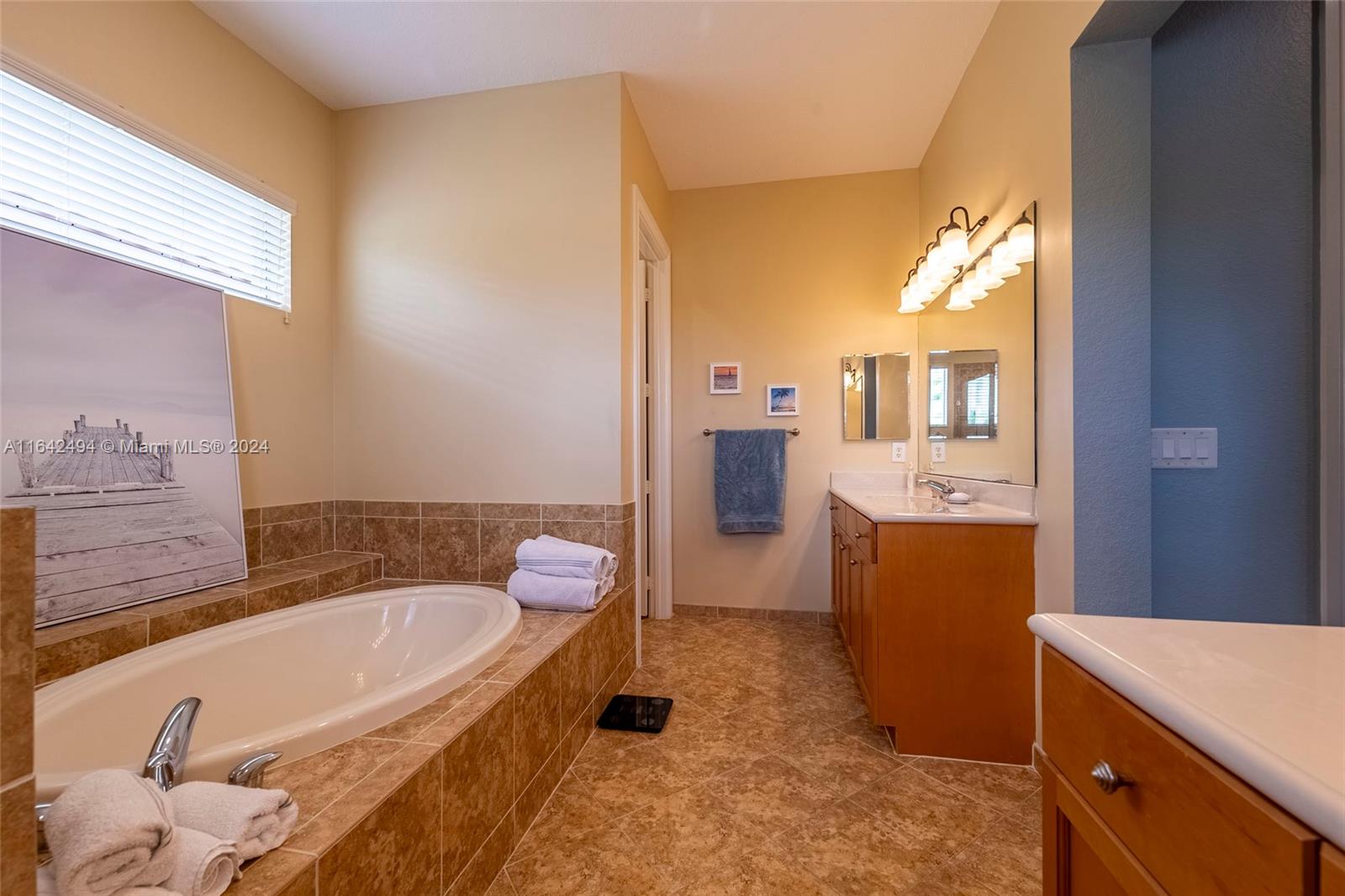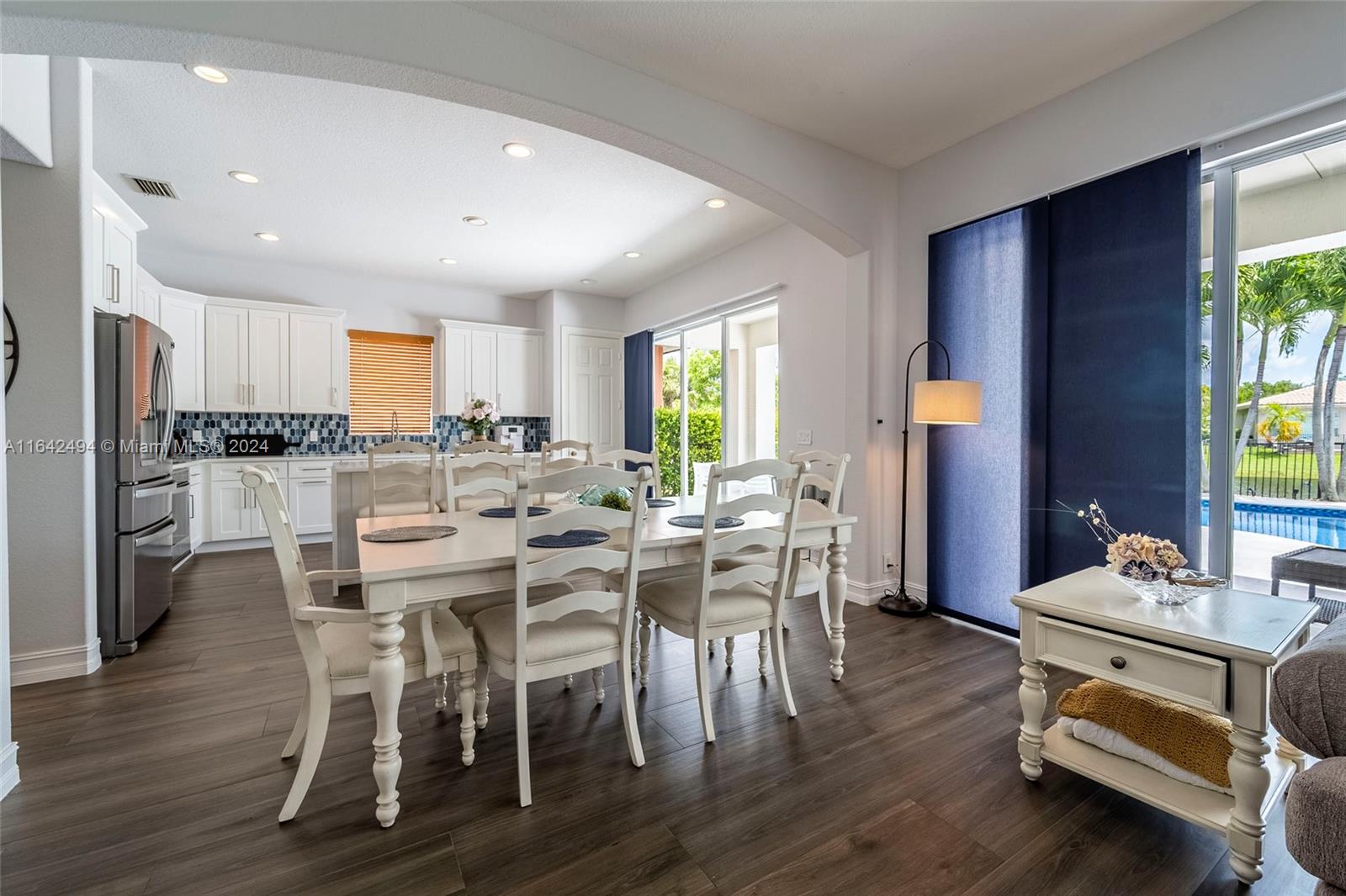 Immaculate and large 5-bedroom, 4-bathroom home in move-in condition. This house is freshly painted inside out, and boasts an extended paver driveway, a custom saltwater pool with a new heater and a new variable speed pump remotely controlled by mobile app, new floors with large tiles, and a new kitchen with quarts countertops, new appliances and water heater. The new marble pool deck overlooks a beautiful lake and is completely fenced in for safety. The primary bedroom features a large balcony with a lake view. This community offers many amenities including 2 clubhouses with heated pools, 2 gyms, tennis, pickleball, basketball, a waterpark, party rooms & walking trails. Close to A+ rated schools, parks shopping, and Sawgrass Expw. Please check the 360 virtual tour for details. Must see!