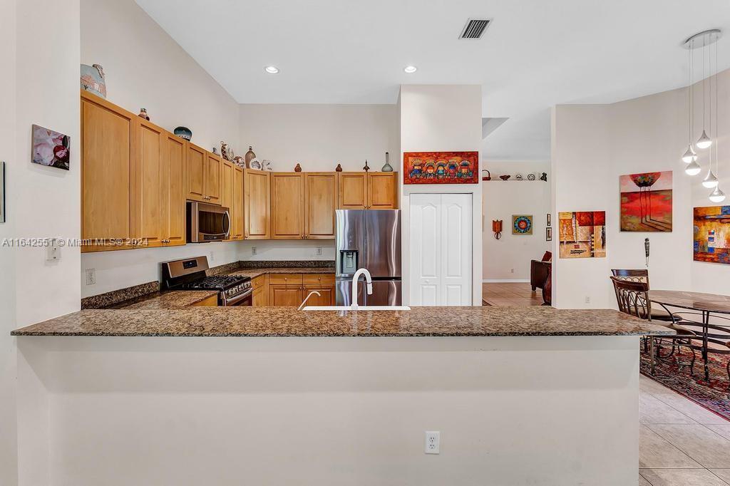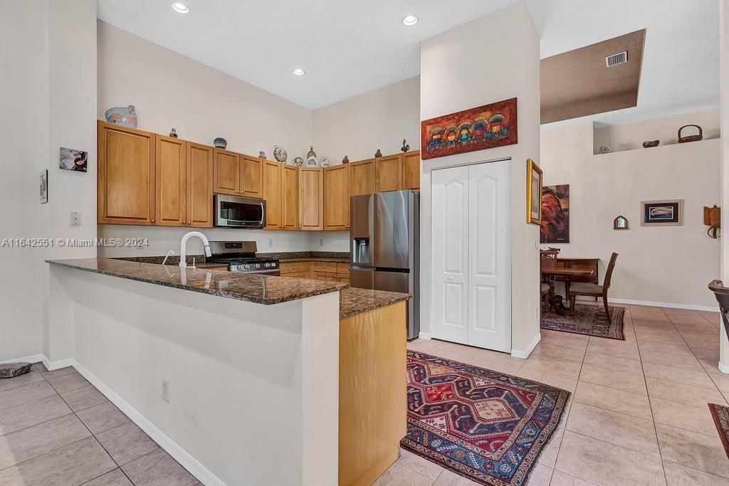 Inside very desirable Laguna Isles community, this stunning LA JOLLA model boasts 4 bedrooms, 2.5 bathrooms, a covered lanai, and a 2 car garage. It features a foyer with high volume ceilings, large living areas, formal dining, an eat-in kitchen, stainless steel appliances with a gas range, 42 inch wood cabinets, granite countertops, a generous family room, a split bedroom layout, a master bedroom suite with a spacious bath, 2 walk-in closets, gas dryer and a jacuzzi tub with jets. New roof and no back door neighbors. There is a 40 acre nursery behind the property, you will never have an obstructed view. The community is guarded, features 24-hour security, a clubhouse, tennis courts, fitness center, indoor racquet, and a children's play area.