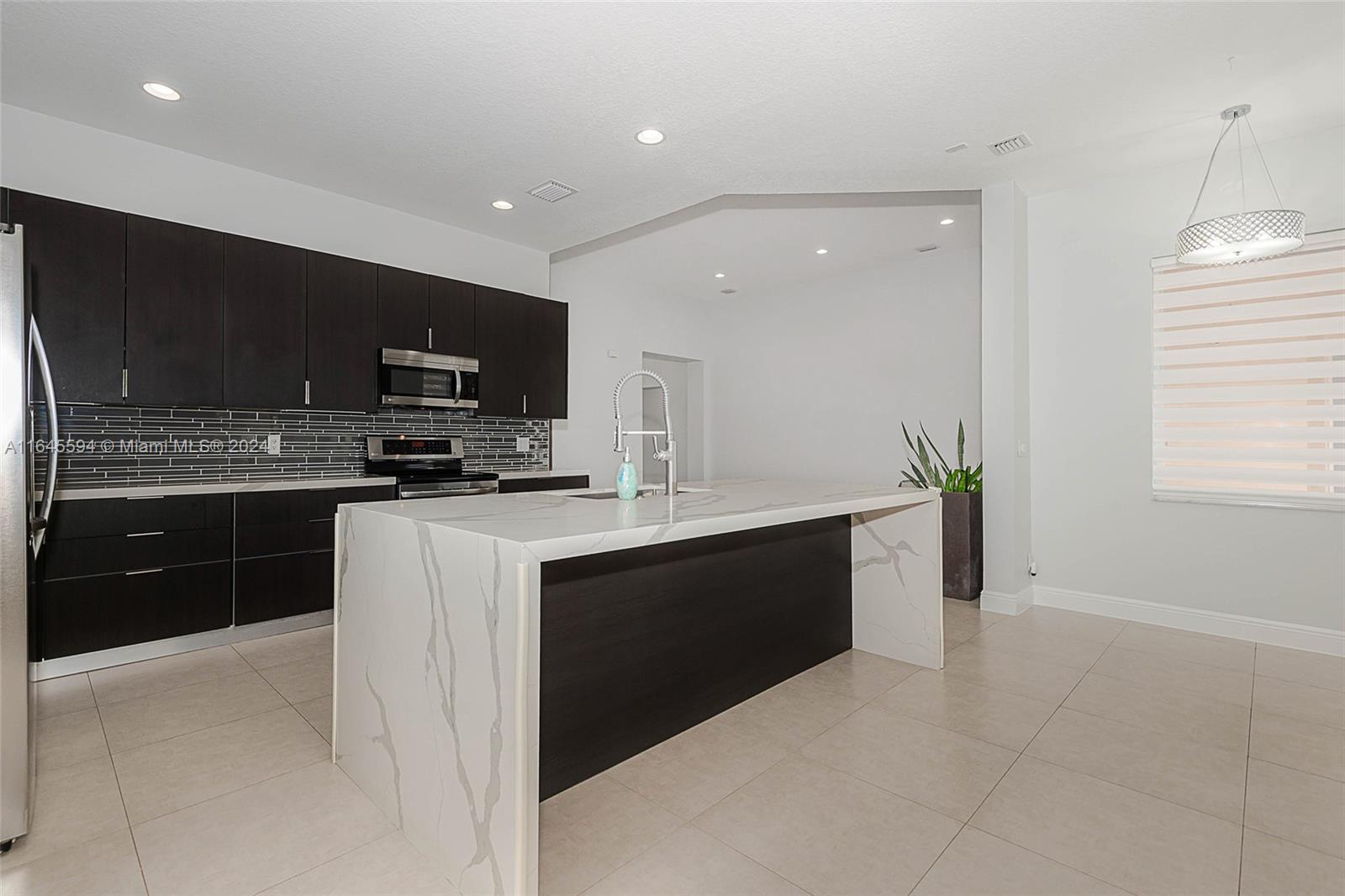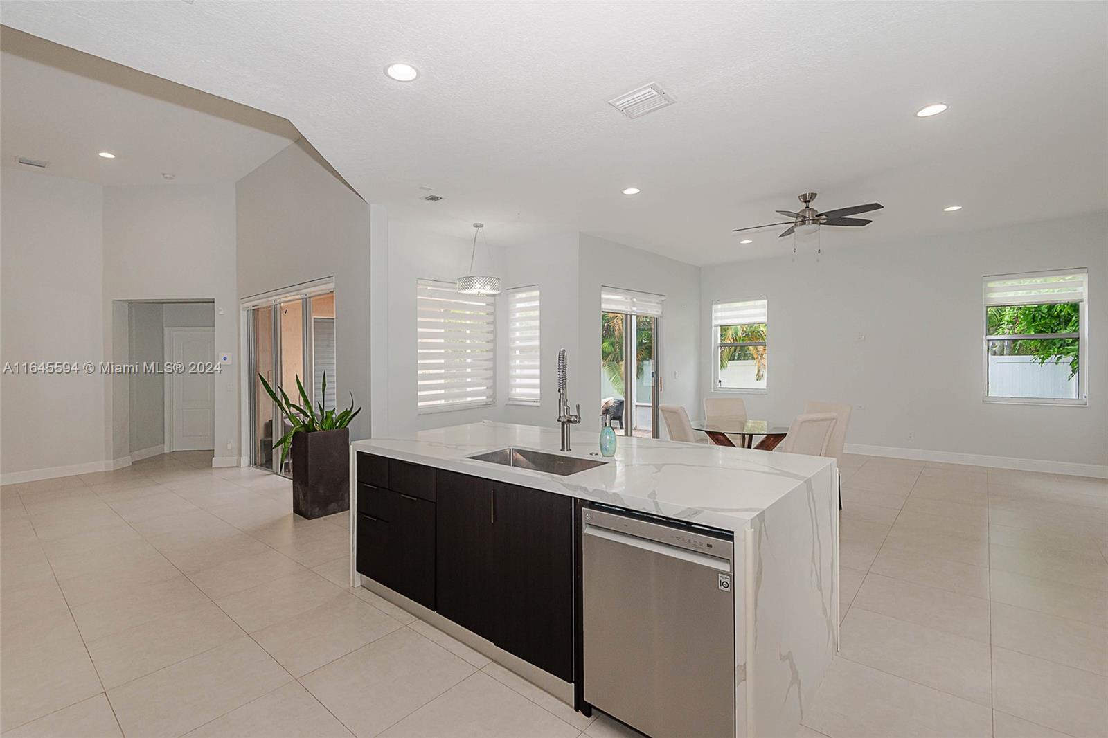 Modern 4-bedroom plus den smart home with gym in Miramar. This 2,634 sq. ft. one-story home features a spacious layout with an open living area, new appliances in the kitchen dishwasher and microwave(2023) and ample cabinet space, and a master suite with walk-in closet and luxurious bath. The versatile den offers flexible use, and the home includes advanced smart technology such as fiber internet, Lutron lighting, August smart lock, and Ring security system. Recent updates include a new roof (July 2024) and a Rheem AC unit (July 2021).With a three-car Garage equipped with Gym mirrors and interlocking flooring. Enjoy a screened outdoor space and landscaped front yard. Conveniently located near major roads, shopping, and dining. Low HOA.