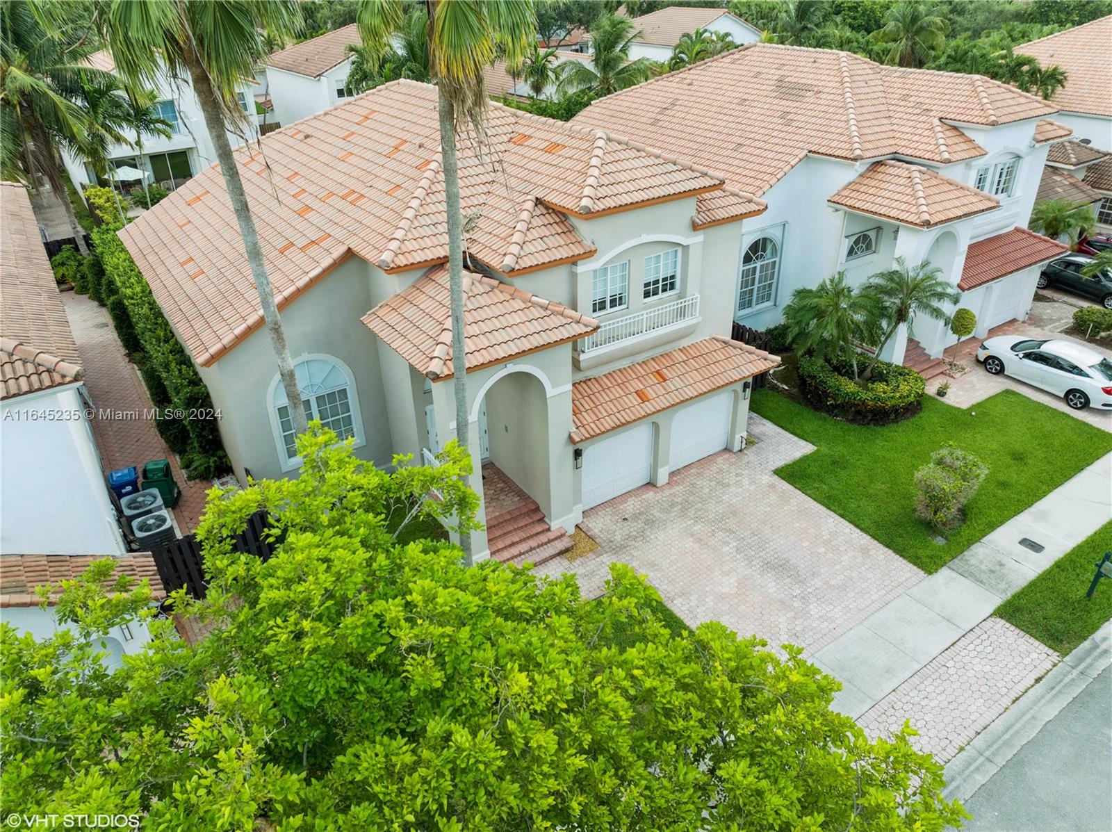 Stunning completely remodeled single-family home, 4beds & 3 Baths. The floor plan seamlessly connects the living, dinning, family room and kitchen areas, creating & inviting spaces perfect for everyday living & entertaiment. The kitchen boasts sleek WOLF brand appliances, elegant quartz countertop, wine cooler, an eat-in counter, making it a chef's dream. Upstairs, the primary bedroom is a true retreat with built-in closets, walk-in closet, and in-suite bathroom which exudes luxury with a modern vanity, double sink, marble flooring, rain shower head with glass door. Additional features includes impact windows and doors, 2 car garage, pool, spa and pergola. Located close to the club house with luxury amenities: 3 pools, gym, sauna, restaurant, soccer field, basketball & tennis court & more