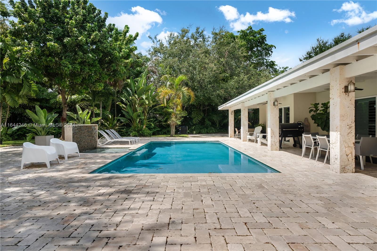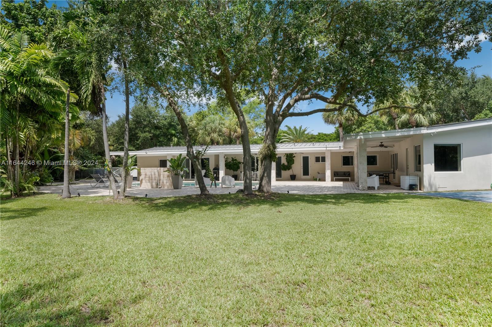 Turn-key Pinecrest home with 6 Bedrooms and 5 Baths on a sprawling acre lot. Spacious living areas complement the floor plan providing ample space for entertainment. This home was meticulously remodeled about 10 years ago including a metal roof, pvc plumbing, electrical, impact resistant windows/doors, kitchen, baths, bamboo floors, etc. Further upgrades include 2 5ton a/c units replaced in 2022, a whole home generator, and EV charging station. The gourmet kitchen with stainless steel appliances will delight any chef. Enjoy the lushly landscaped grounds while soaking in the sparkling pool or while playing pickle ball and basketball on the lit court. Add even more outdoor fun with the putting green, tree house, and trampoline. Oversized porte-cochere and 2 car garage for your convenience.