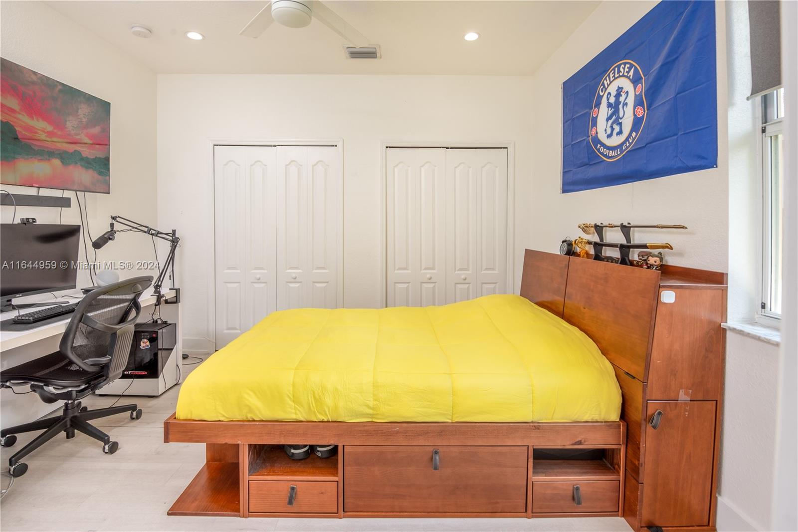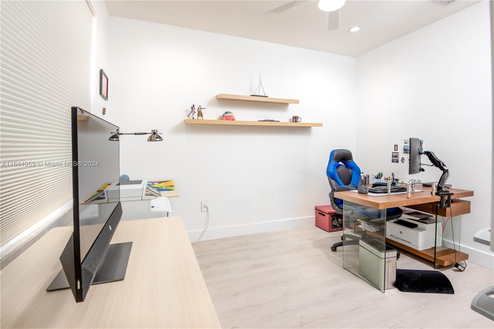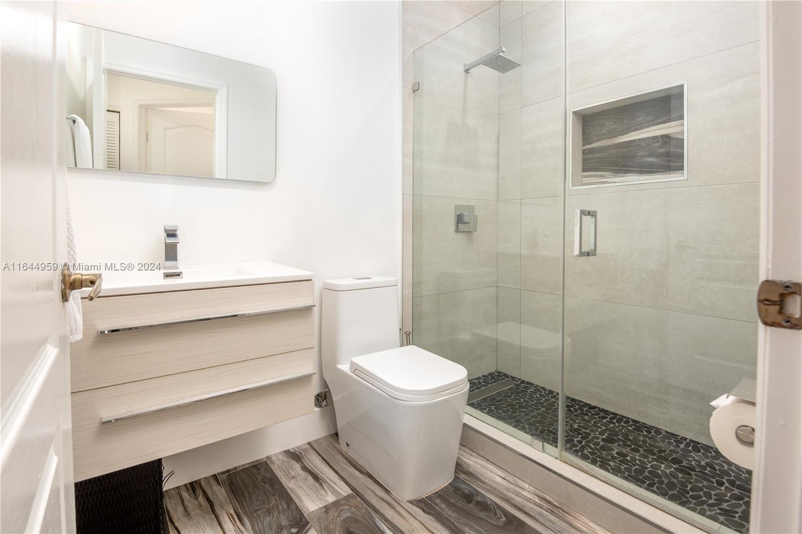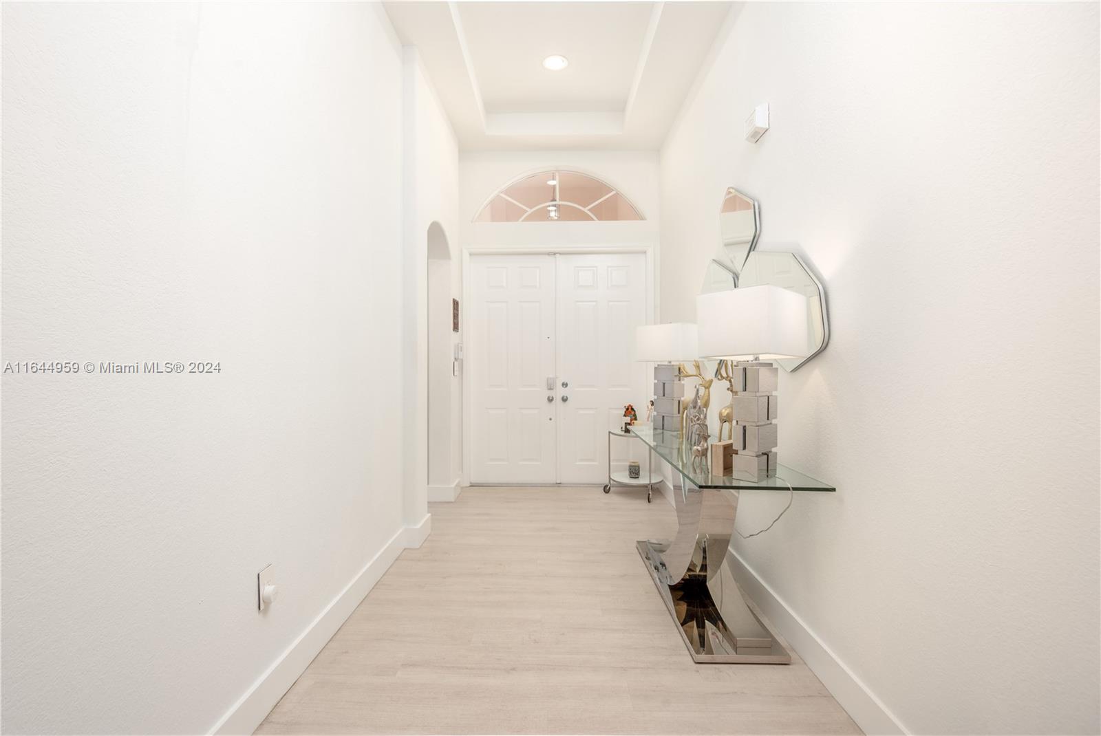 No other House like this one. . Very Desirable One Story Totally upgraded, Open concept, Single Family Home in Doral. Move-in ready. Huge lot with almost 7,000 Sq Ft perfect for a pool and entertainment. Very private home with Doral Legacy Park on the back. 4 Beds, 3 Full Baths, 2 Car Garage + 2 spaces on the driveway with an electric car station. Gourmet Kitchen with a big island, quartz countertop, black SS appliances with separate glass stove and oven, waterproof laminated floor in living area, bedrooms and kitchen, porcelain floor on the bathrooms. Custom-made closets in all the bedrooms, almost new Air Conditioner. High hat led lights in all the house. Front-loaded washer and dryer. Buyer has to pay $ 3,600 for Title Transfer to the Associations at Closing.