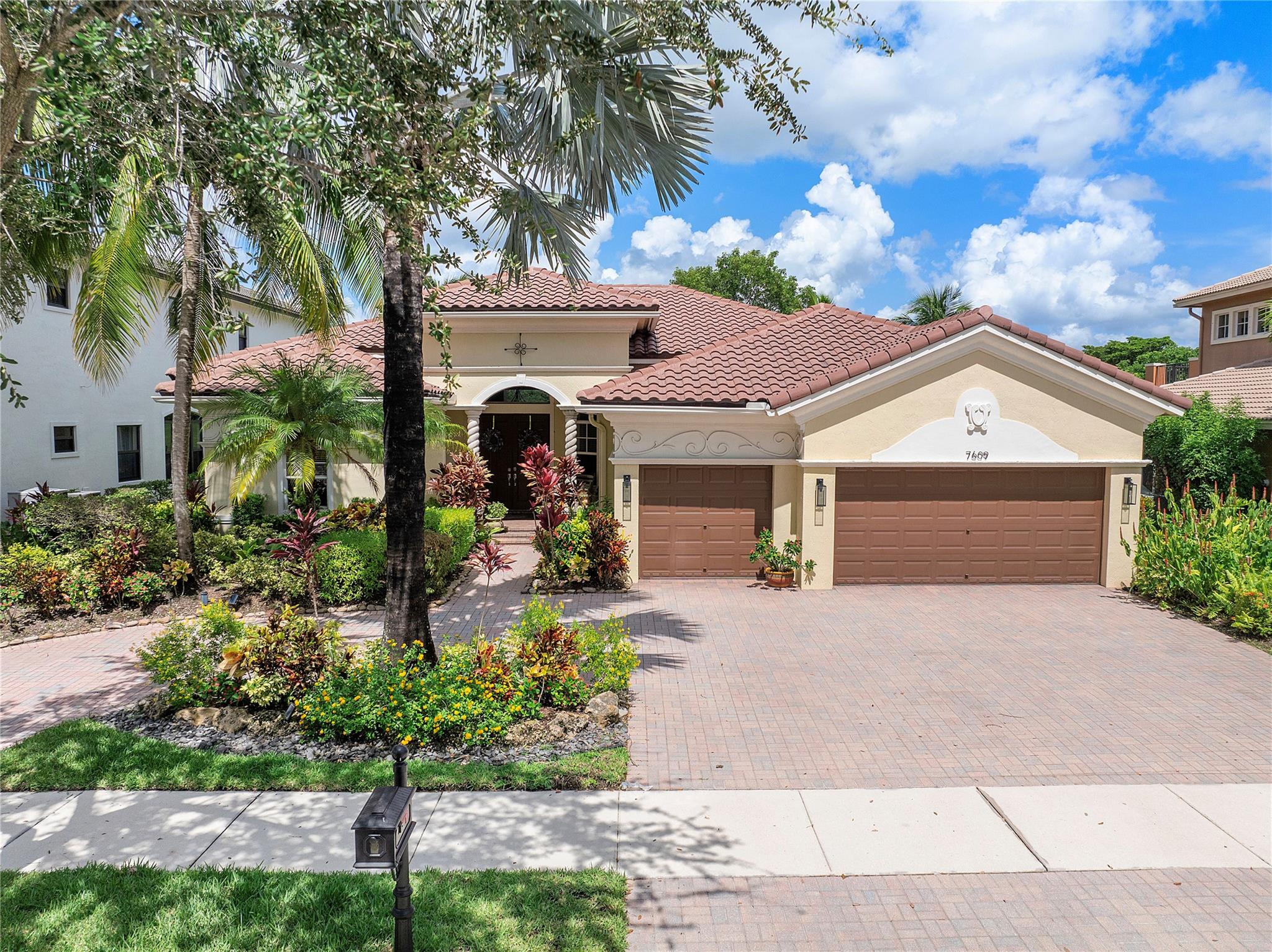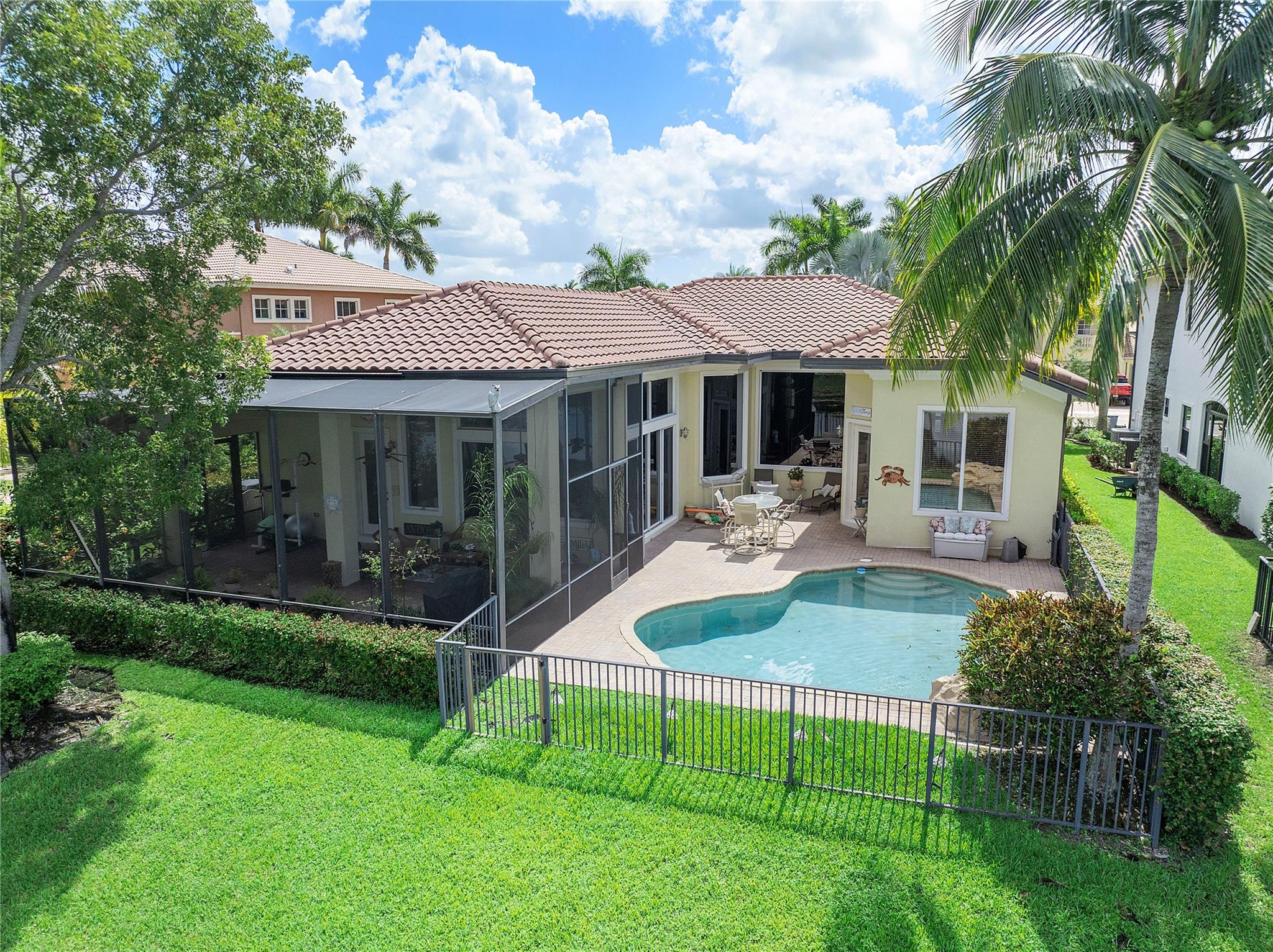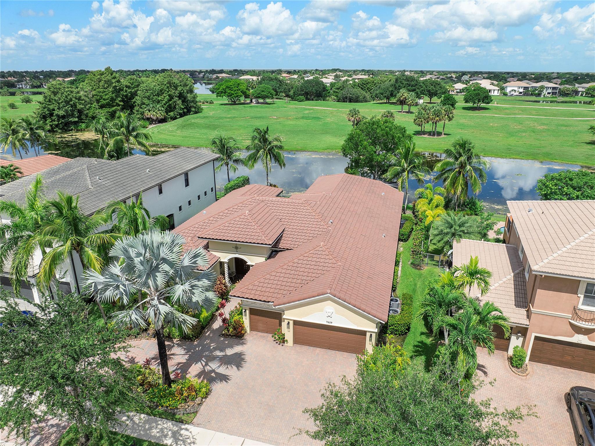 New Warranted Roof (2019) in sought after community of The Highlands in Heron Bay! Desirable triple split plan offering 5 bedrooms 3 baths plus a 3 car garage. Breathtaking Sunsets and lake views from walls of windows. Resort style open heated pool with side screened patio perfect for entertaining. All newer floors in bedrooms. Freshly painted in and out. NEW door hardware, faucets, light fixtures, rain glass finish in 2 baths. Dramatic entry, huge great room, dining room and gourmet kitchen with upgraded wood cabinets, new range top, disposal and granite counters all open to large breakfast area and family room. Crown molding, Garage shelving and plenty of parking on paver circular driveway. Lifestyle guard gated community with 2 clubhouses, tennis, fitness & more ."A" rated schools!