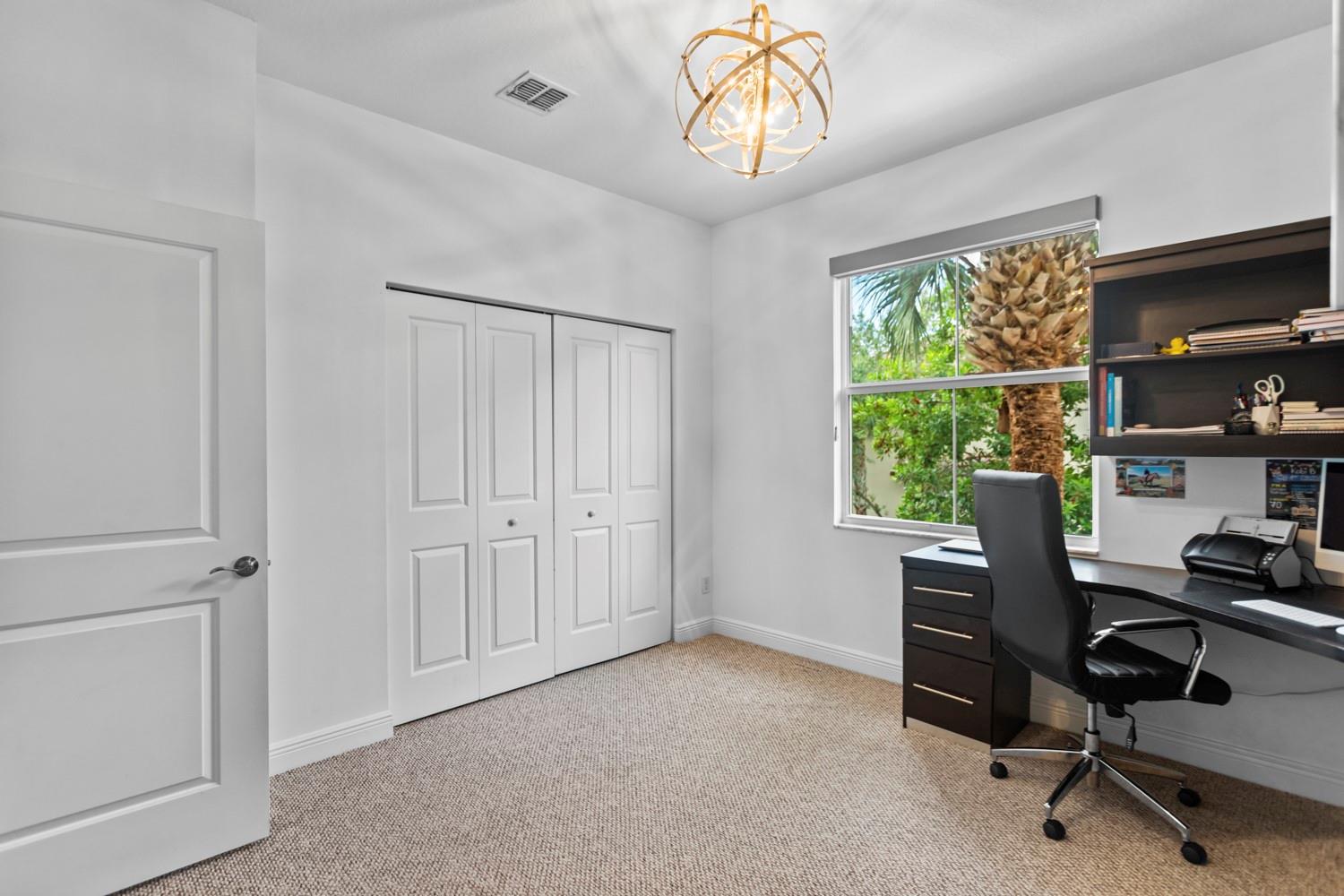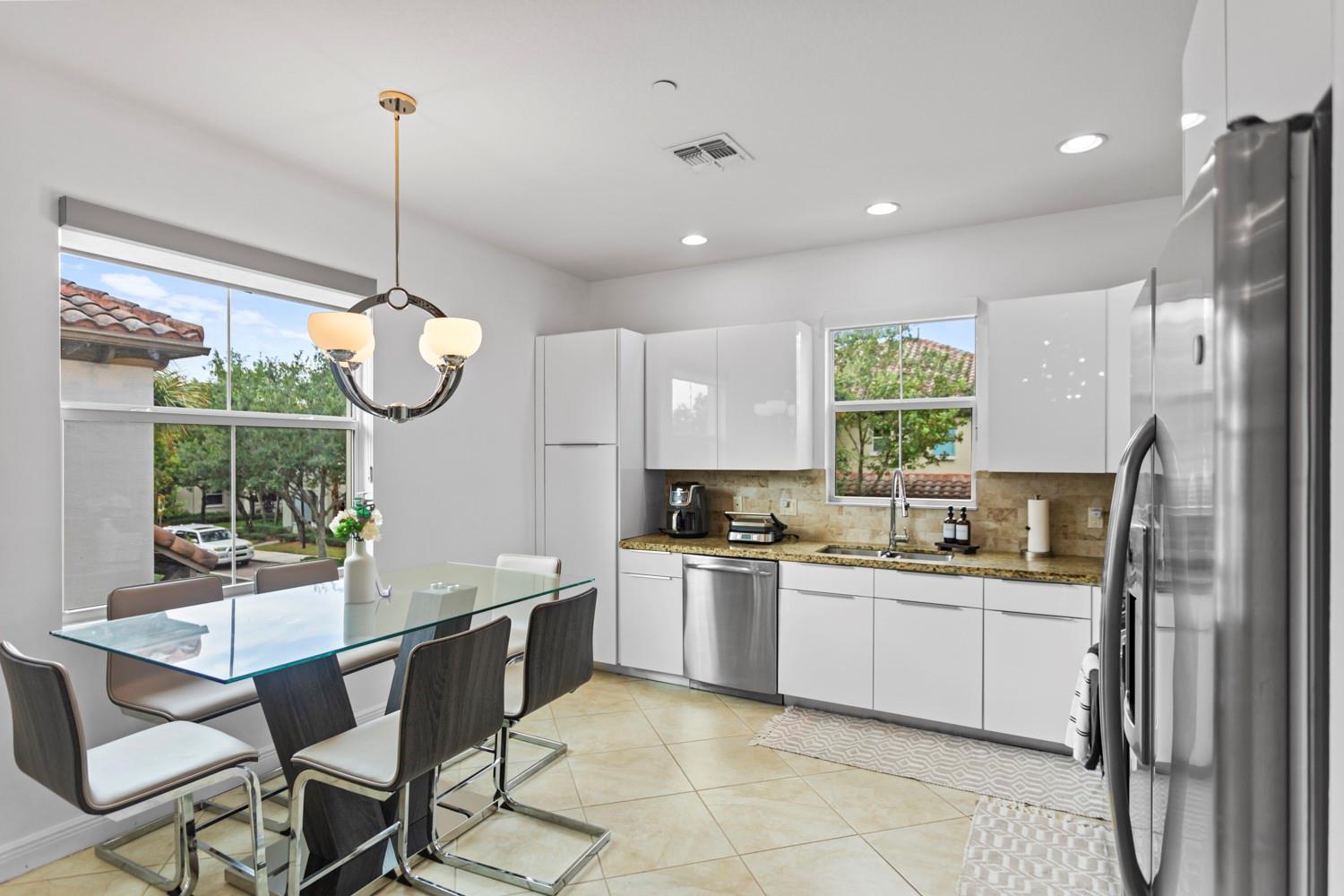 This stunning corner townhome in the upscale community of Cascada at Monterra combines luxury and convenience. 2 BEDROOMS + LOFT, 2 BATHROOMS, HURRICANE IMPACT WINDOWS, 2 CAR GARAGE, ROOF 2012, A/C 2021. The primary bedroom has wood floors, bathroom has two sinks and a frameless glass shower. The updated Euro-style kitchen enhances modern living, while the second bedroom includes a built-in Murphy bed. The versatile loft can serve as a third bedroom or office, and a spacious laundry room adds functionality. Enjoy partial water and garden views from the balcony. Take advantage of community amenities such as walking and biking trails, a dog park, tennis and basketball courts. A state-of-the-art clubhouse with a resort style pool, fitness center, billiard room, coffee bar, and splash zone.