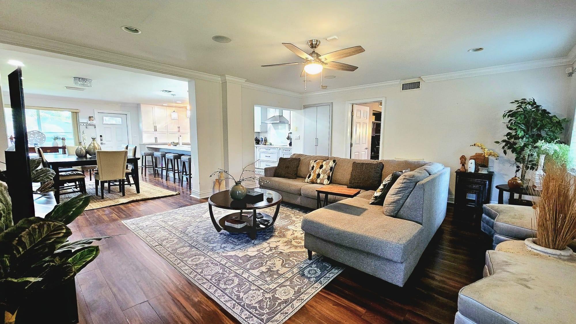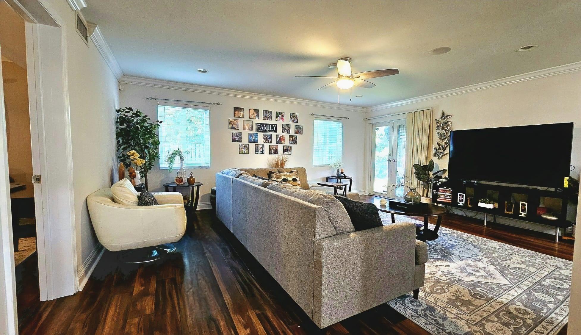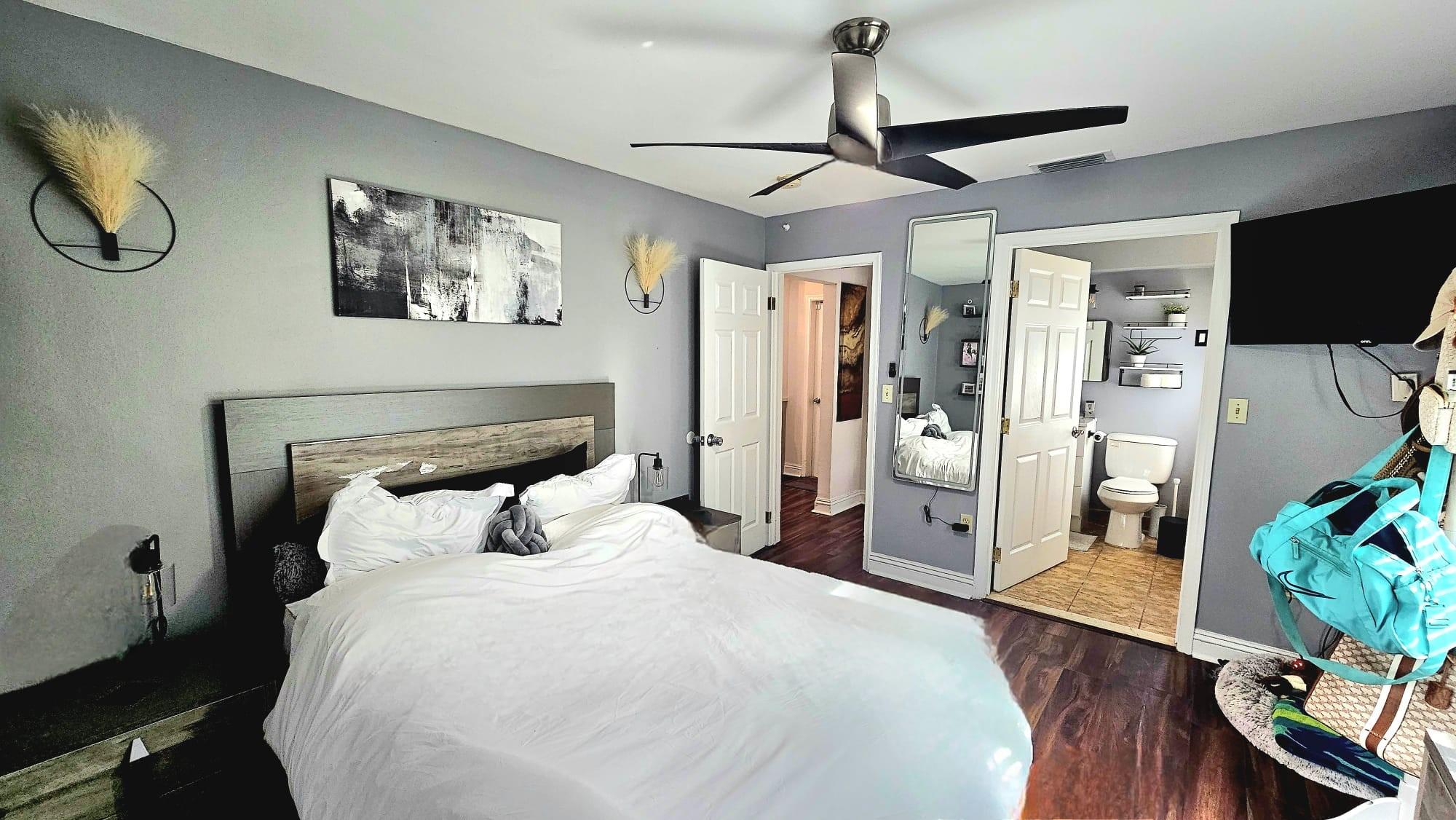 Beautifully upgraded 3-bed, 2-bath home in this serene Sunrise neighborhood. The split bedroom layout features a Jack and Jill bathroom connecting to one of the smaller bedrooms. Recent renovations include stylish bathrooms and a modern kitchen with stainless steel appliances and plenty of cabinets. The living area extends to a screened-in porch, perfect for relaxing or entertaining. It also includes an accessibility front door ramp and a step-in shower. The backyard offers a peaceful retreat with a small zen fountain. This home is a blend of modern amenities and tranquil living, ready for its new owners.