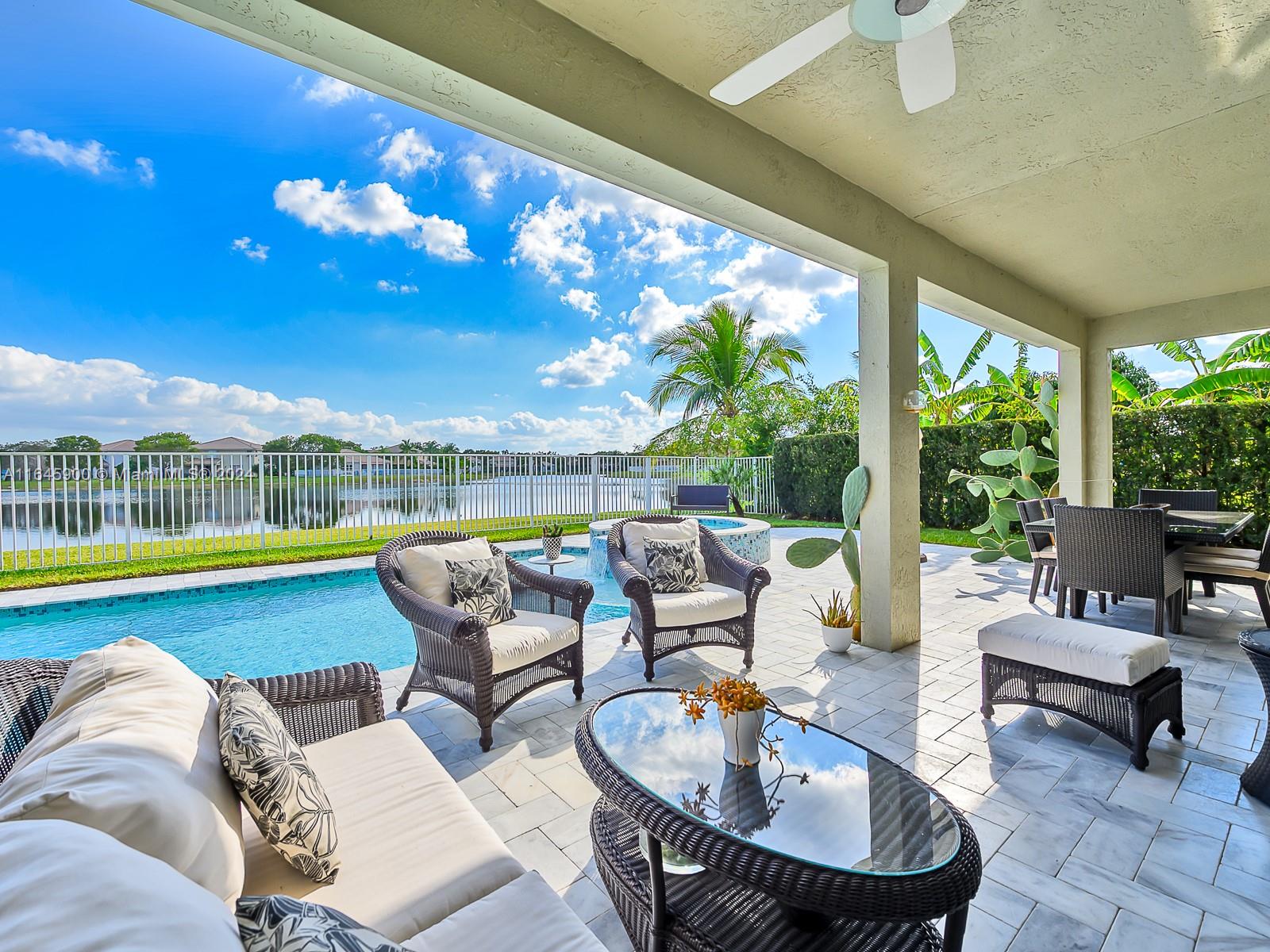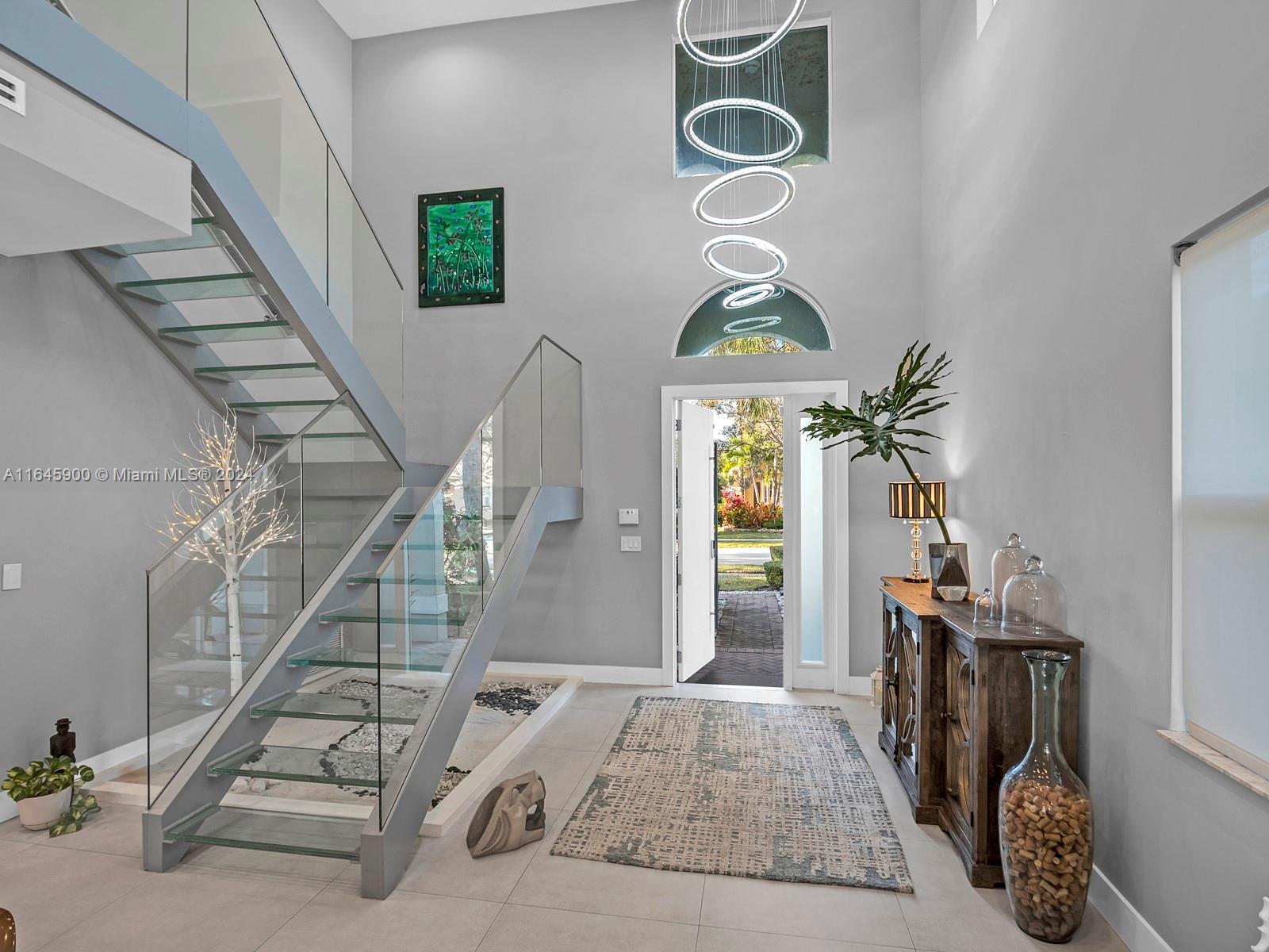 Stunning completely remodeled waterfront two-story home in the desirable Isles at Weston. Inside this home a stunning striking glass staircase welcomes you and beautiful Spanish porcelain floors, the gourmet kitchen features appliances: Sub-Zero, Miele, Wolf, U-Lin, 5Bd/4Ba completely remodeled w modern finishes. 5th bedroom has been converted to a master closet. The property features two newer A/C, vinyl flooring on the 2nd floor, high-impact windows & doors. Outside features an upgraded pool w jacuzzi, to enjoy the panoramic serene lake views. The community offers resort-style amenities including a gym, basketball court, beach volleyball, pool, & a clubhouse. Conveniently located minutes away from A+ rated schools, restaurants, shopping centers, highways, and 30-min away from the beach.