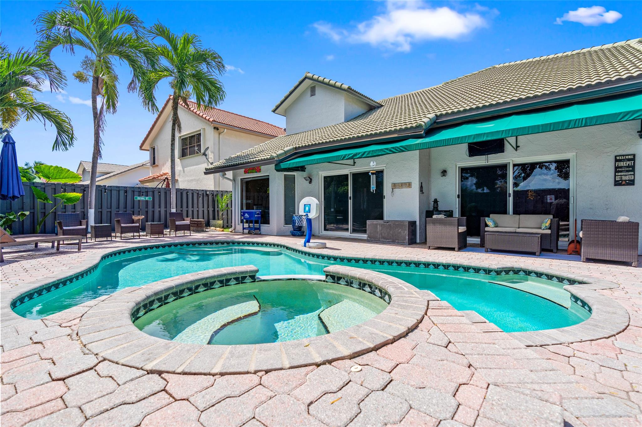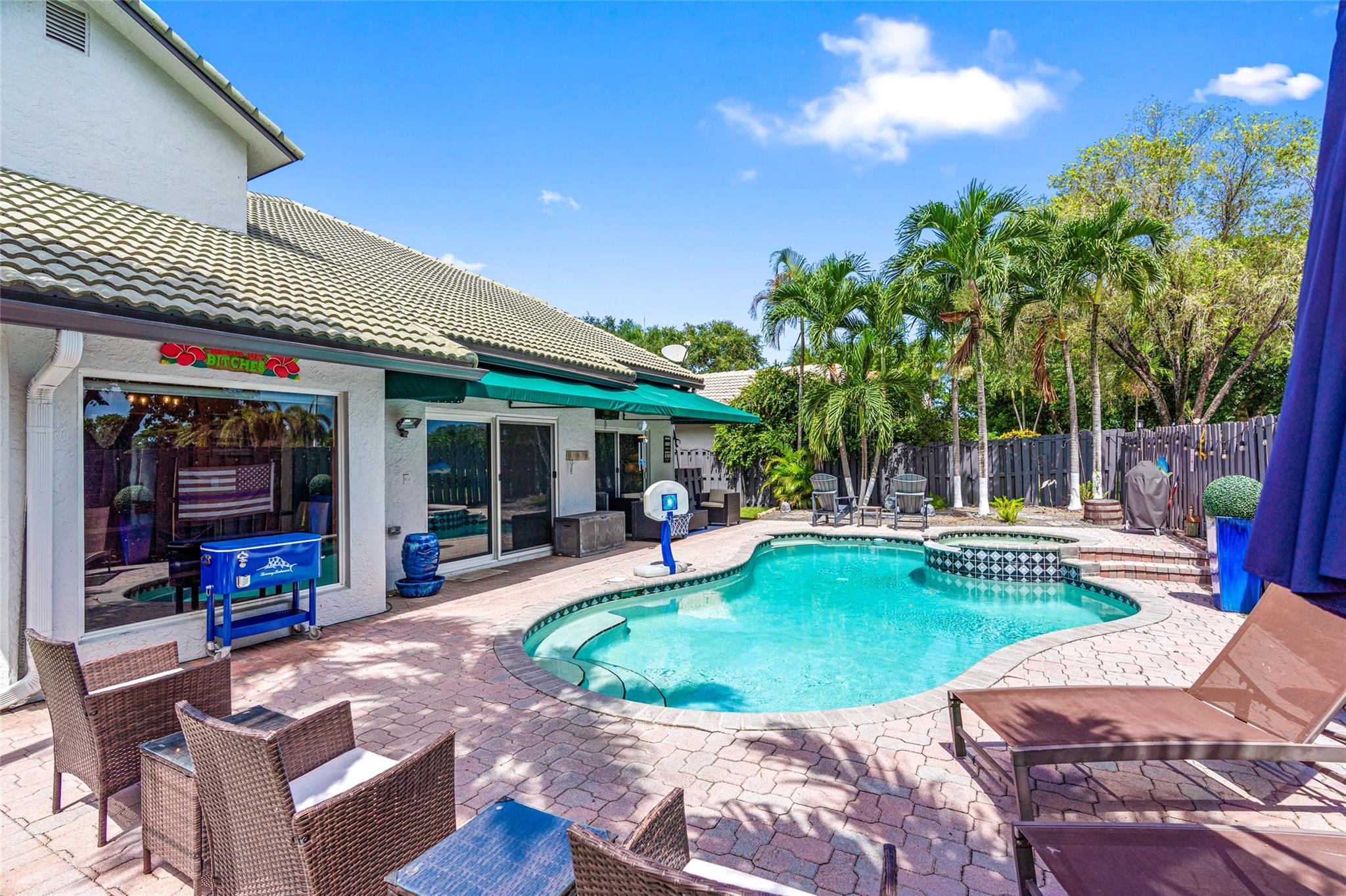 BEAUTIFUL 4 BEDROOM 3 1/2 BATH HOME WITH POOL IN DESIRABLE LE CRISTAL OF ROCK CREEK*IMPACT WINDOWS AND DOORS(2022)*NEW COPPER PIPING (2023)* SPACIOUS PRIMARY BEDROOM LOCATED ON THE 1ST FLOOR WITH GORGEOUS REMODELED BATH THAT OFFERS SOAKING TUB, SEPARATE SHOWER WITH GLASS BARN DOORS, DUAL VANITY AND GRANITE WATERFALL COUNTER TOPS- A TRUE SPA FEELING*LARGE KITCHEN WITH 42" CABINETS AND GRANITE COUNTER TOPS*BREAKFAST NOOK*2ND FLOOR OFFERS 2 FULL BATHS & 3 BEDROOMS WITH WOOD LIKE VINYL FLOORING* 1 BEDROOM HAS IT OWN PRIVATE BATH*ALL BATHROOMS HAVE BEEN BEAUTIFULLY UPGRADED*UPDATED WINDOW TREATMENTS & LIGHT FIXTURES *ENJOY SUN SOAKED DAYS BY THE SPARKING POOL/SPA*OVERSIZED BRICK PAVER PATIO WITH AN AWNING THAT IS GREAT FOR ENTERTAINING*NICELY LANDSCAPED*A RATED SCHOOLS*LOW HOA*!