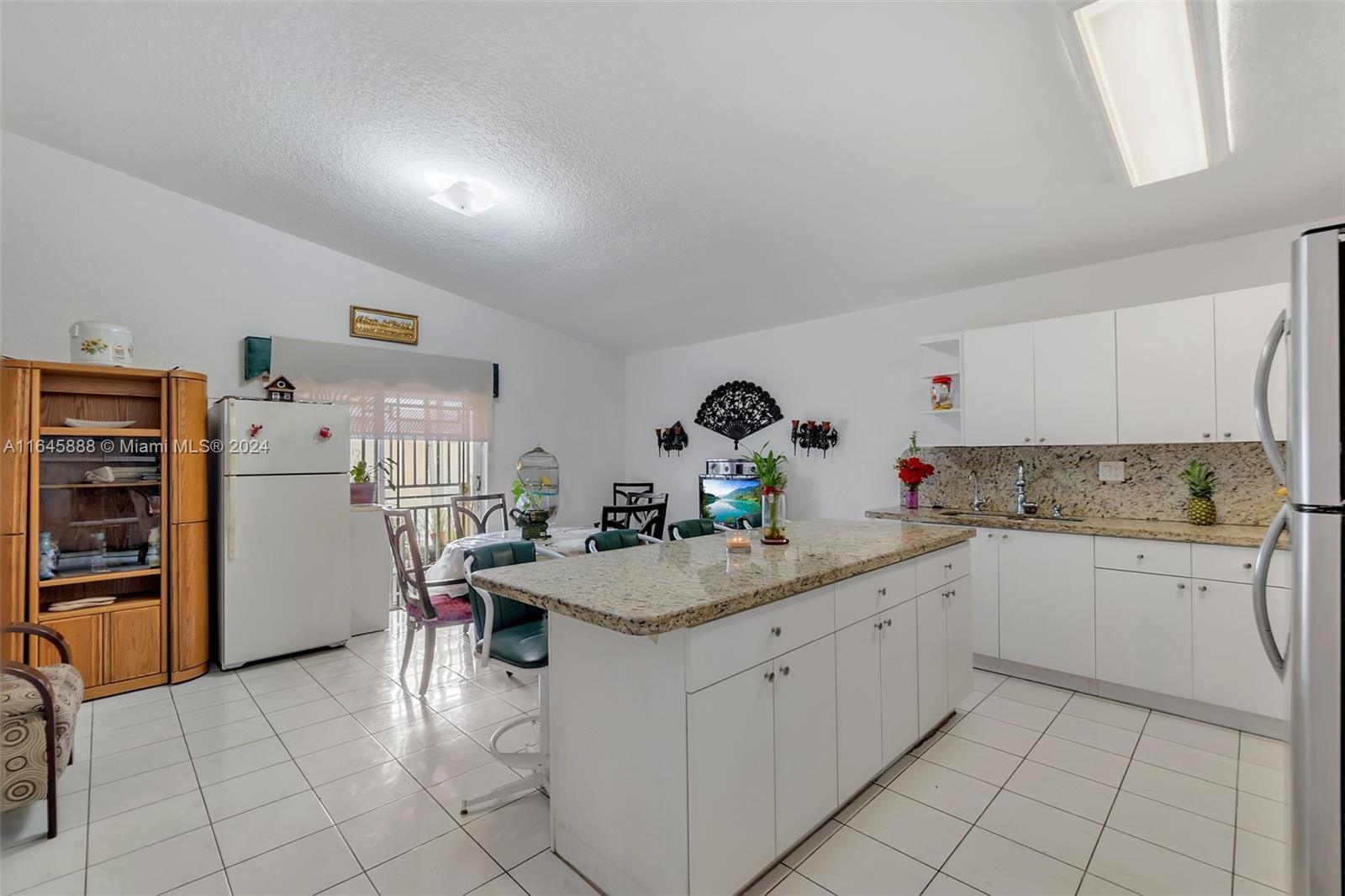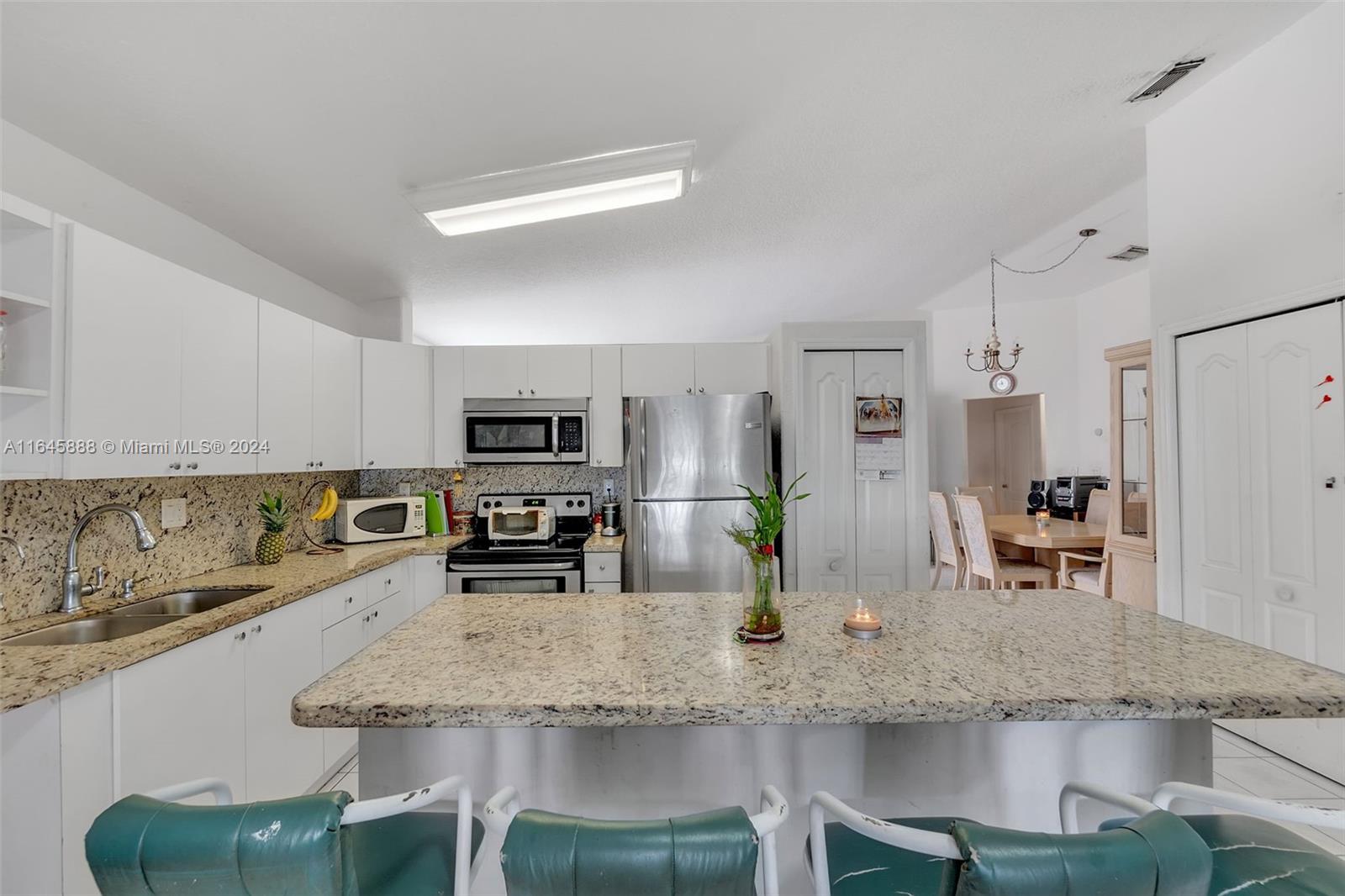 Come see this inviting single-family home located in the desirable neighborhood of Hialeah. Featuring a split floor plan, this home offers 4 bedrooms and 2 bathrooms. The property is equipped with energy-efficient solar panels, complete accordion shutters and an open-concept island kitchen with granite countertops and stainless steel appliances. The interior showcases tile flooring throughout, a spacious family room, a convenient laundry area and beautiful vaulted ceilings. Step outside to enjoy a covered patio, fully enclosed by a privacy fence. Ideally situated near major highways, this home is within walking distance of various shopping and dining options.