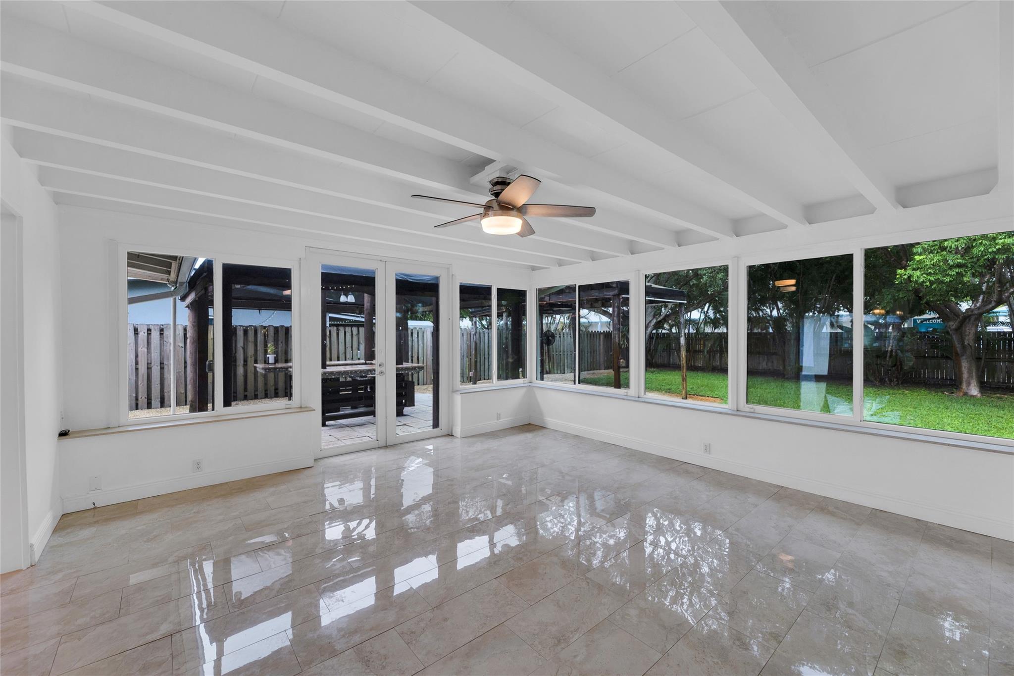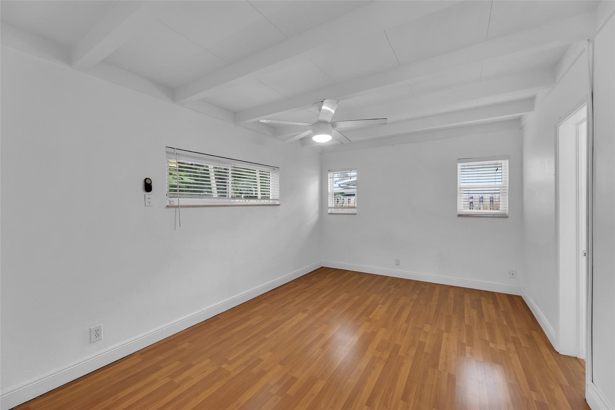 This cozy retreat features 3 bedrooms, 2 bathrooms and a spacious living area with vaulted ceilings and plenty of natural light. The expansive backyard includes an orchid garden, a wet bar, and ample space for a pool and/or outdoor entertaining. Additional features include an updated kitchen with stainless steel appliances, a one-car garage with a separate laundry room, impact windows/doors, and porcelain tile floors. Incredible location, just minutes from downtown, the beaches and the airport.