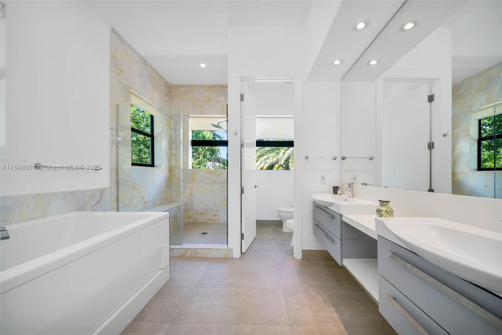 Own a piece of paradise in this three level, bright, open design, immaculate 6 bedroom, 6.5 bathroom home! Located centrally, on a quiet street on the desirable Island of Key Biscayne. A perfect family home ready for entertaining! Featuring extra high ceilings, top of the line finishes & appliances, all en-suite bedrooms with custom closets, spacious social areas, high-impact windows & doors throughout. Wide balconies and terraces overlooking the lush gardens and the heated pool & jacuzzi with their own waterfall. Covered 2 cars garage plus space for more! Electric car charger, 2 storage rooms. Black outs & shades in every room, all in pristine conditions & ready to move in! Walk to schools, parks, gym, shops, restaurants, the beach and more!
