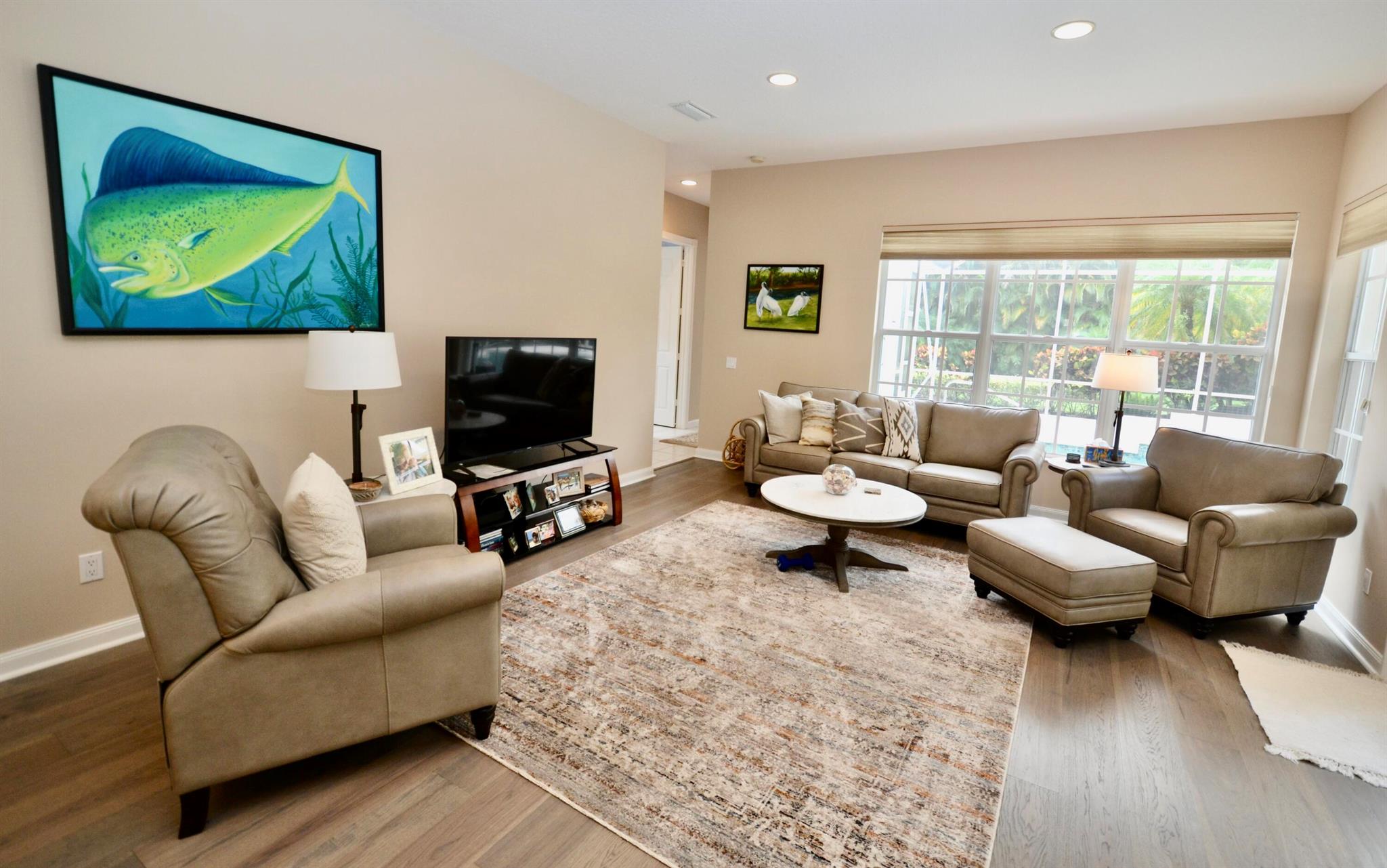 Elevate your living standards in this exceptional 4 bdr, den, 3.5 bath Breakers Pointe home, boasting new hardwood floors in the living, dining, and den areas. The open floor plan is bathed in natural light. The master features a luxurious his/her bath, separate tub/shower, and commodes. Three additional split bedrooms, one ensuite. Oversized screened pool and covered patio. New hurricane shutters. Call listing agent.