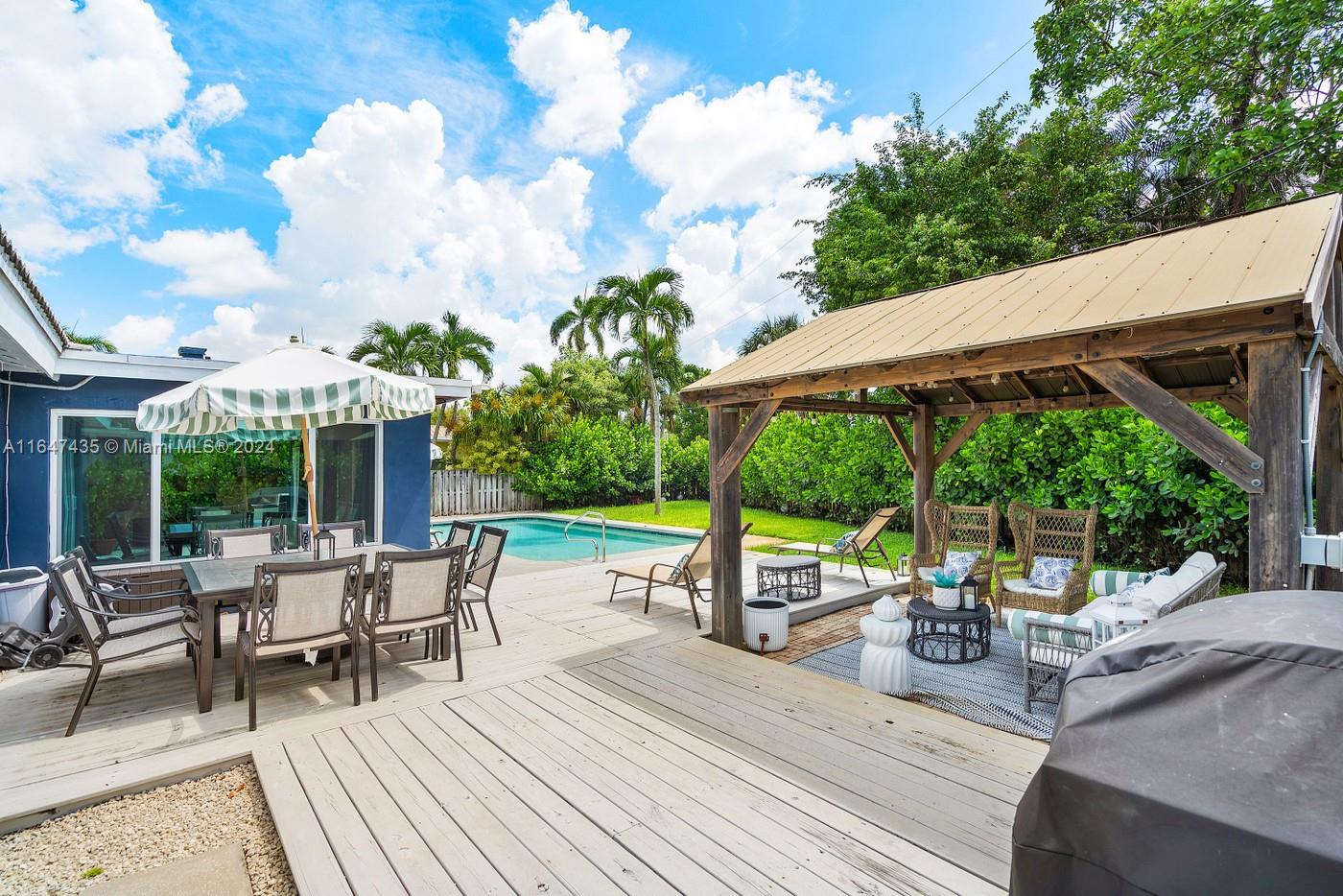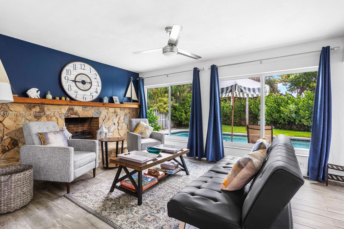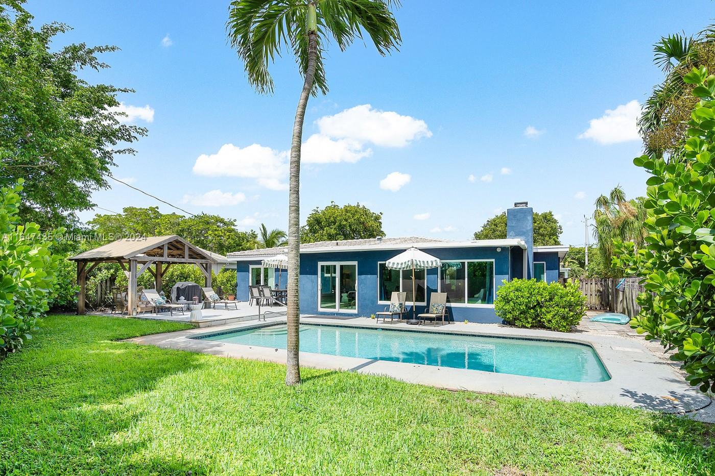 This newly updated and ready for move-in! This open floor concept 3-bedroom home includes separate living room and family room, heated pool, tankless water heater, hurricane impact windows and doors, a whole house generator, large dining space, and much more! The backyard is quintessential Florida living- cabana with a pergola, Lounge by the pool and enjoy complete privacy within tropical landscaping. Barrel tile roof, all tile flooring throughout, a 2023 Water heater, and a 2023 A/C with Nest Thermostat. Perfectly located in Lyon’s Park, so you can enjoy easy access to the beach, the Amphitheater, local highways, restaurants, shopping, Pompano Airpark, Fisher Family Pier and everything Pompano has to offer! NO HOA! Shown by appointment only.