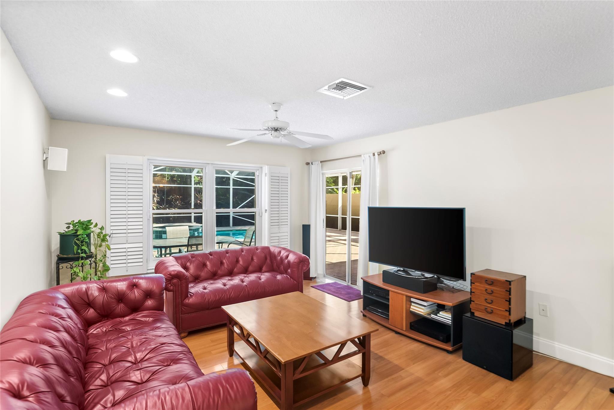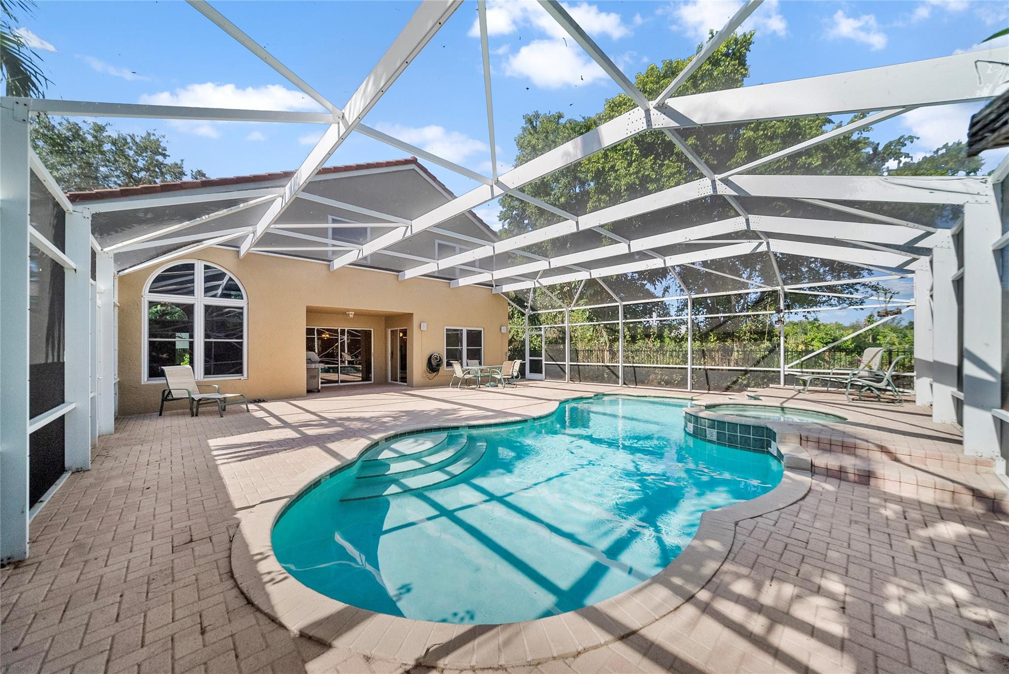 Discover This Exquisite Residence Located In The Gated Community of Whittier Oaks. This beautiful home features a sleek, modern kitchen equipped w/stainless steel appliances & granite countertops. Property boasts recently updated bathroom. Enjoy peace of mind w/impact windows & French doors that enhance both security & energy efficiency. Step outside to your private, screened-in pool, an ideal retreat for relaxation or hosting gatherings. House backs up to a private preserve. The spacious layout includes separate dining and living rooms, providing ample space. Additionally, a versatile loft area offers extra room for a home office. With its sophisticated design & premium features, this home is perfect for those seeking both luxury & practicality in a tranquil, gated setting.