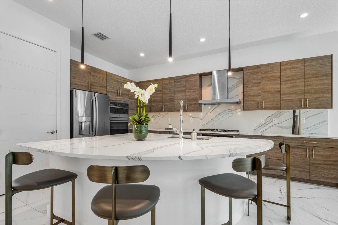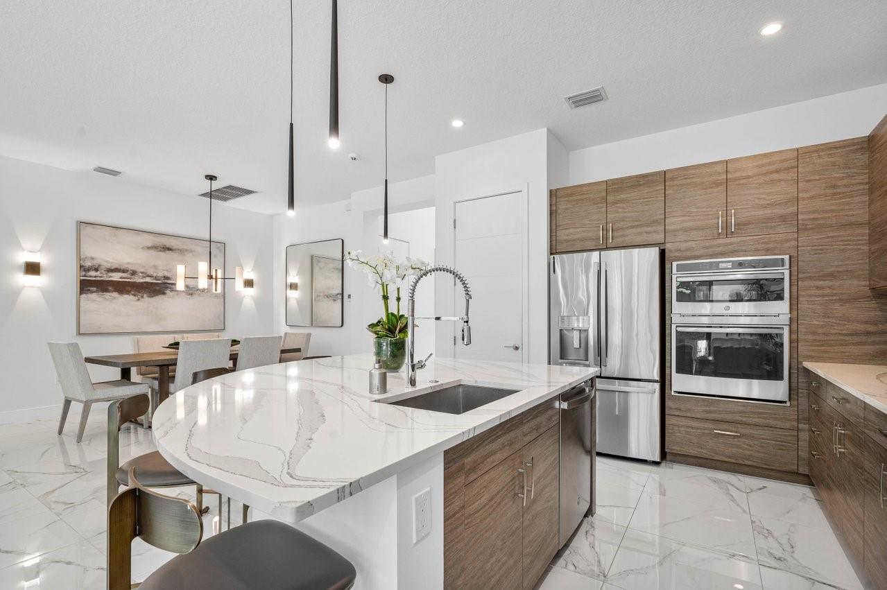 Enjoy country-club living without the dues in Boca’s coveted Lotus community! This immaculate newly-built expanded “Maui” model feels like a designer showcase: Throughout the home, sleek luxe lighting illuminates a freshly painted open layout of gleaming marble-style floors and new bedroom carpets beneath 14’ ceilings, while closets resembling celebrity dressing rooms add a touch of curated luxury. A grand double impact slider connects your trendy eat-in kitchen and oversized island to a private backyard and enviable outdoor kitchen outfitted with a sink and built-in gas grill. The upgrades don't stop there: Your enlarged garage is 2’ longer than most to comfortably accommodate a large SUV, and a flexible bonus room with a built-in desk is ready to suit your changing needs as an office,