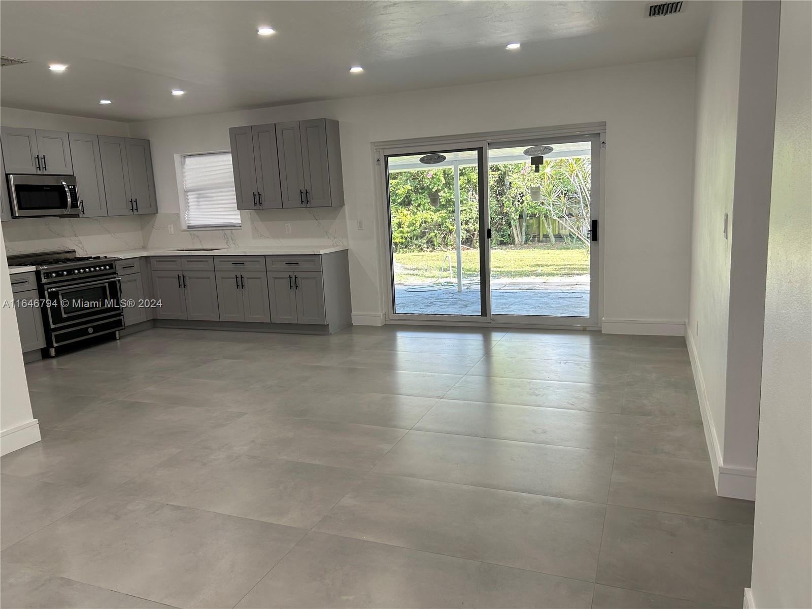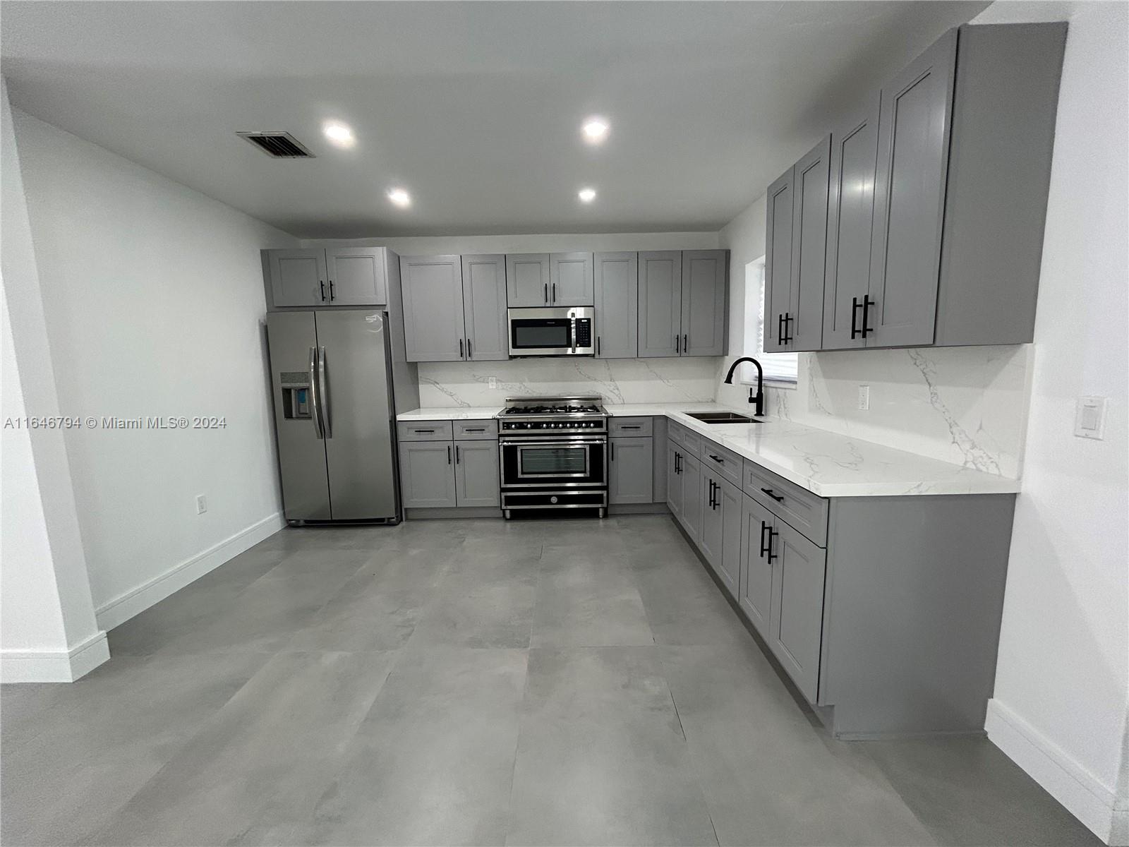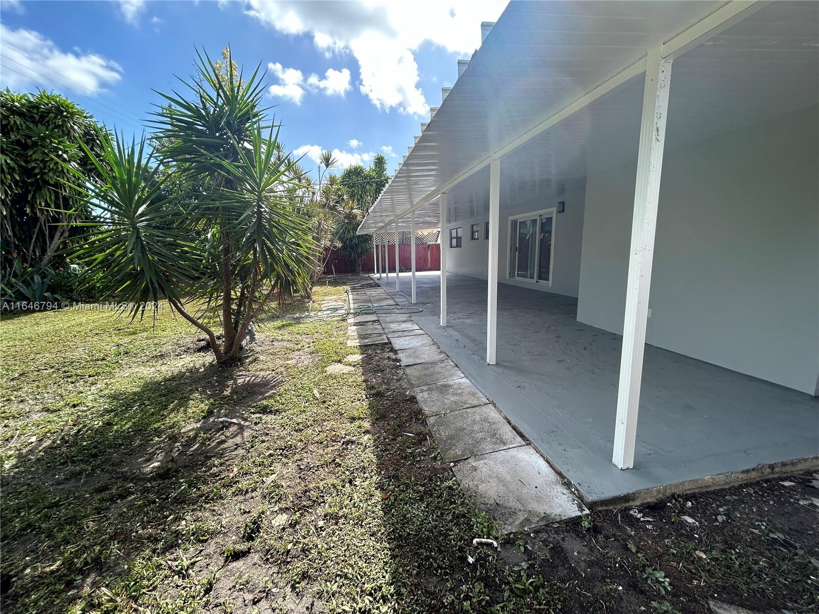 Beautiful property situated in a very quiet & centrally located neighborhood has been tastefully remodeled. Among many upgrades the house has a new roof. The kitchen fully equipped w/ stainless-steel appliances, new cabinets and quartz countertops. Impact sliding doors going into the patio. Updated bathrooms with beautiful tile & new cabinets. Two of the bedrooms have en-suites. The house also features modern tile throughout the house. New floorboards and newly painted interior and exterior. There is a separate utility room with washer/dryer hook up. The circular driveway ensures ample parking for several cars in addition to street parking. The yard is spacious enough to fit a pool with plenty of room leftover for other outdoor entertainment & is completely fenced in.