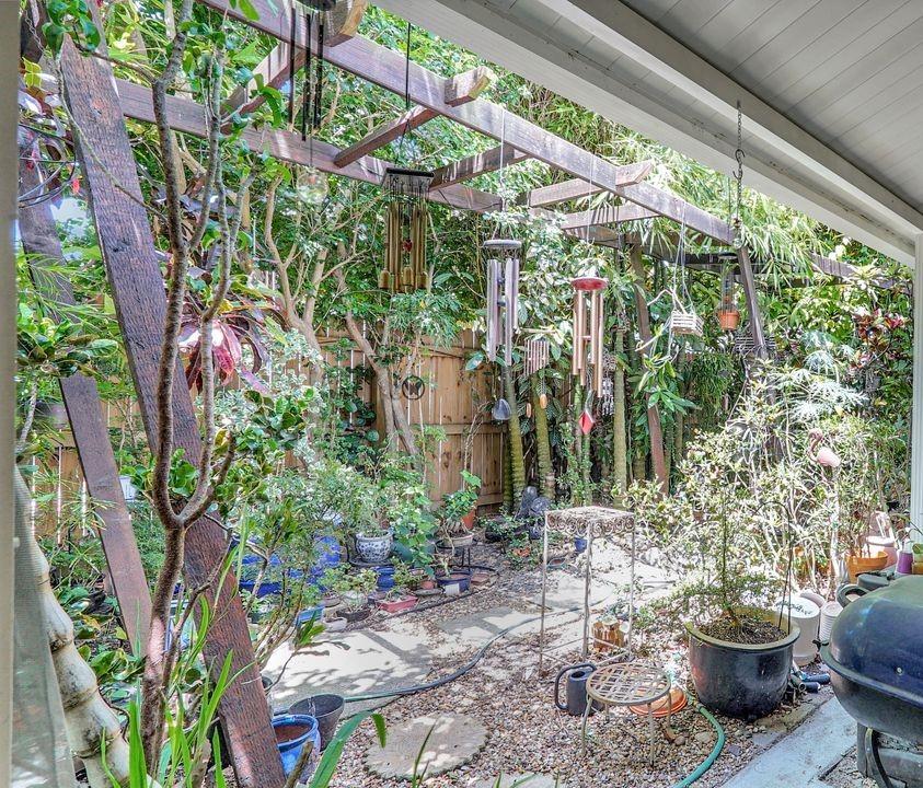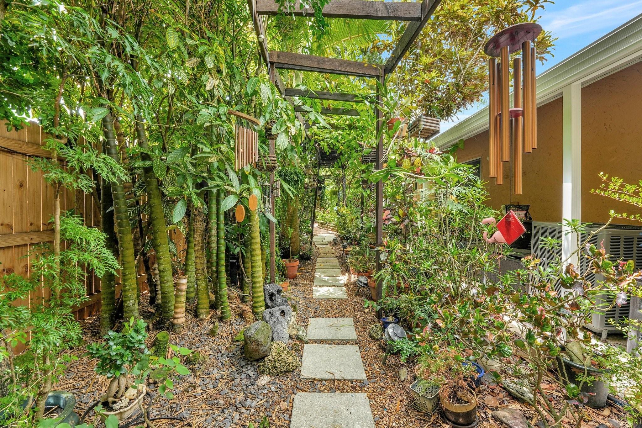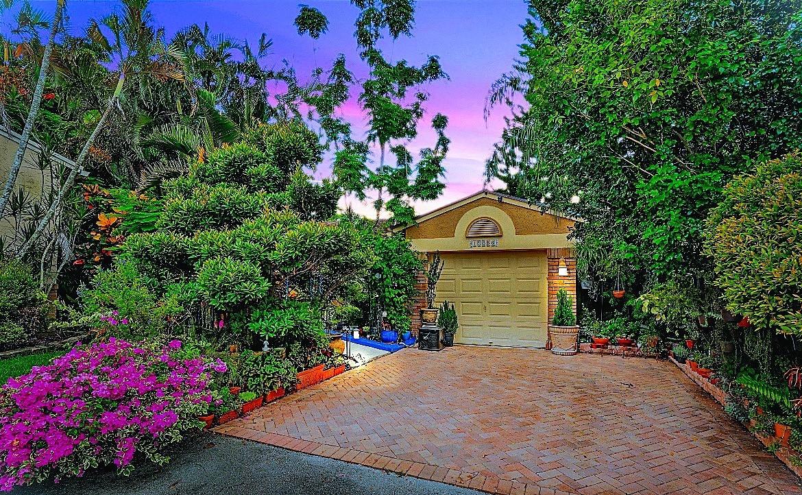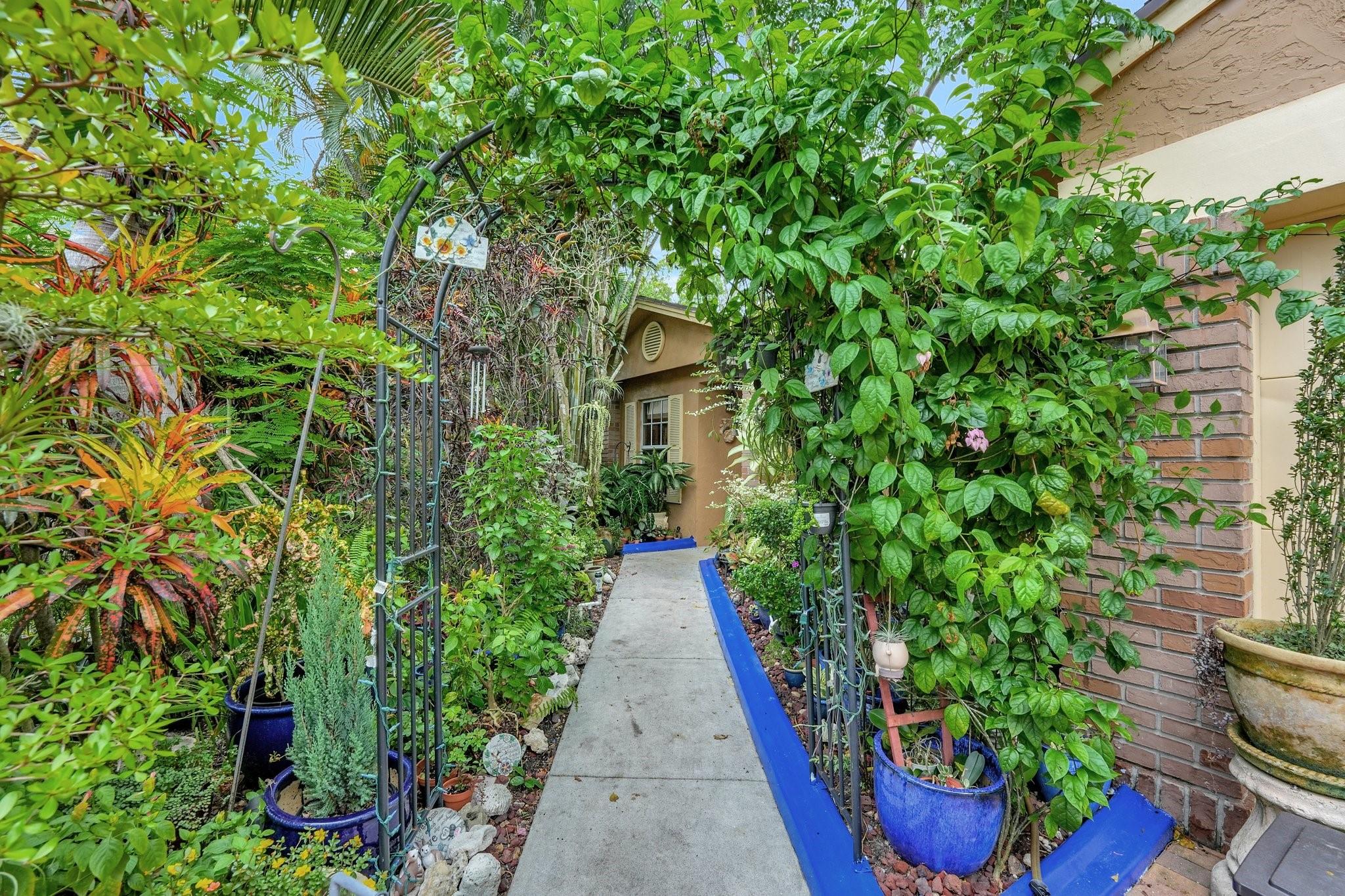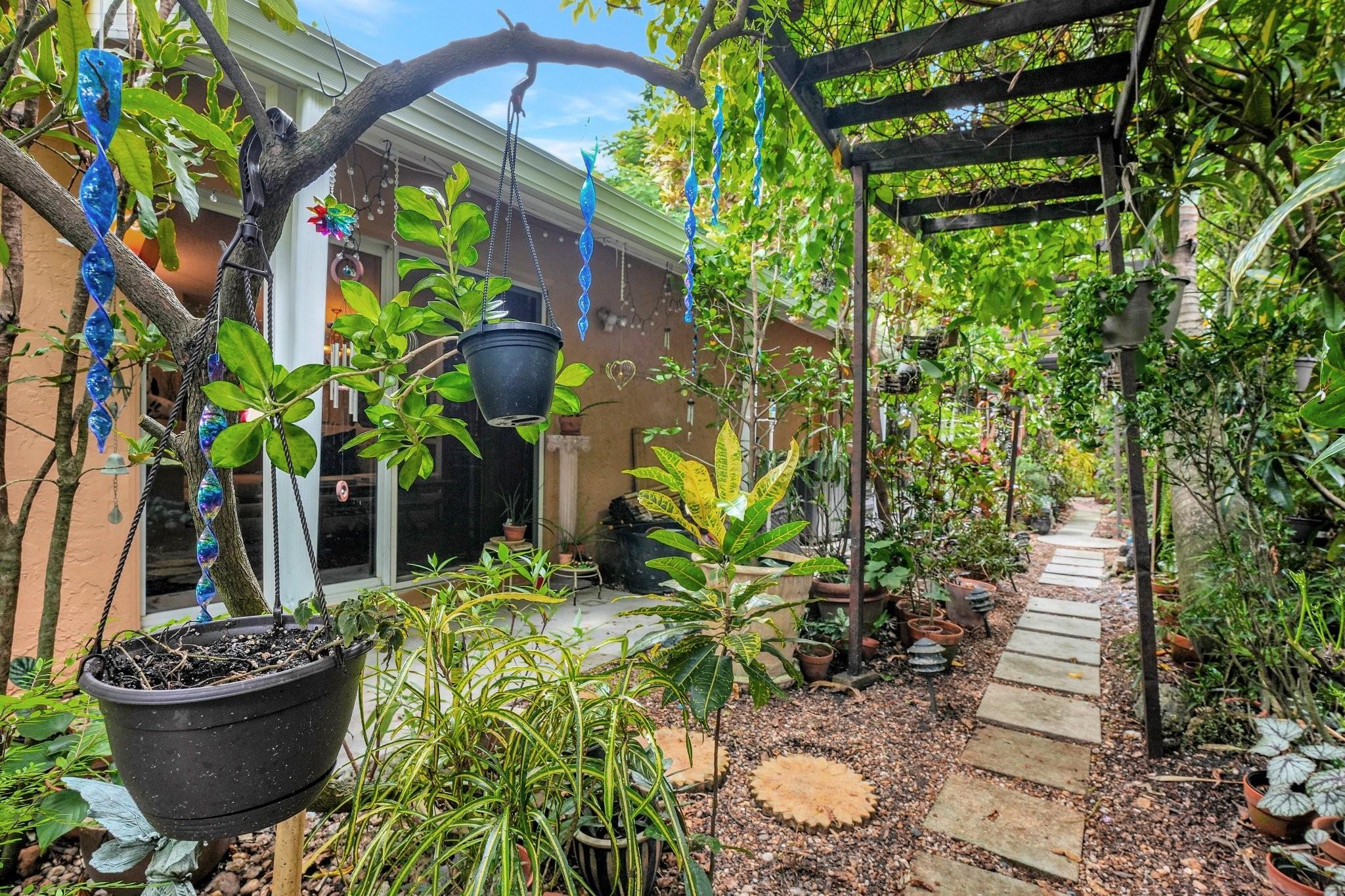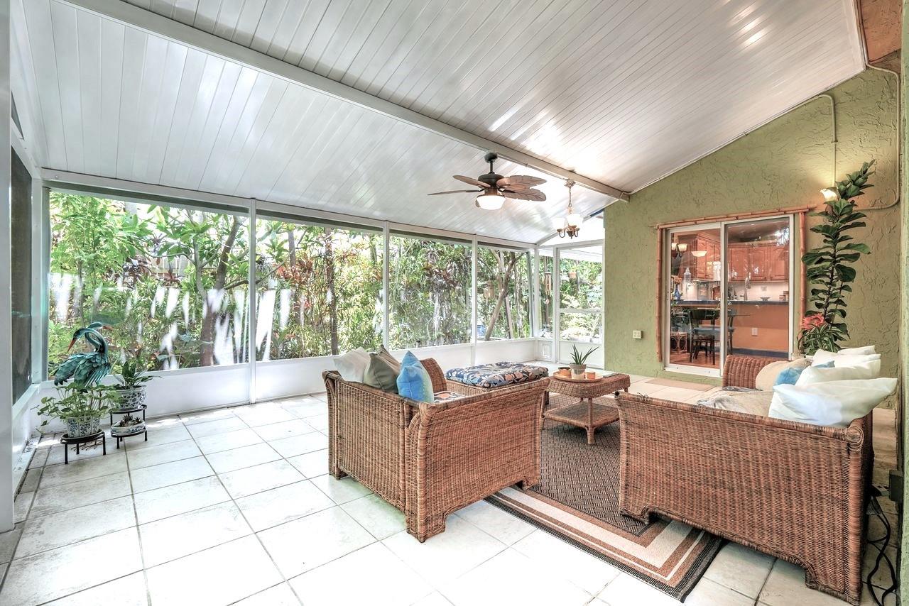 Welcome to a world of enchantment! Follow the brick paver driveway to this whimsical abode, enveloped by lush landscaping that seems to have sprung from the pages of a fairytale. Located on the largest cul-de-sac in the comm w/extra guest parking, this lovingly maintained 3/2 cottage boasts all IMPACT GLASS windows/doors, rain-soft water filtration system, freshly painted interior areas, bamboo water resistant flooring, new electrical panel. The charming Positano farmhouse kitchen with concrete counters leads to huge 400SF screened tiled Zen patio with yoga niche. The fenced backyard is a kaleidoscope of vibrant hues, flanked by exotic flora & a butterfly garden. Original model home & owner-occupied for the last 20-years. Roof is 40-yr shingle, installed 2007. Comm pool & park up the road!