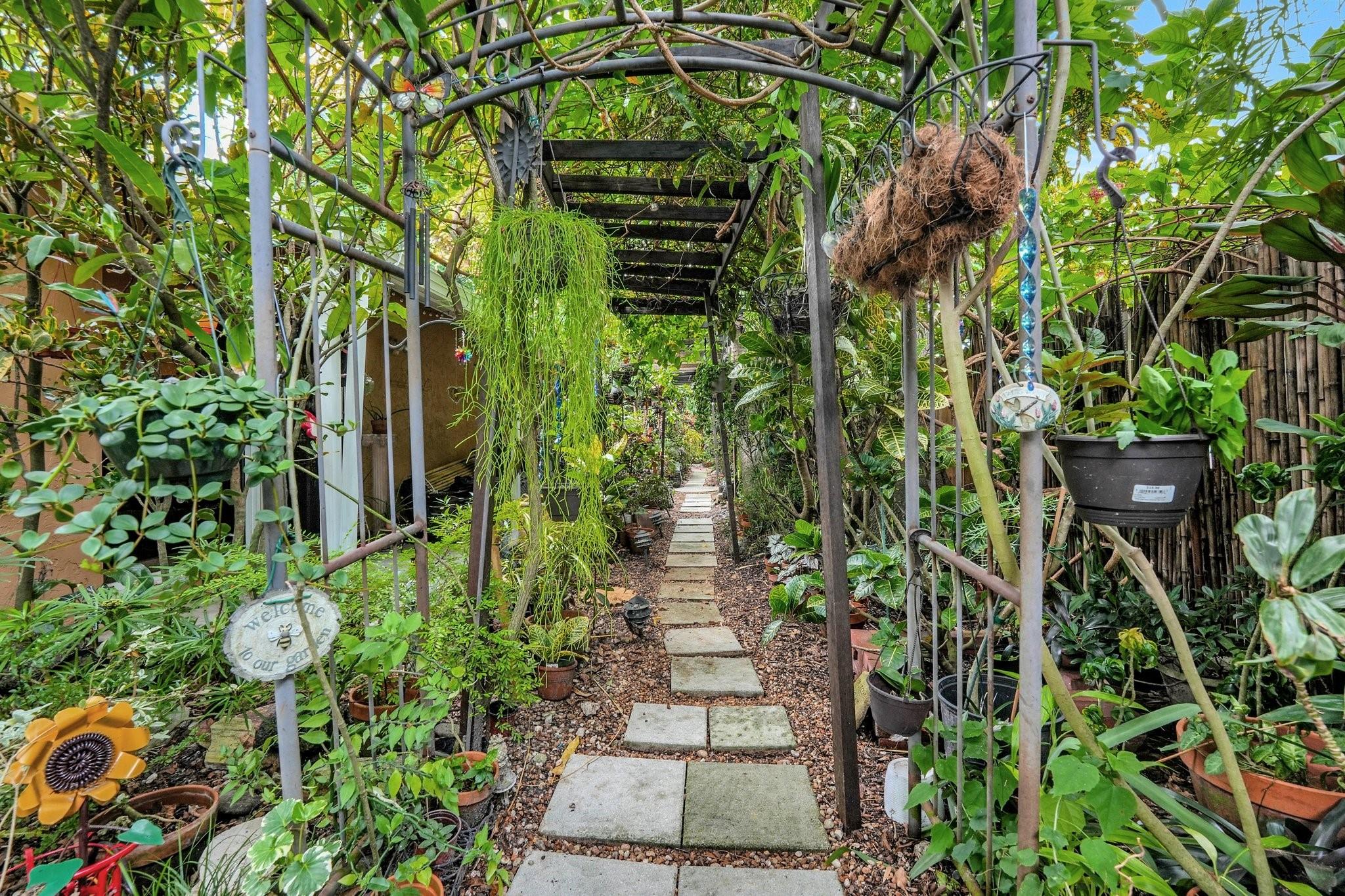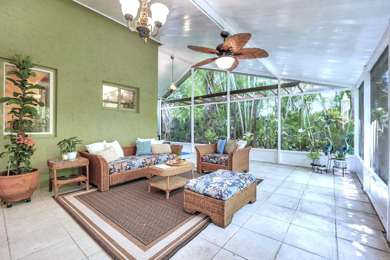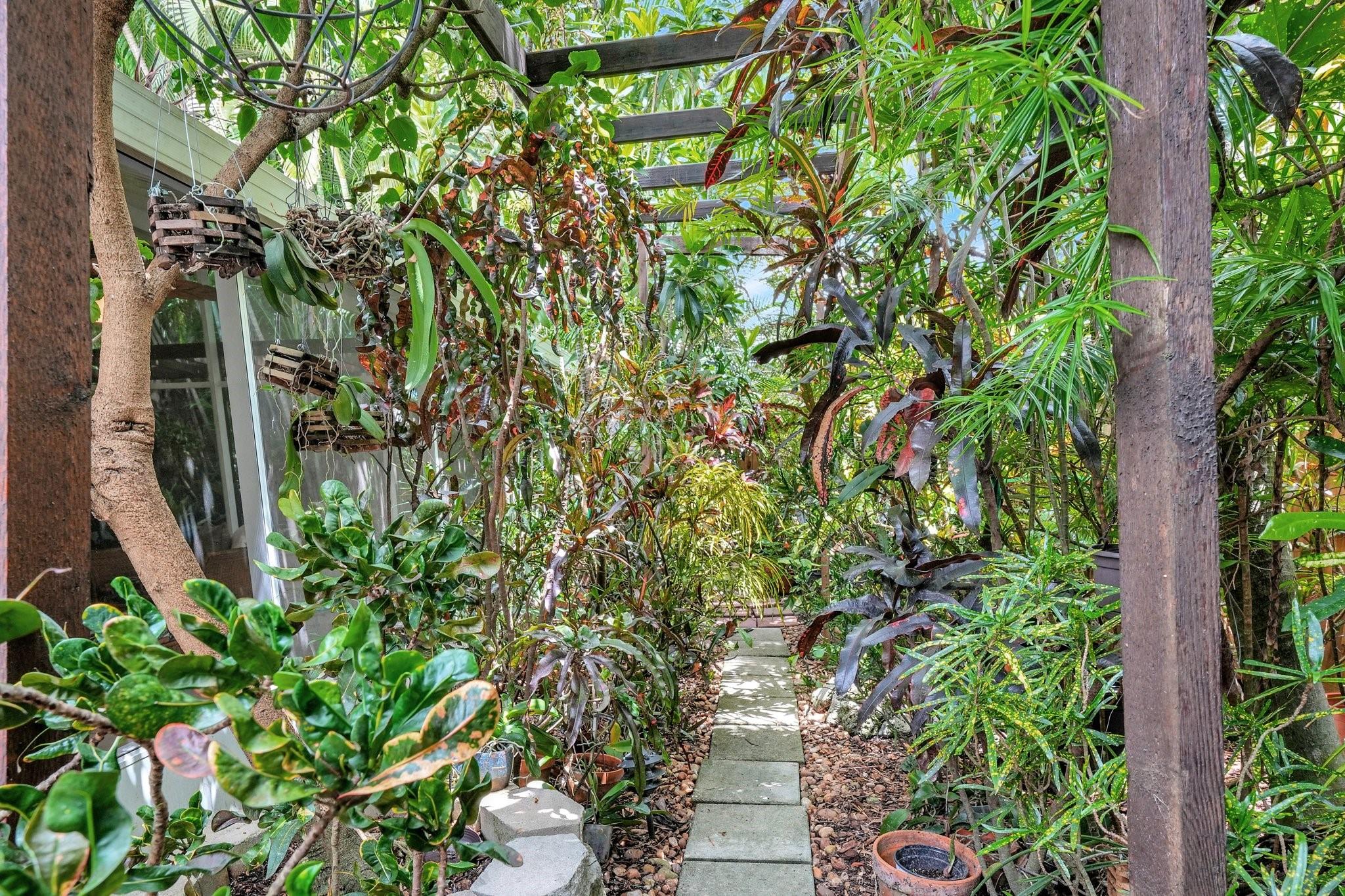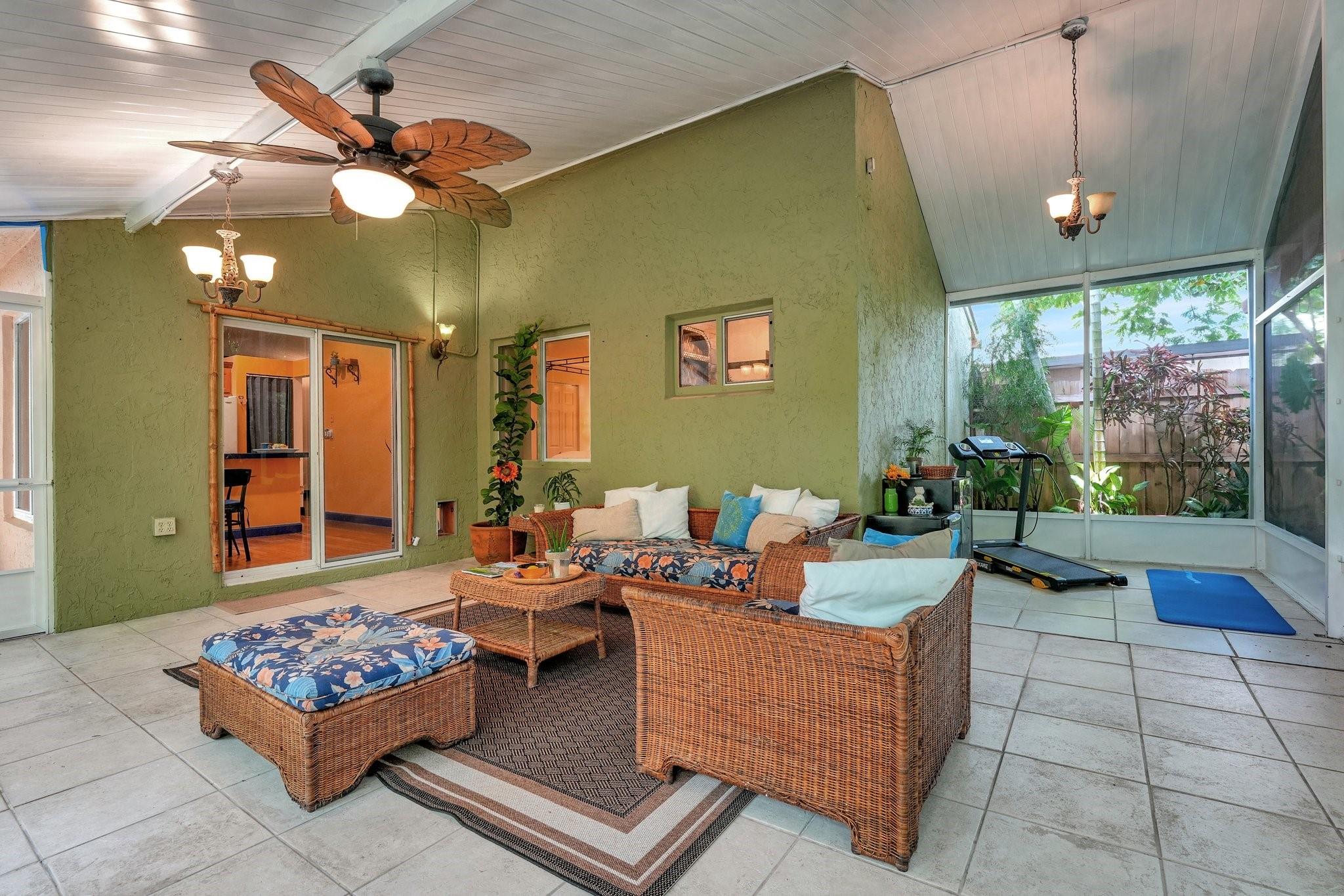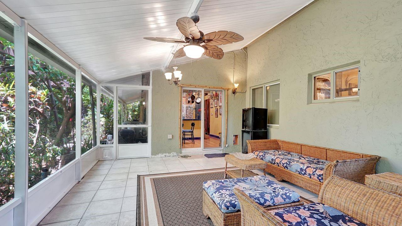 Welcome to a world of enchantment! Follow the brick paver driveway to this whimsical abode, enveloped by lush landscaping that seems to have sprung from the pages of a fairytale. Located on the largest cul-de-sac in the comm w/extra guest parking, this lovingly maintained 3/2 cottage boasts all IMPACT GLASS windows/doors, rain-soft water filtration system, freshly painted interior areas, bamboo water resistant flooring, new electrical panel. The charming Positano farmhouse kitchen with concrete counters leads to huge 400SF screened tiled Zen patio with yoga niche. The fenced backyard is a kaleidoscope of vibrant hues, flanked by exotic flora & a butterfly garden. Original model home & owner-occupied for the last 20-years. Roof is 40-yr shingle, installed 2007. Comm pool & park up the road!