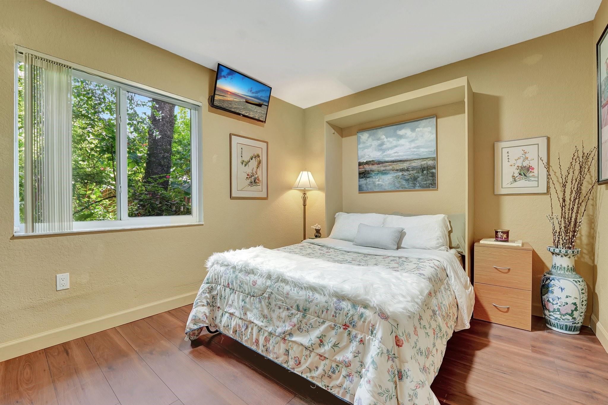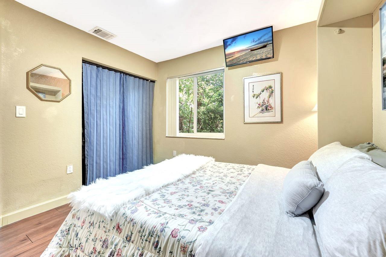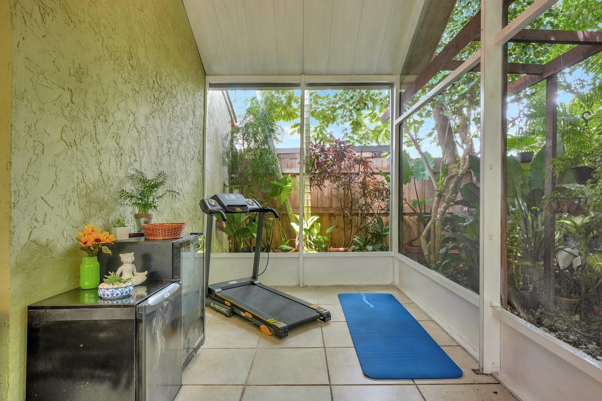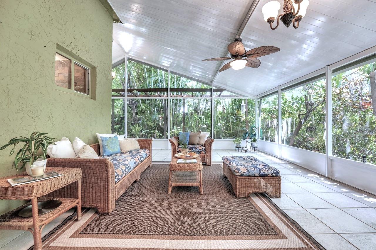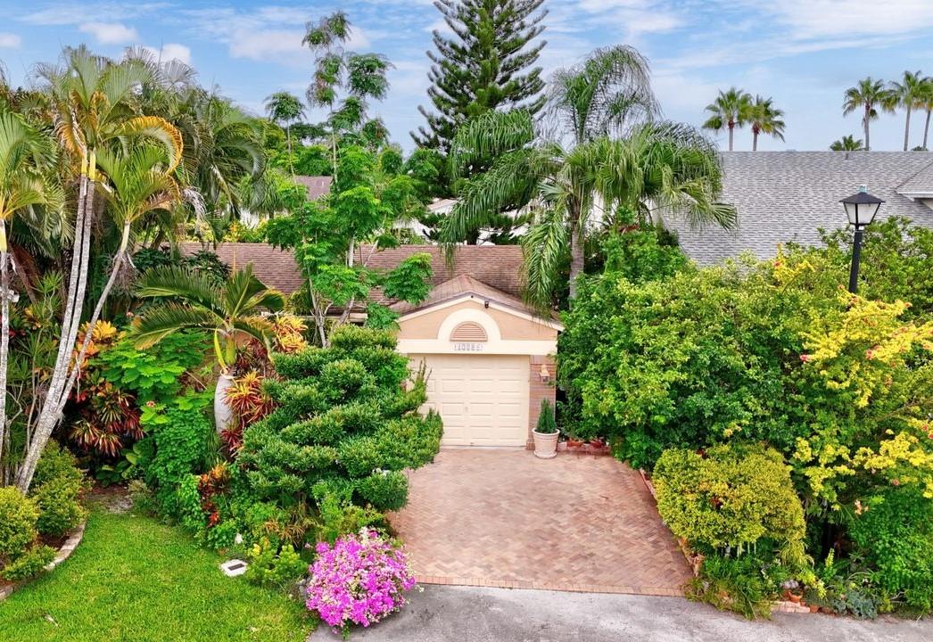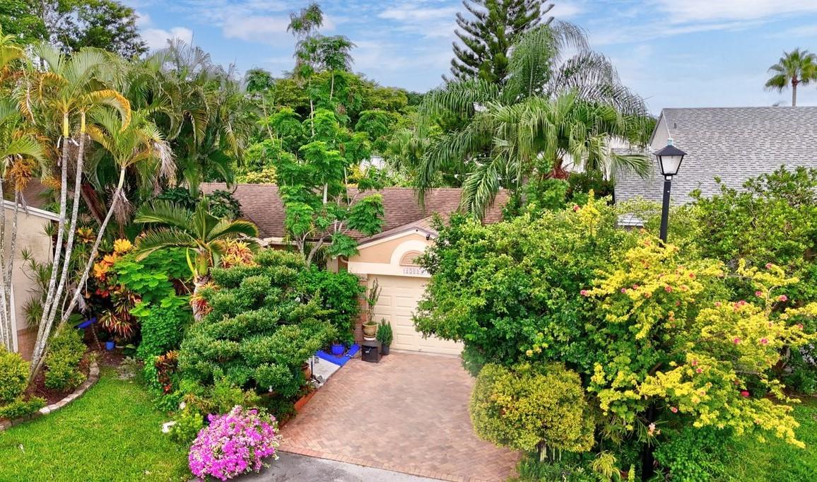 Welcome to a world of enchantment! Follow the brick paver driveway to this whimsical abode, enveloped by lush landscaping that seems to have sprung from the pages of a fairytale. Located on the largest cul-de-sac in the comm w/extra guest parking, this lovingly maintained 3/2 cottage boasts all IMPACT GLASS windows/doors, rain-soft water filtration system, freshly painted interior areas, bamboo water resistant flooring, new electrical panel. The charming Positano farmhouse kitchen with concrete counters leads to huge 400SF screened tiled Zen patio with yoga niche. The fenced backyard is a kaleidoscope of vibrant hues, flanked by exotic flora & a butterfly garden. Original model home & owner-occupied for the last 20-years. Roof is 40-yr shingle, installed 2007. Comm pool & park up the road!