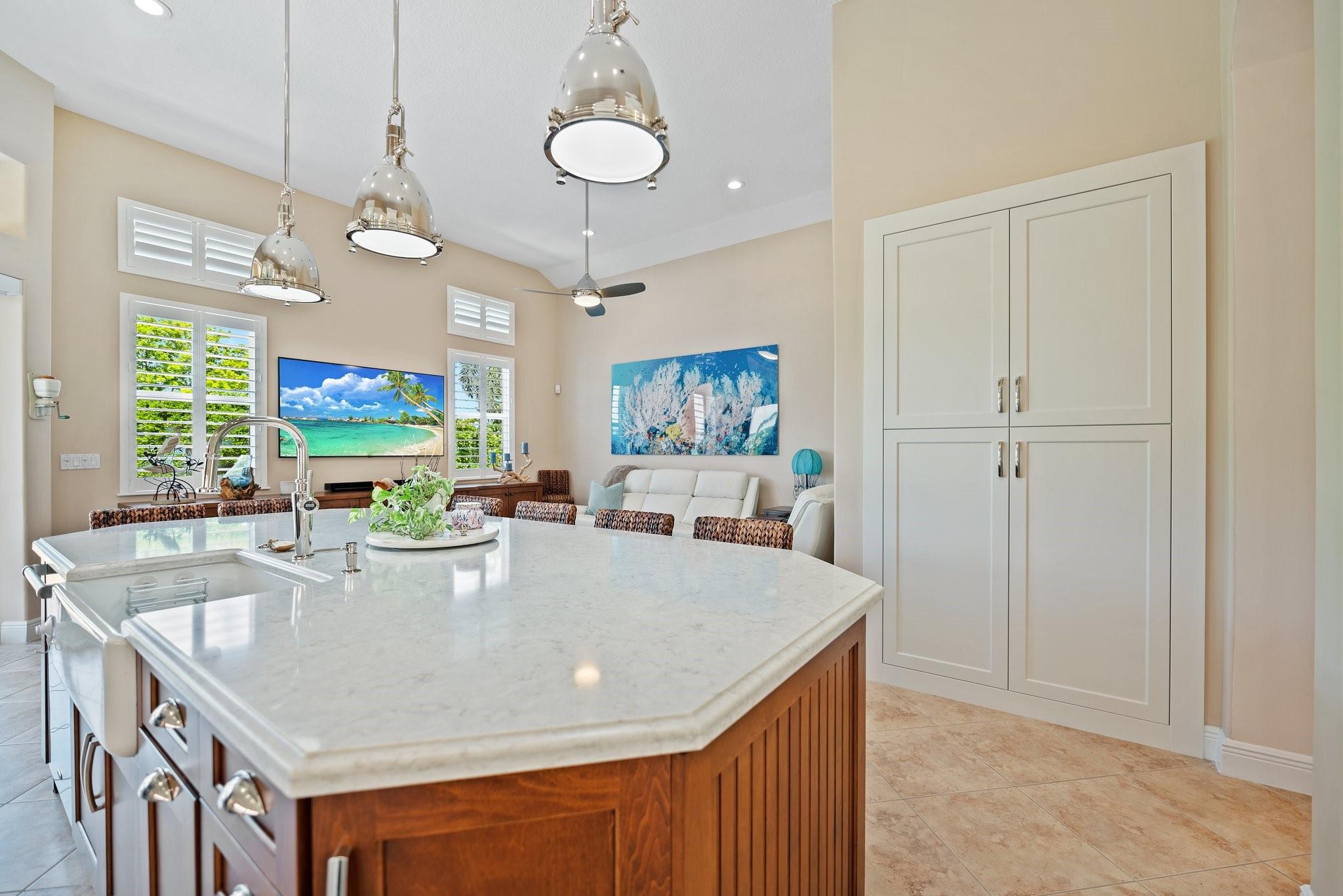 Experience refined luxury in this elegantly appointed 3-bdrm + den, 3-bath pool home, built in 2003 and impeccably updated. This sophisticated residence boasts a 3-car garage and a fully renovated chef's kitchen, with top-tier Wolf appliances, a Shaws sink imported from England, and a Sub-Zero refrigerator. Natural light flows into the home through new hurricane impact windows & doors, highlighting the high ceilings. Your private oasis awaits with a heated pool featuring beach entry and tranquil waterfalls. The gazebo is perfect for entertaining, complete with an icemaker, hot & cold sink, gas grill, burners, and a mini-fridge. Every detail has been thoughtfully crafted for elegance. Located in the prestigious gated community of Isla Del Sol with ocean access via a private boat ramp.