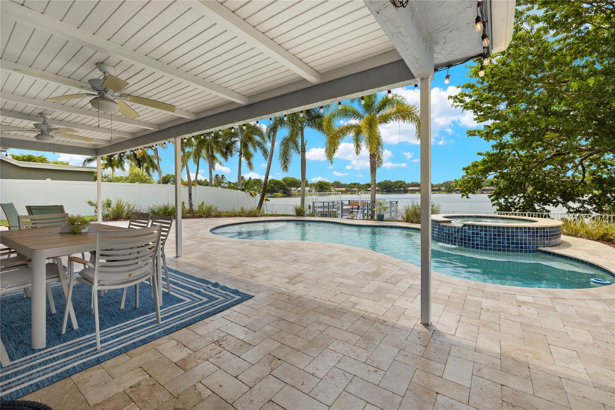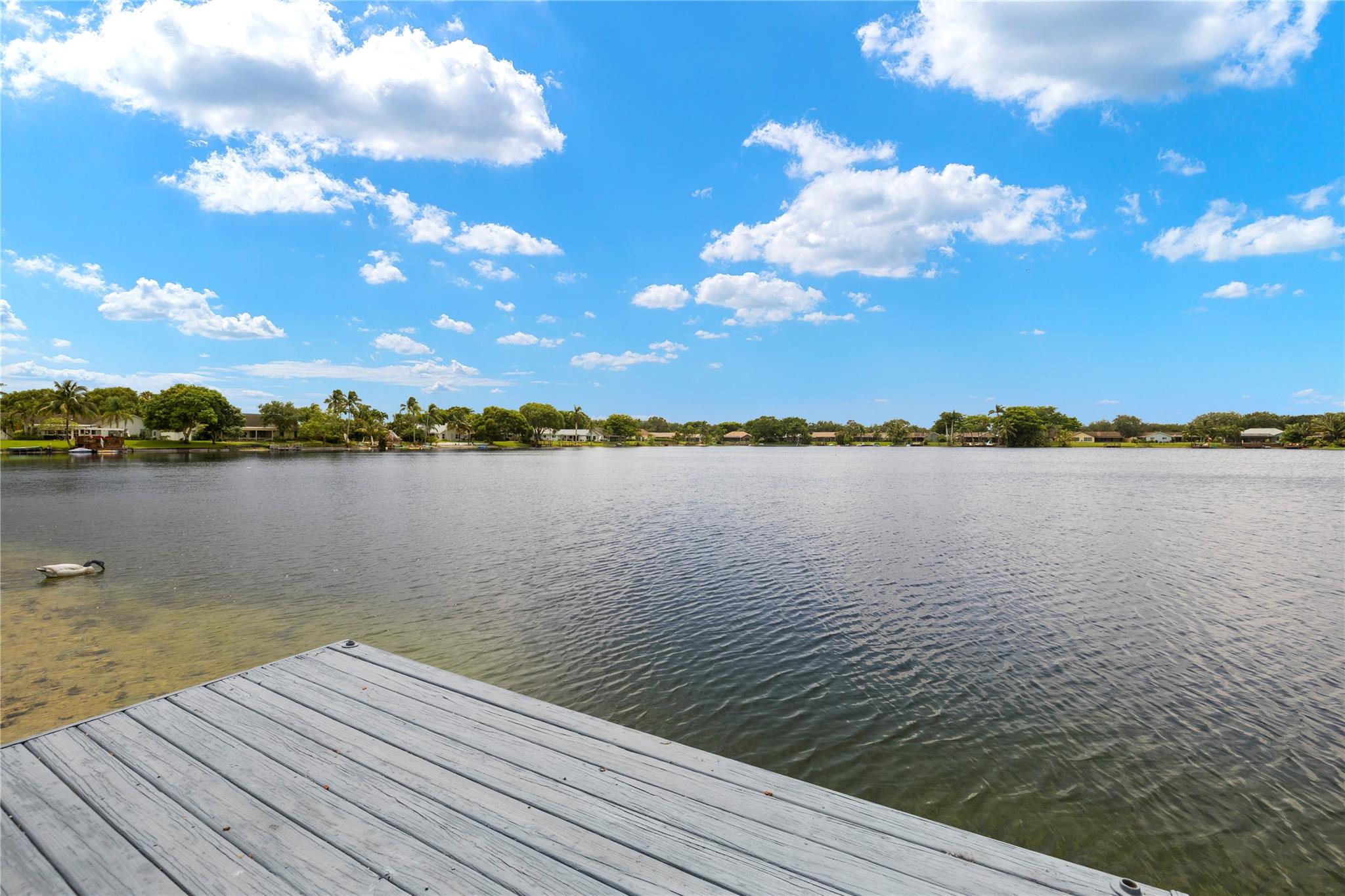 Highly sought after, rarely available slice of lakeside paradise! We are offering this 3 bedroom / 2 bathroom pool home in the heart of Cooper City with A+ schools in a safe neighborhood. Cul-de-sac community with very low traffic, great for kids and families. Minimal HOA of $250/year to cover lake costs. Lake is spring fed, enjoyed by the community for swimming, fishing and boating. This home has great views across the lake either from your private dock or under the covered patio perfect for enjoying those evening sunsets grilling and swimming in the backyard. Home has travertine pool deck, upgraded with impact windows throughout, also has accordion shutters for extra protection. Interior features: vaulted ceilings, engineered hardwood flooring, primary bathroom has been remodeled