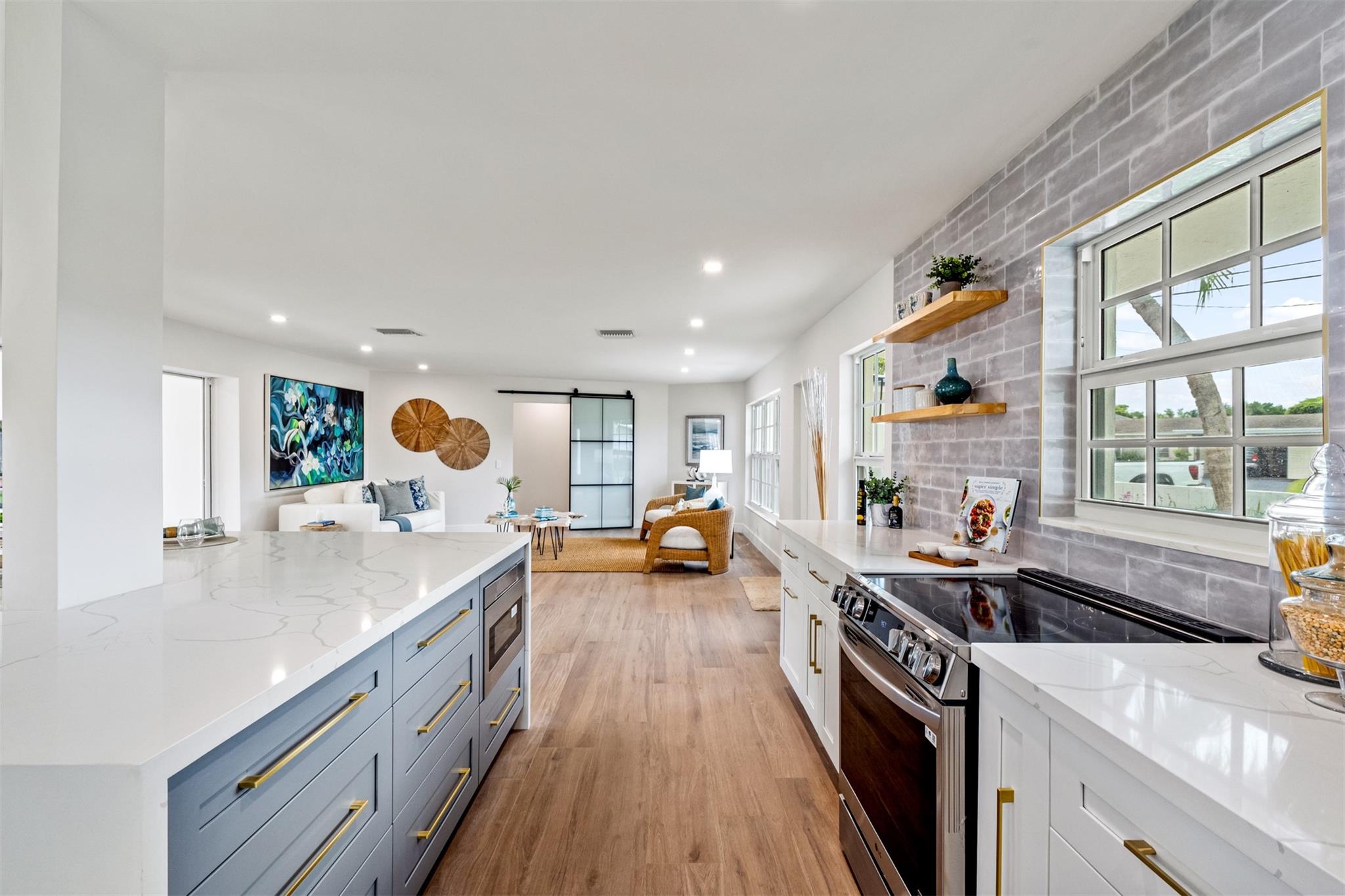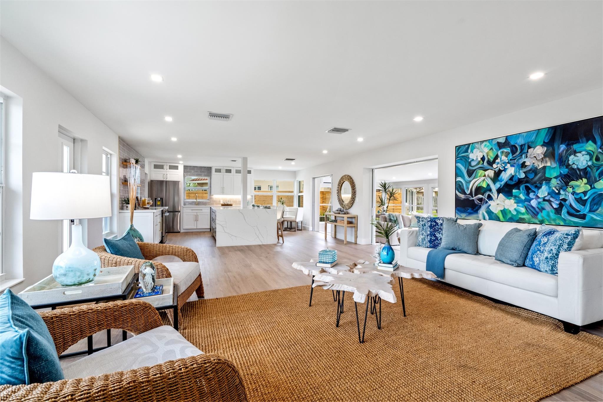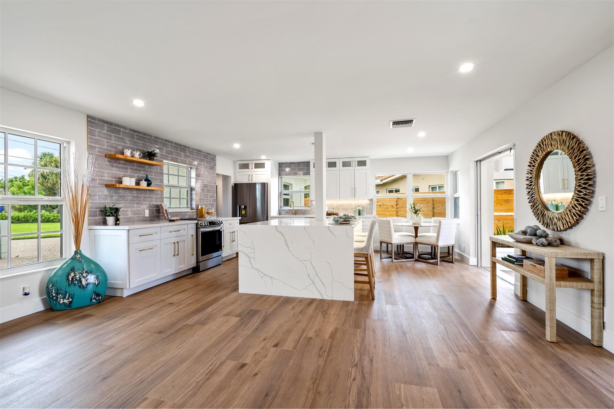 Fully updated Pompano Beach home on intercoastal w/ direct ocean access. This modern-coastal home sits on oversized corner lot featuring 2 bed, 2 full bath, Florida room, laundry room, 2-car garage. Open kitchen with oversize island, under cabinet lighting, stainless steel appliances. Private boat lift- NO FIXED BRIDGES availing open access to the Hillsboro Inlet and Atlantic Ocean. Custom built-in closets. Brand new 2024 aluminum roof, impact windows. Amazing location: 5-min. to Whole Foods, Publix, Pompano Beach Community Park & Airfield. 15-min. to Beaches & Pier. 10-min. by boat to the Hillsboro Inlet. Lighthouse Point shopping and amenities. This intercoastal waterfront property offers the perfect blend of luxury, convenience, and coastal charm.