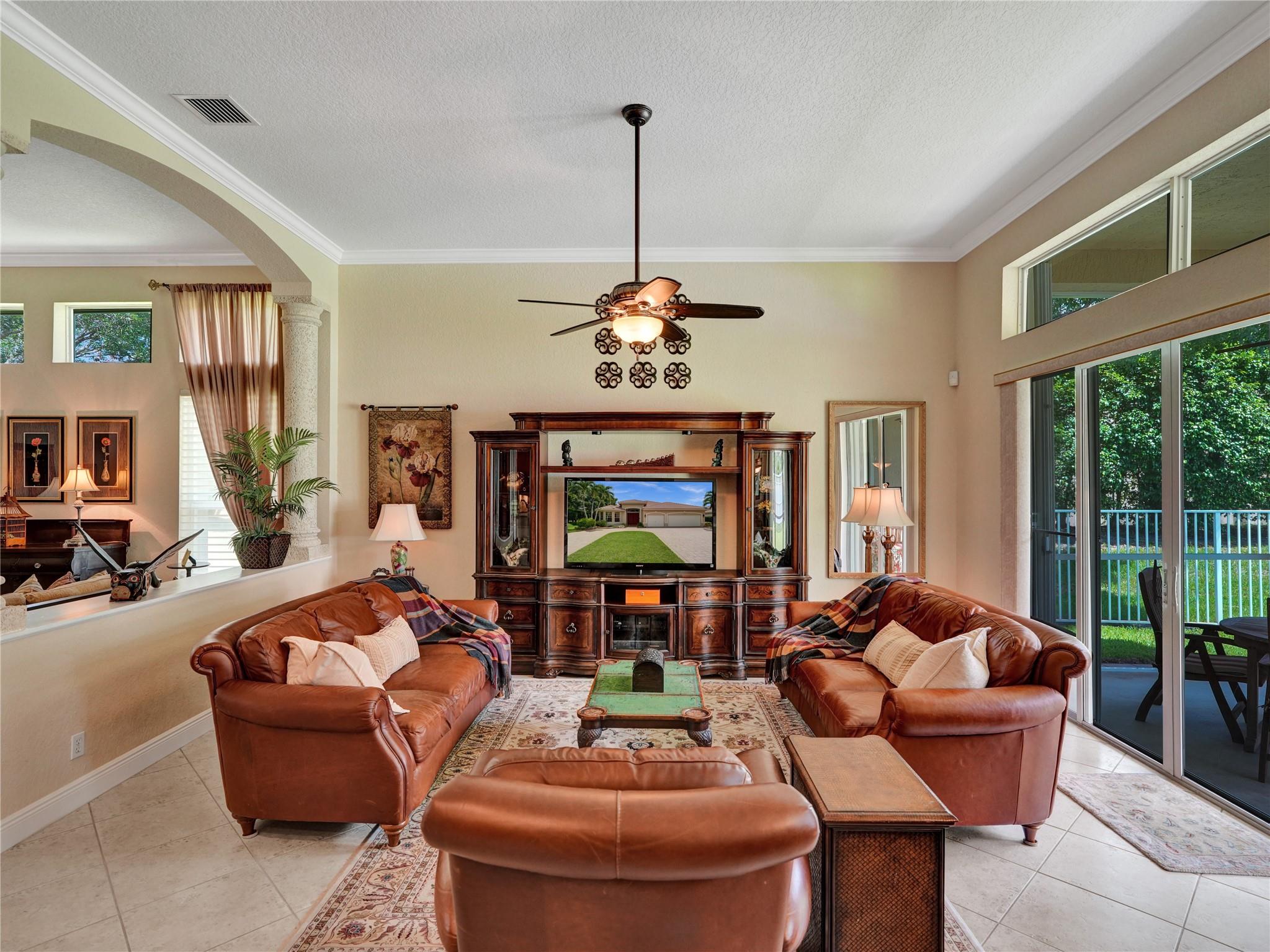 Located in Grand Reserve, a prestigious gated community, this exquisite 4-bedroom, 3-bathroom home (one currently an office) blends luxury with privacy. Set on a generous 10,000+ sq. ft. lot with a large fenced yard, there is ample space for a custom pool. The triple-split layout features an open, airy floor plan with volume ceilings and a gourmet kitchen with 42" maple cabinets, stainless steel appliances, and built-in double ovens. Enjoy a spacious 3-car garage and a large circular driveway accommodating up to 8 vehicles. Additional highlights include a new A/C, accordion shutters, and access to a clubhouse with a fitness center, heated pool, billiards room, kids’ pool, and tot lot. Conveniently close to top-rated schools and major highways, this home is a rare find!