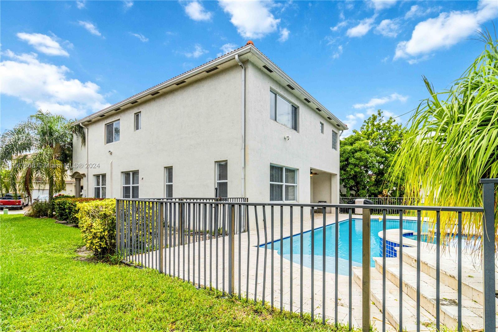 Welcome to this elegant & expansive 3,000+ sqft. home in sought-after Thousand Oaks. Featuring 5 bedrooms and 3.5 baths, this residence showcases an open floor plan w/ abundant natural light. The main level is highlighted by an open floor plan, large kitchen w/ granite countertops & red oak cabinets, flowing into a sunlit family room & breakfast area. Upstairs, dark wood floors grace your way to den & bedrooms. The extra large master suite boasts hallway to dual walk-in closets and bath with separate his and hers sides. The backyard oasis includes a fenced stone patio and an inviting in-ground pool. 2 car garage & extended driveway for 4 cars. Community amenities include pool, gym, tennis/basketball courts & playground. Close to restaurants, coffee shops & retail.