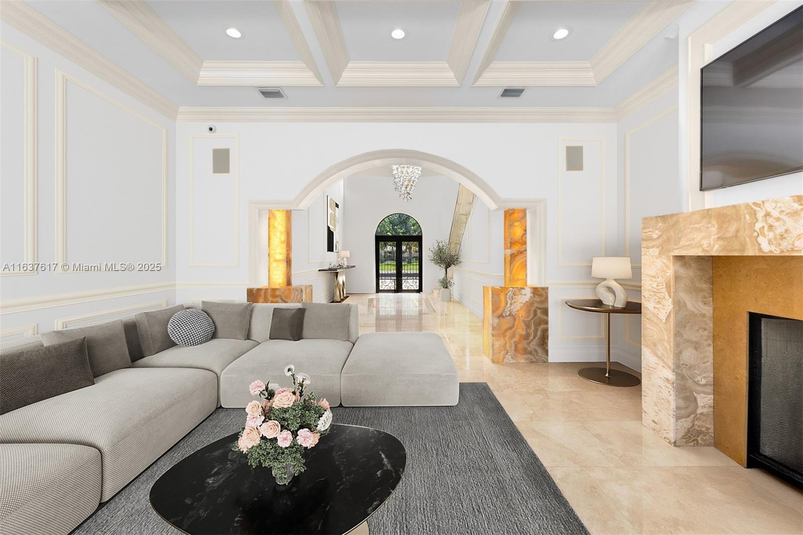 Tucked along a quiet tree-lined street in Pinecrest, this 9,567 SF masterpiece offers 7 BD, 6 BA, and 2 HB on a lush 36,590 SF lot. Beyond the grand triple-height foyer, discover multiple wine cellars, wet bar, movie theatre, and game room. The chef’s kitchen dazzles with an expansive island, premium appliances, and pantry. Exceptional details include an elevator, generator, Savant smart system, impact windows/doors, and insulated AC 3-car garage. Outdoors, a covered terrace with summer kitchen overlooks the sparkling saltwater pool, jacuzzi, and versatile tennis/soccer/basketball court. A detached cabana with half bath, custom bar, and recreation room completes this rare offering. Some photos virtually staged.