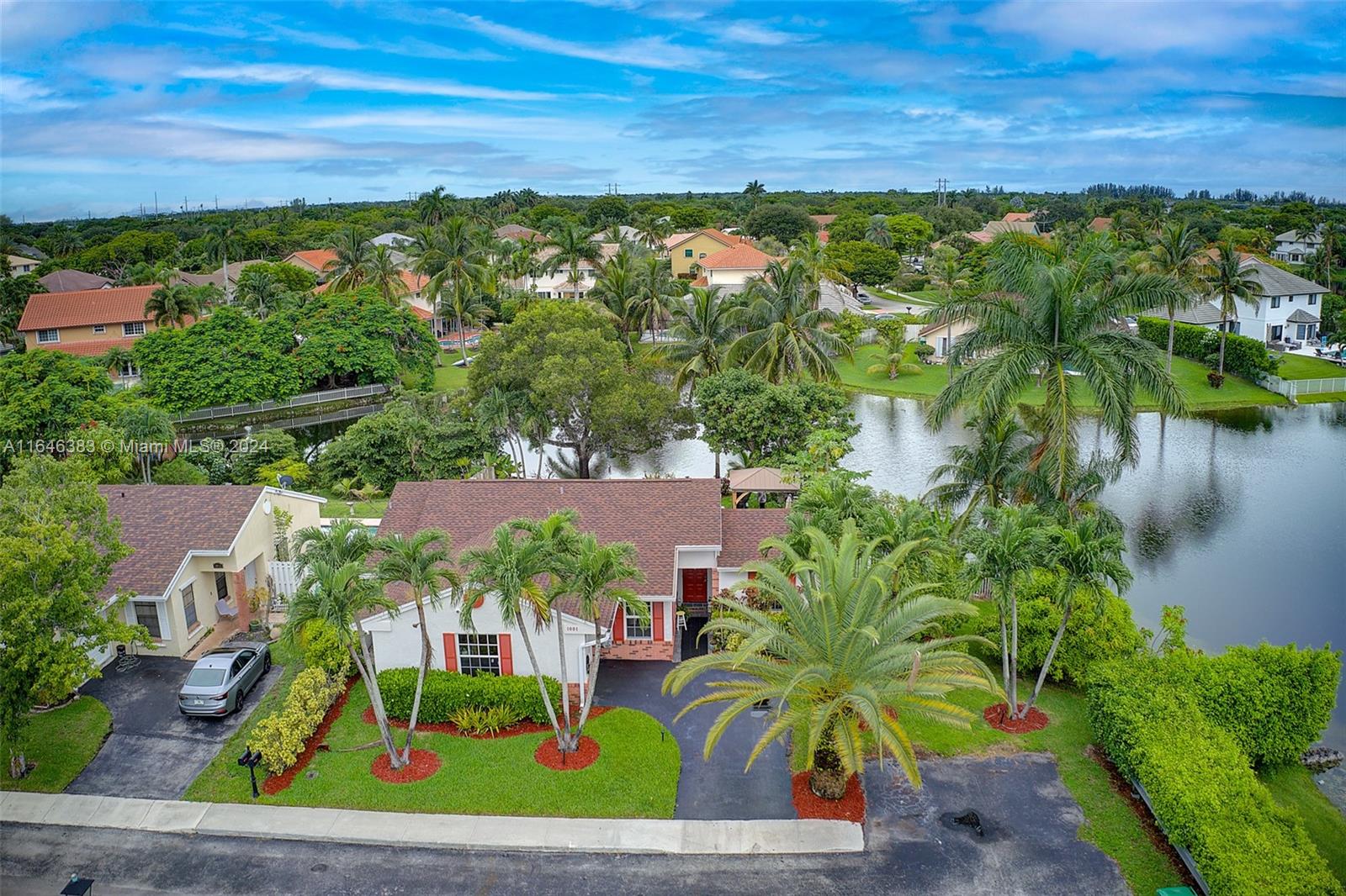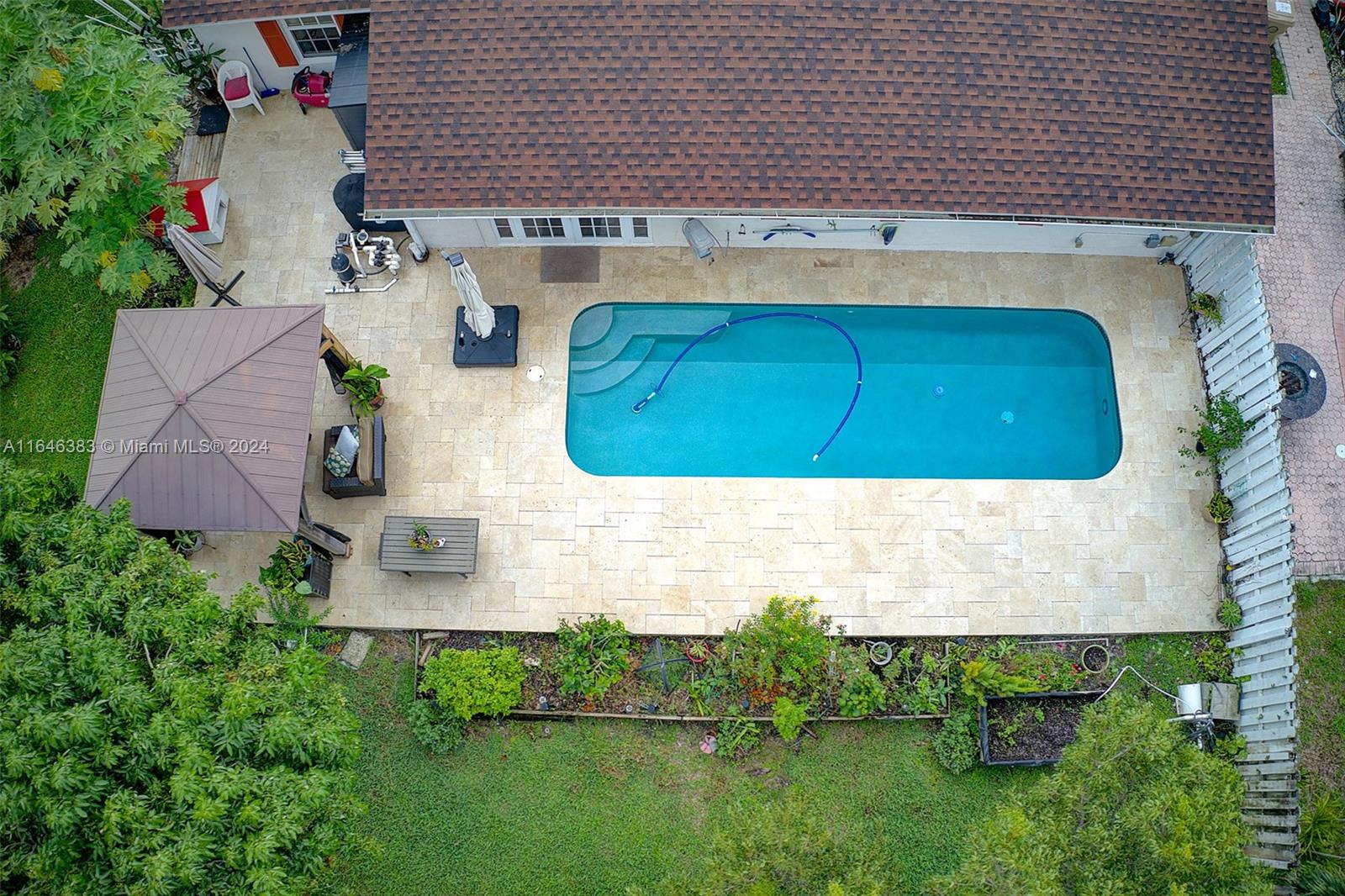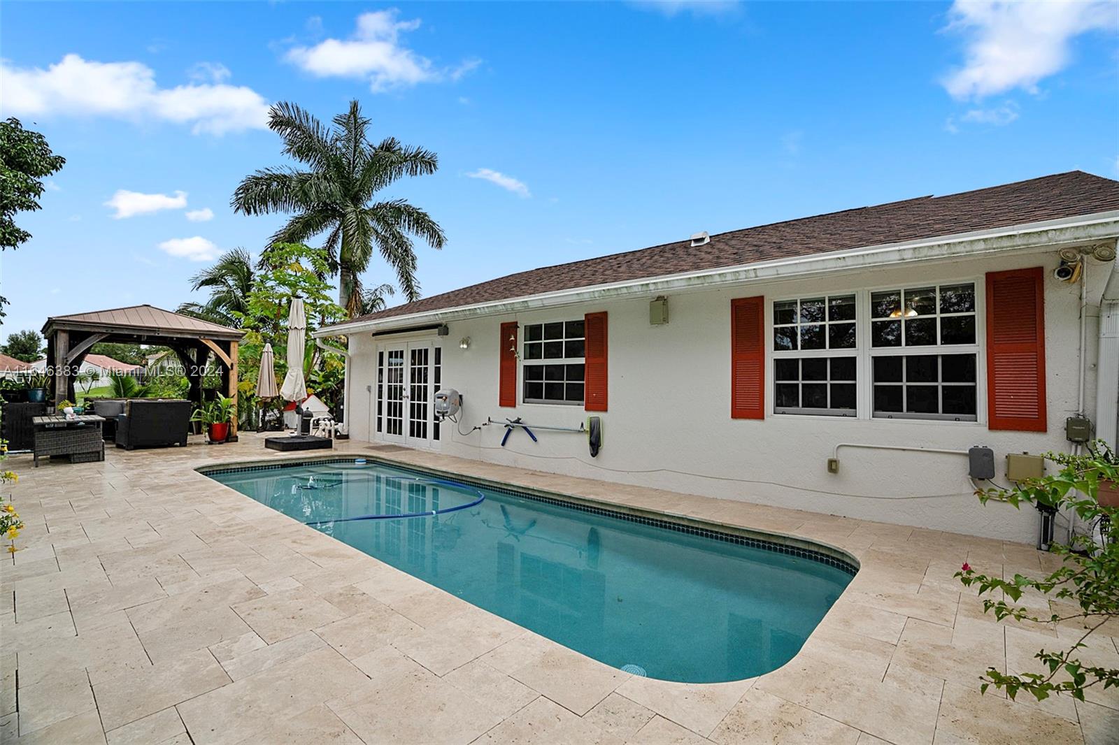 BREATHTAKING, PRIME LOCATION, OVER-SIZED WATERFRONT LOT IN SHENANDOAH, ON A CUL DE SAC WITH WATER VIEWS EVERYWHERE. HOUSE FEATURES 4 BEDROOMS, 2 BATHROOMS, 1-CAR GARAGE. POOL WITH PUMP REPLACED ON 2022. UPDATED KITCHEN W/ NEWER APPLIANCES, GRANITE COUNTER-TOP & BACK-SPLASH, BREAKFAST AREA, LIVING ROOM W/ FRENCH DOORS LEADING OUT TO THE AMAZING POOL & PATIO AREA OVERLOOKING AN AMAZING LAKE VIEW, LUSH LANDSCAPING W/ FRUTAL TREES AND HERBS GARDEN. NEW TECH SHINGLES ROOF (2024) WITH 16'' INSOLATION. ROOF TRANSFERABLE WARRANTY. IMPACT WINDOWS & SHUTTERS. TESLA CAR CHARGING OUTLET 44KW. UNDER GROUND GAS TANK FOR A WHOLE HOUSE GENERAC GENERATOR-22KW / RATED FOR 27 YEARS. ENERGY EFFICIENT WATER HEATER FROM 2022.