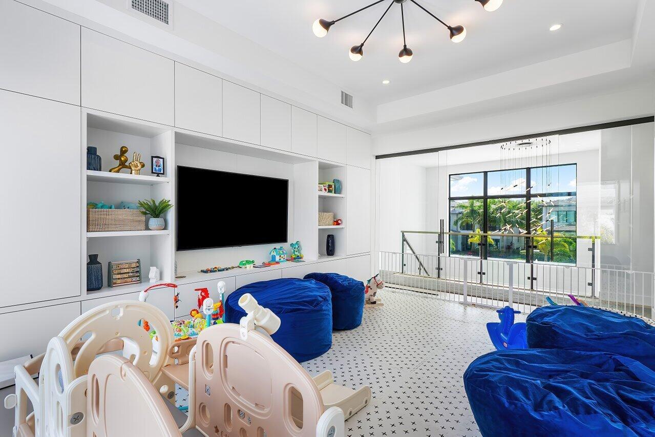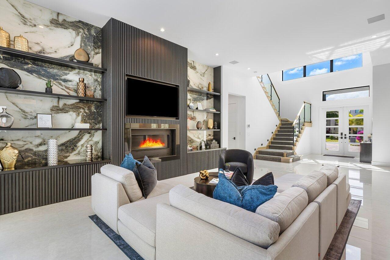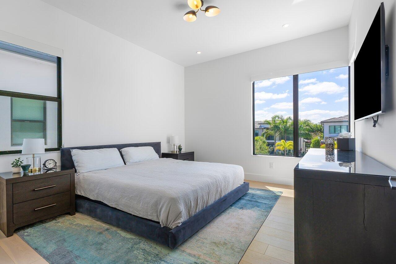 Welcome to a masterpiece of modern luxury in the exclusive Boca Bridges community. This custom-built Palermo Contemporary estate which is being sold Fully Furnished and Decorated transcends typical builder-grade homes, having been meticulously transformed by its visionary owners and designers. Every inch of this residence reflects unparalleled craftsmanship, with extensive customizations, designer finishes, and thoughtful enhancements throughout.This two-story estate boasts an array of lavish amenities, including 5 spacious bedrooms, 61/2 elegantly appointed baths, a club room, and a state-of-the-art home theater with professional soundproofing--a six-figure investment in entertainment. The upstairs primary suite offers a private oasis with a morning kitchen and a wrap-around veranda.