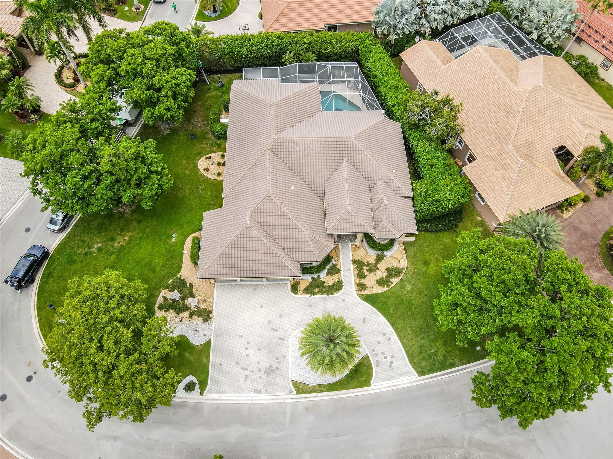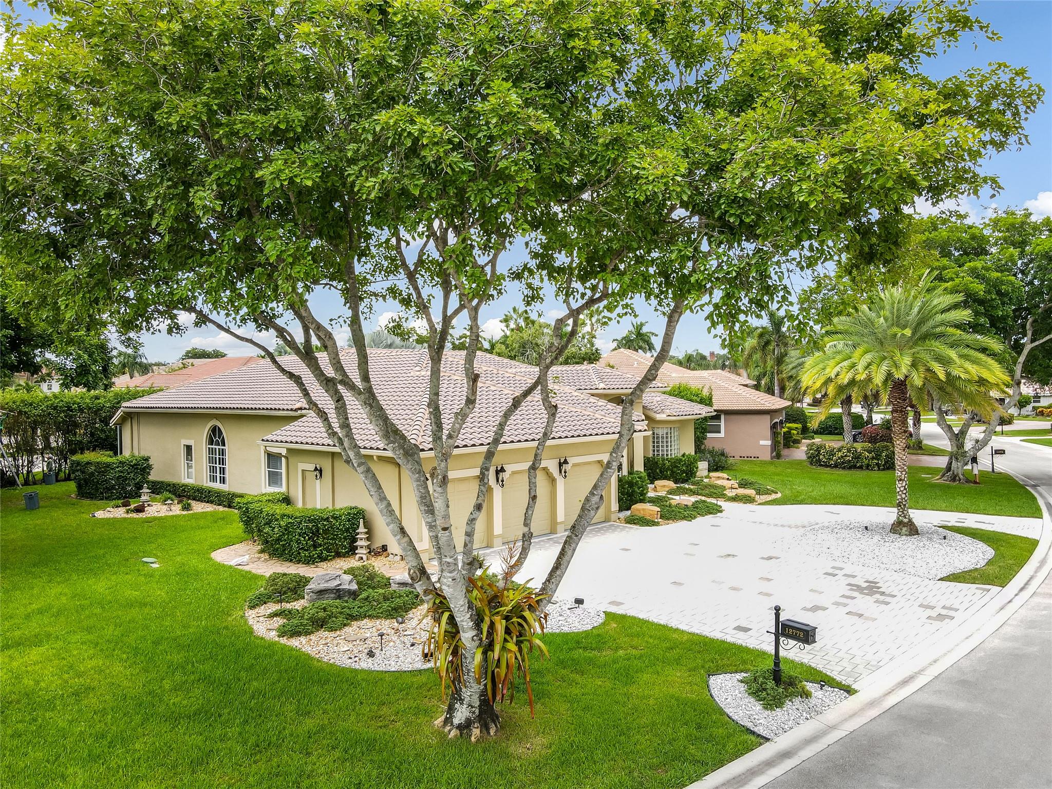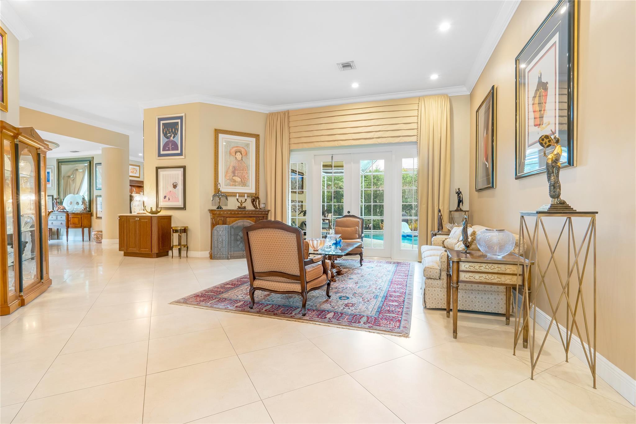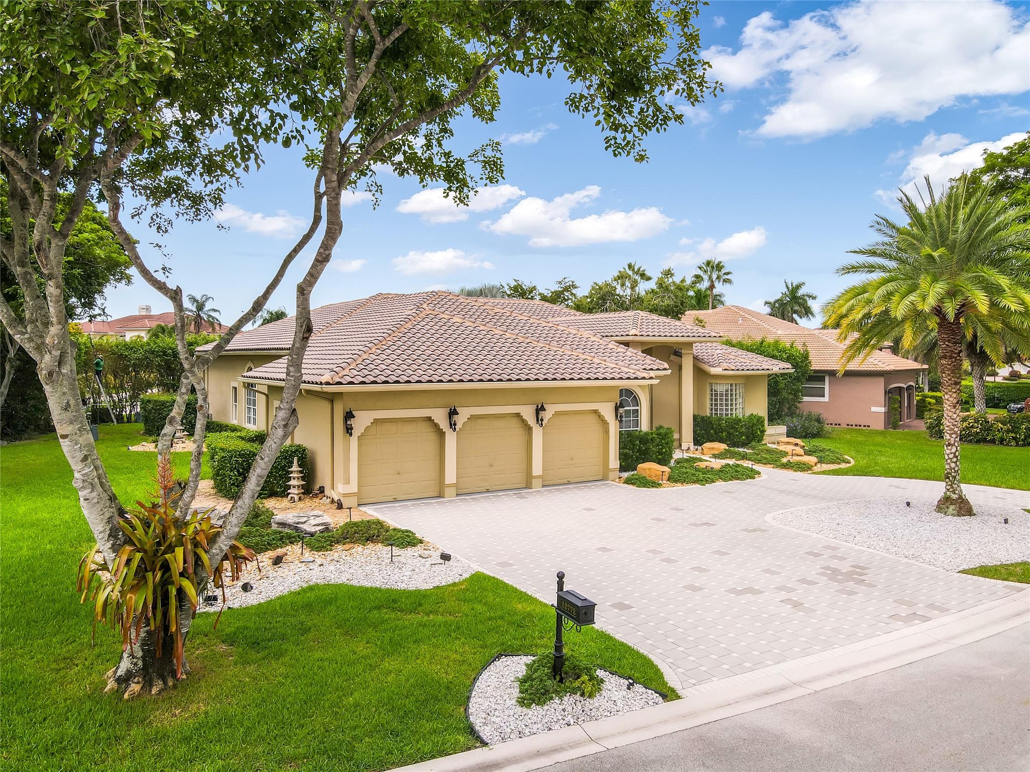 The minute you walk through the front door you will know that you have found your new home! Fabulous floor plan with Quality features throughout. 23 1/2 '' porcelain tile flooring, Chef's kitchen w/custom cabinetry, Faber ventilation system, Subzero refrigerator, GE Monogram appliances, Thermador glass cook top, Kitchen aid stand alone ice-maker. Master bath remodeled recently w/steam shower and teak collapsible benches. Hunter Douglas window treatments and Plantation Shutters throughout. Crown molding,6'' baseboards, Led high hat lighting . Oversized family room w/wet bar. Large screened pool/entertaining area with Travertine tile has cook area with sink and refrigerator. 22 kw full home generator w/ inground tank. Many more features await your discovery! Priced to sell , Don't wait !!!