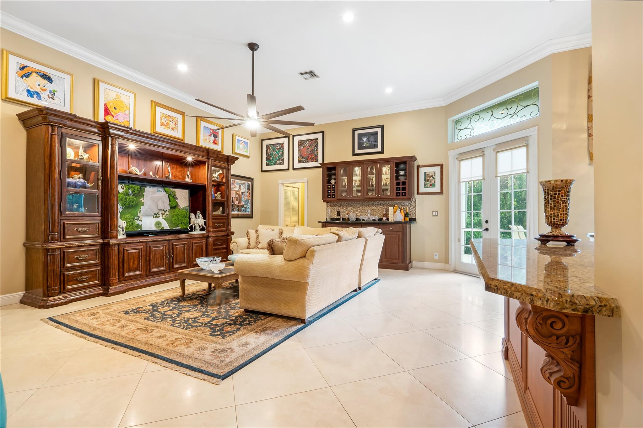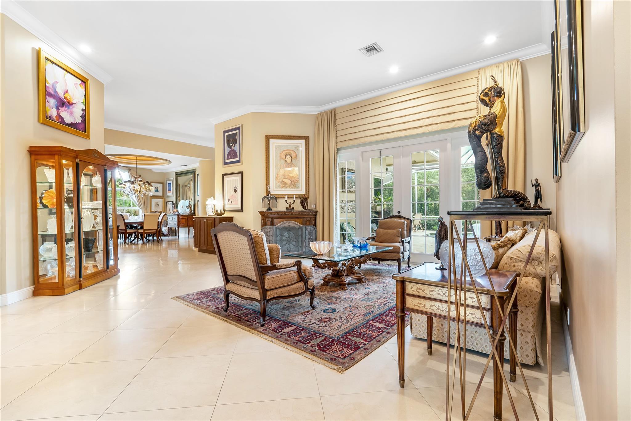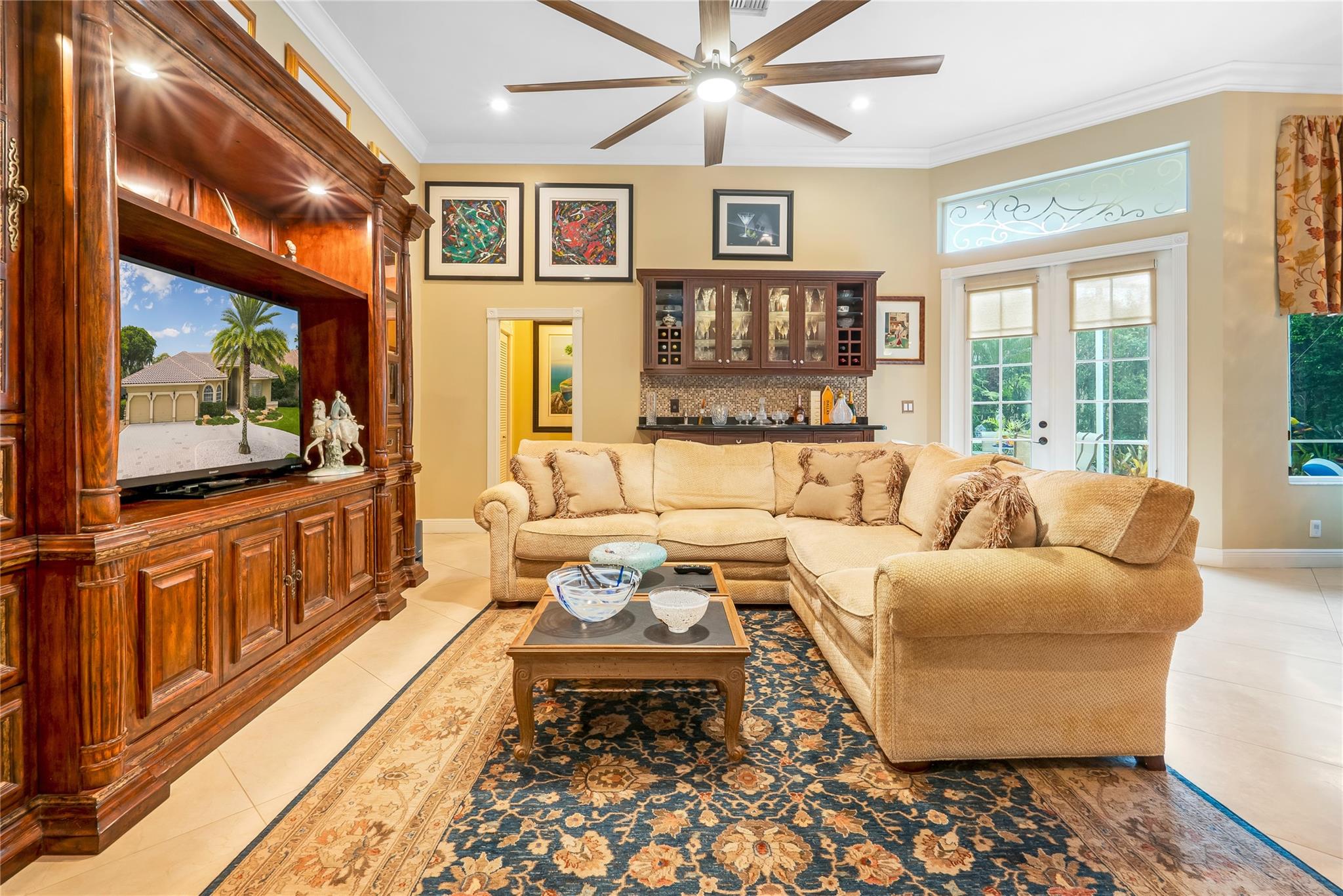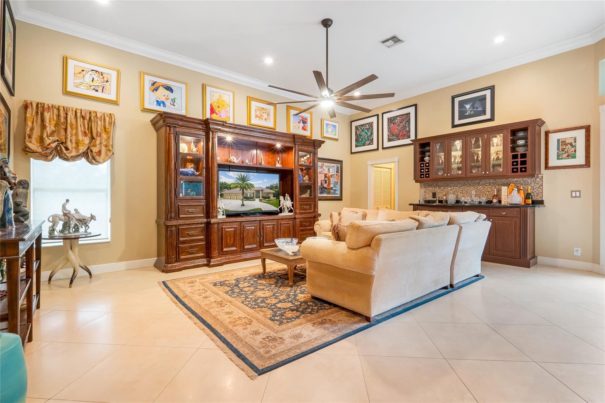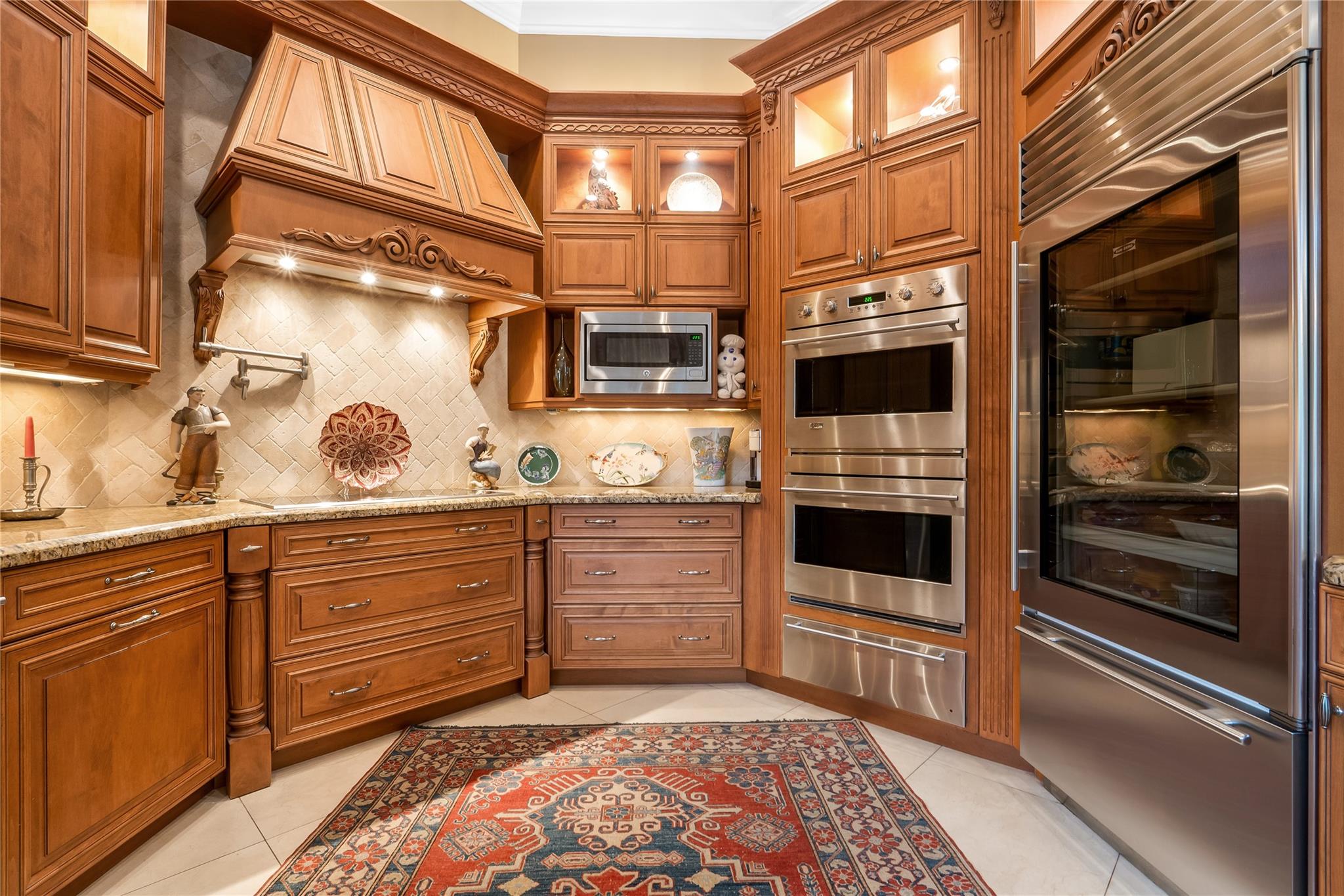 The minute you walk through the front door you will know that you have found your new home! Fabulous floor plan with Quality features throughout. 23 1/2 '' porcelain tile flooring, Chef's kitchen w/custom cabinetry, Faber ventilation system, Subzero refrigerator, GE Monogram appliances, Thermador glass cook top, Kitchen aid stand alone ice-maker. Master bath remodeled recently w/steam shower and teak collapsible benches. Hunter Douglas window treatments and Plantation Shutters throughout. Crown molding,6'' baseboards, Led high hat lighting . Oversized family room w/wet bar. Large screened pool/entertaining area with Travertine tile has cook area with sink and refrigerator. 22 kw full home generator w/ inground tank. Many more features await your discovery! Priced to sell , Don't wait !!!
