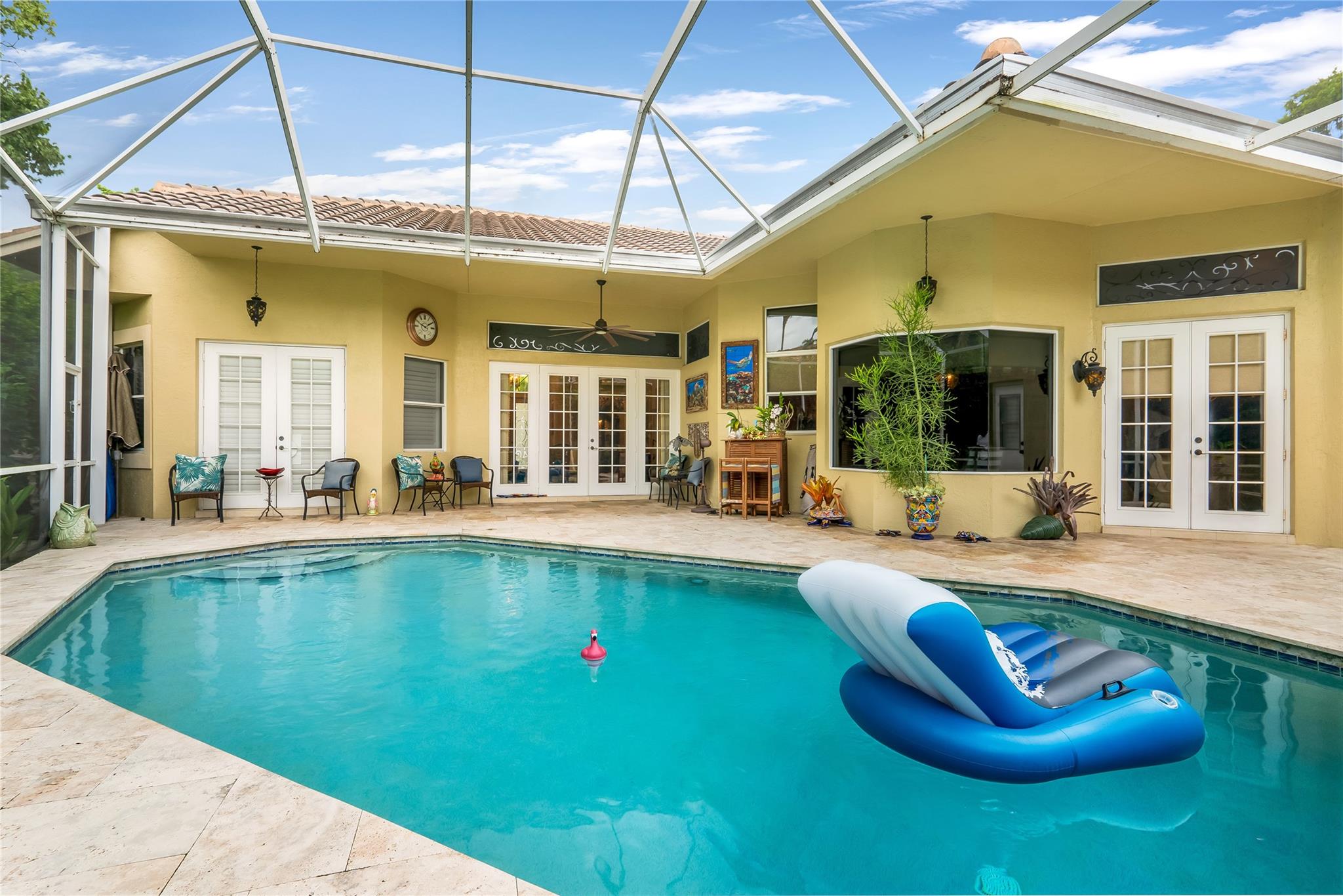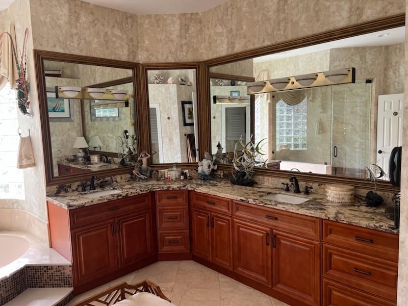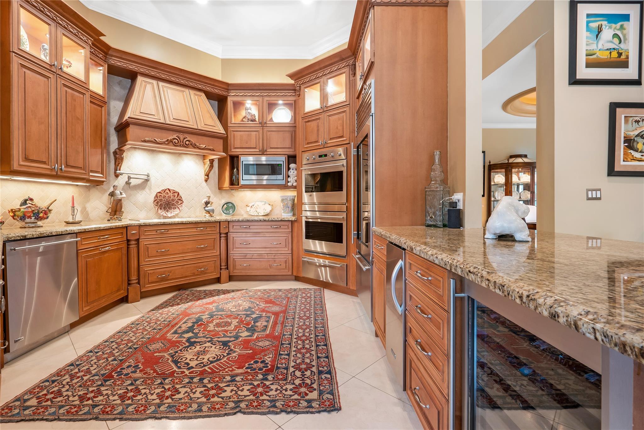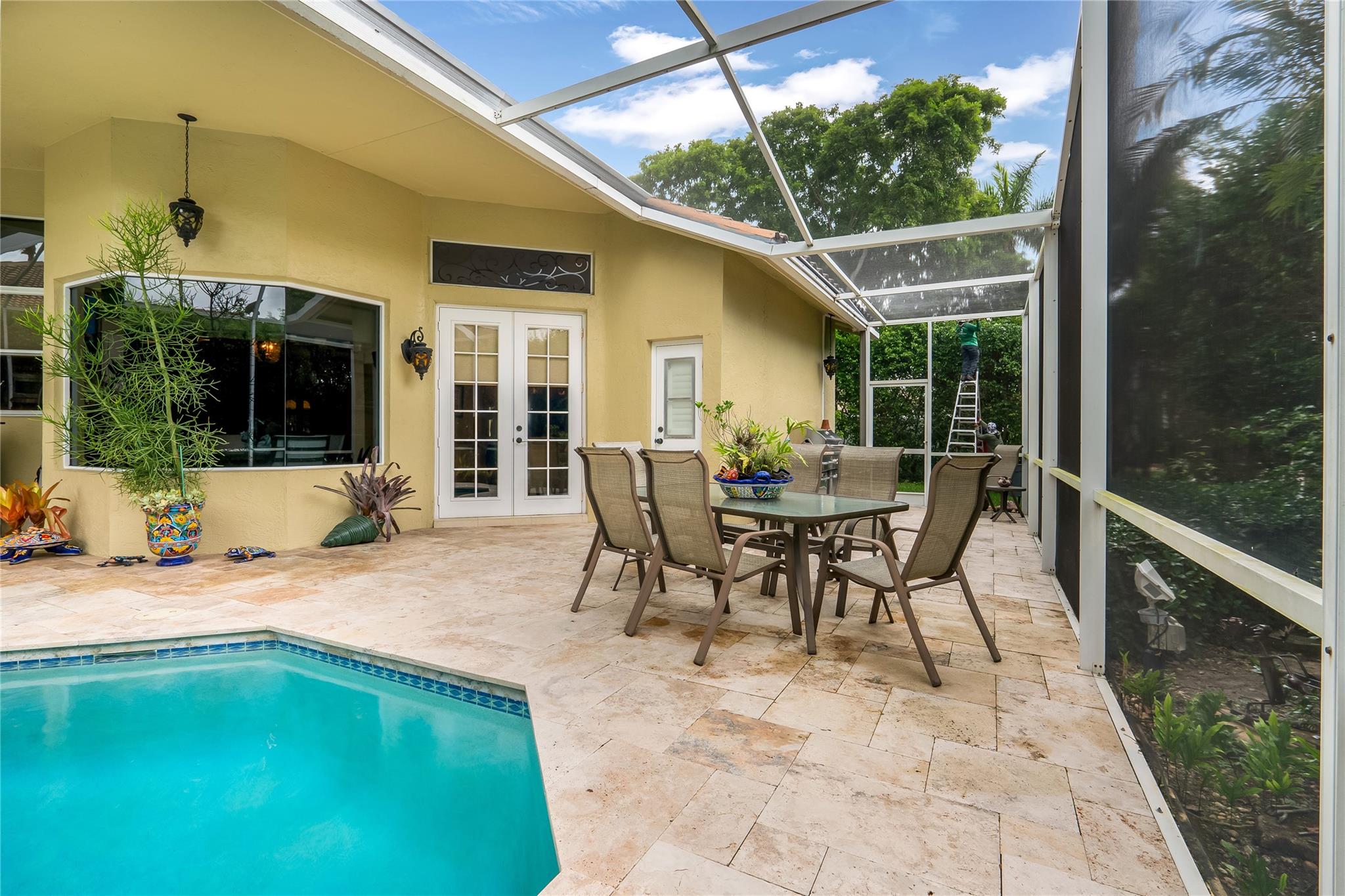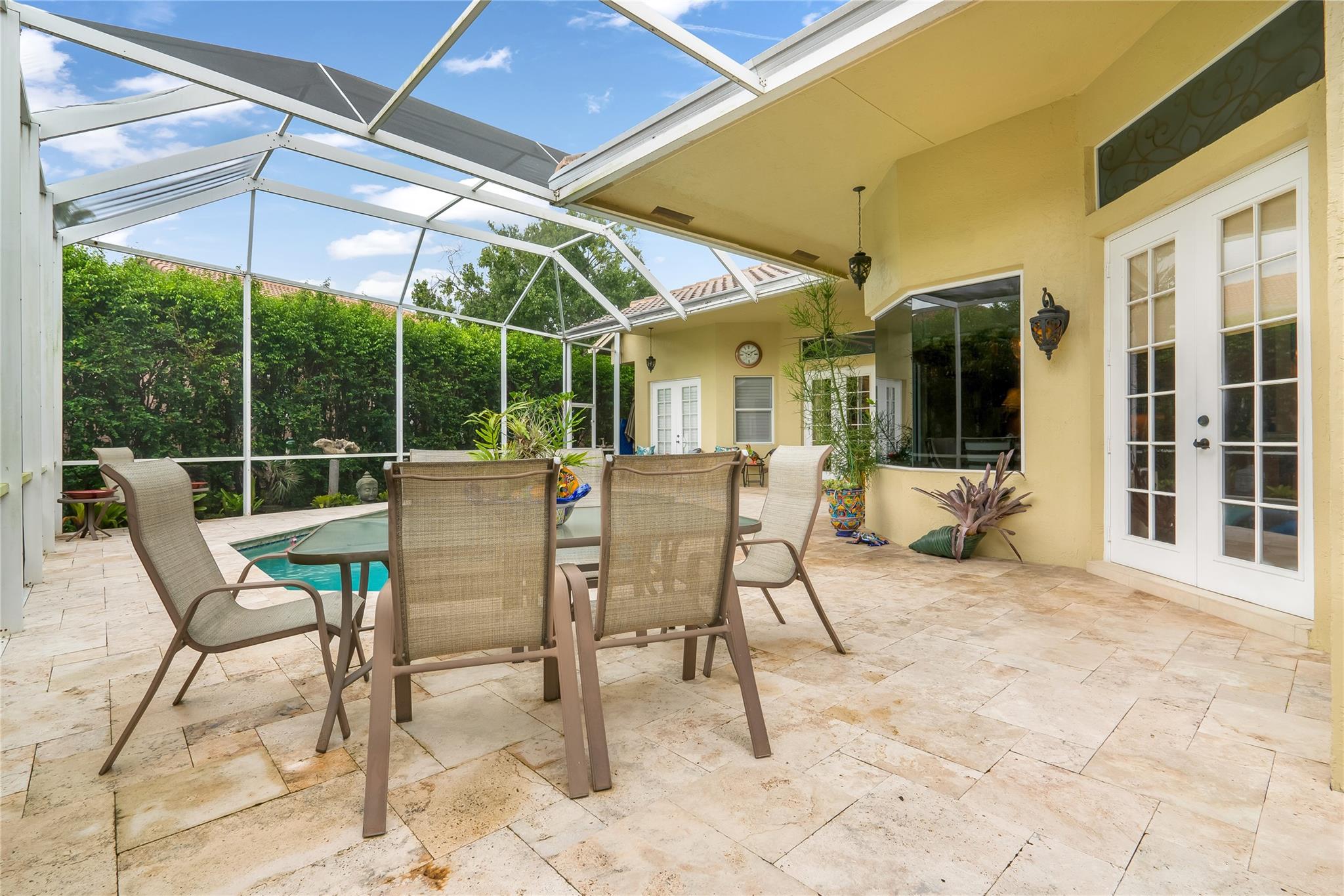 The minute you walk through the front door you will know that you have found your new home! Fabulous floor plan with Quality features throughout. 23 1/2 '' porcelain tile flooring, Chef's kitchen w/custom cabinetry, Faber ventilation system, Subzero refrigerator, GE Monogram appliances, Thermador glass cook top, Kitchen aid stand alone ice-maker. Master bath remodeled recently w/steam shower and teak collapsible benches. Hunter Douglas window treatments and Plantation Shutters throughout. Crown molding,6'' baseboards, Led high hat lighting . Oversized family room w/wet bar. Large screened pool/entertaining area with Travertine tile has cook area with sink and refrigerator. 22 kw full home generator w/ inground tank. Many more features await your discovery! Priced to sell , Don't wait !!!