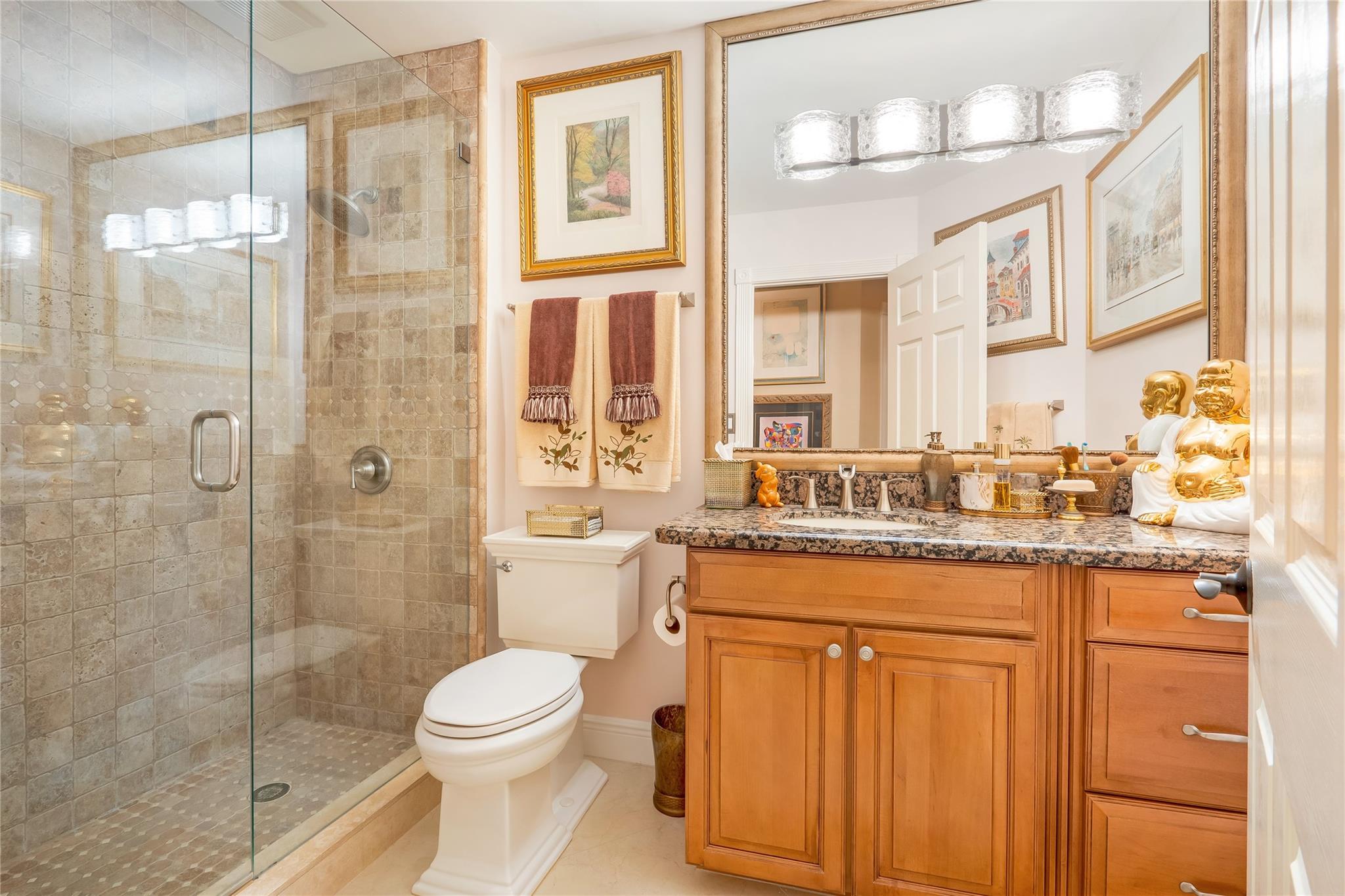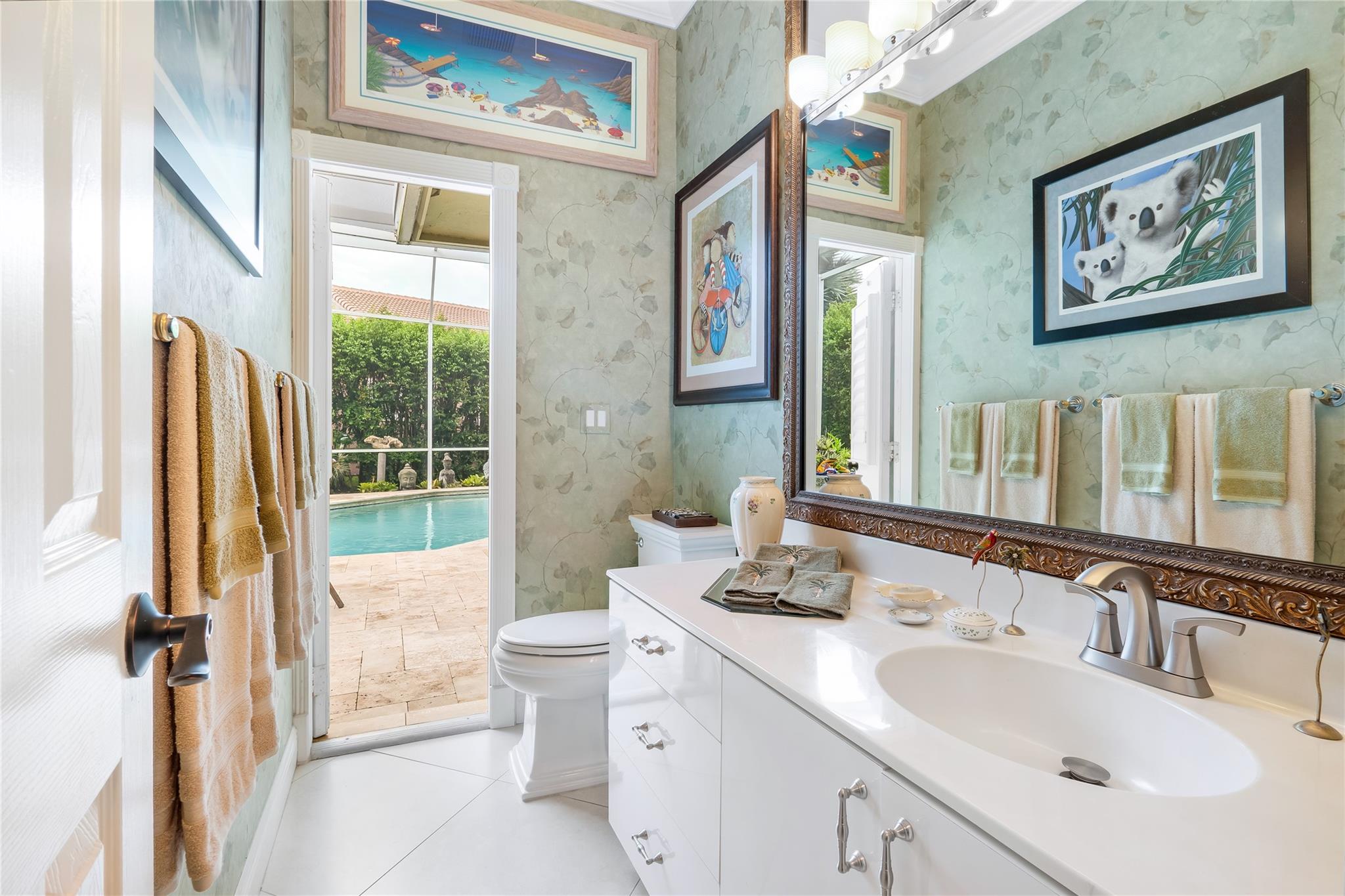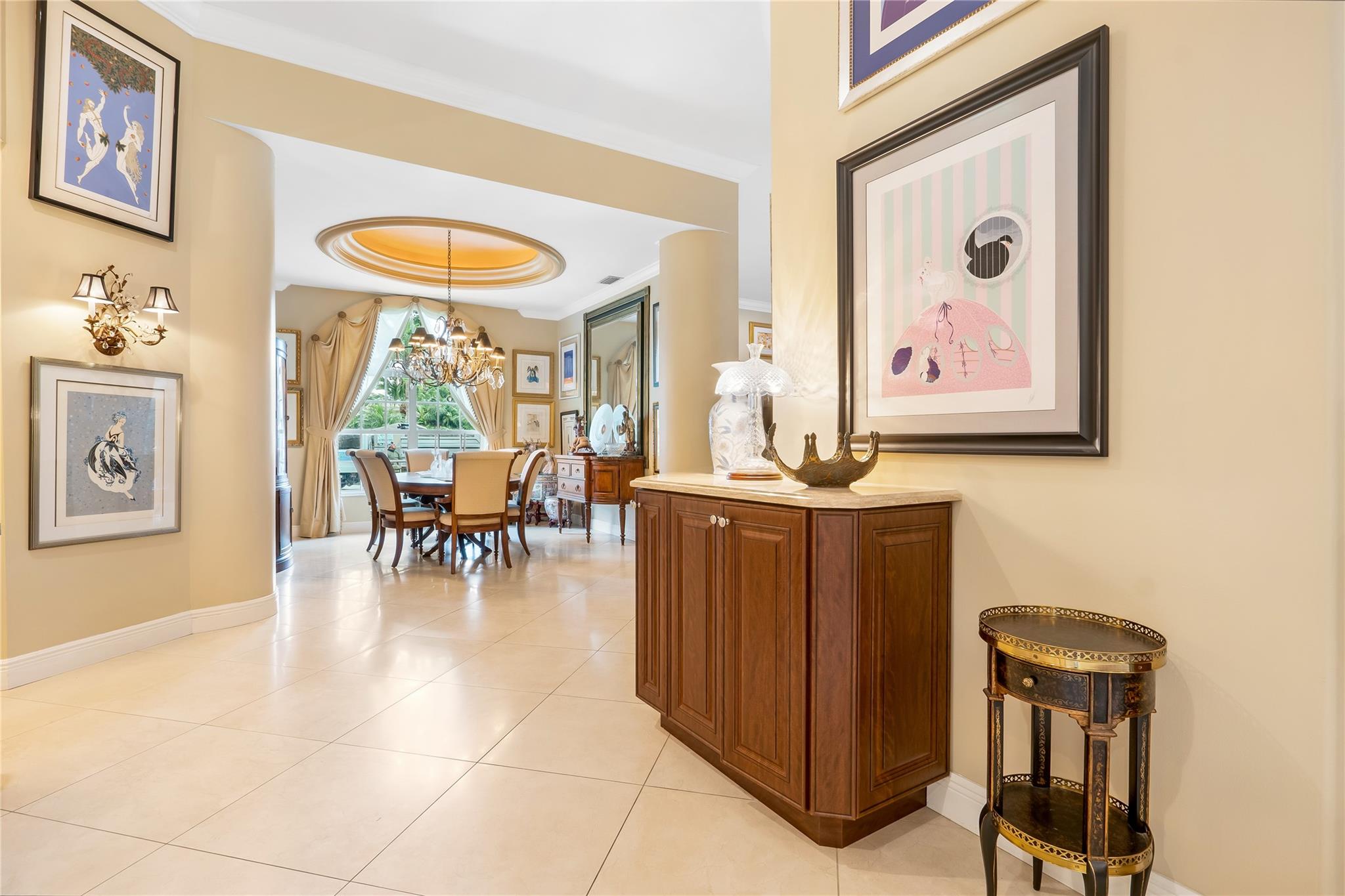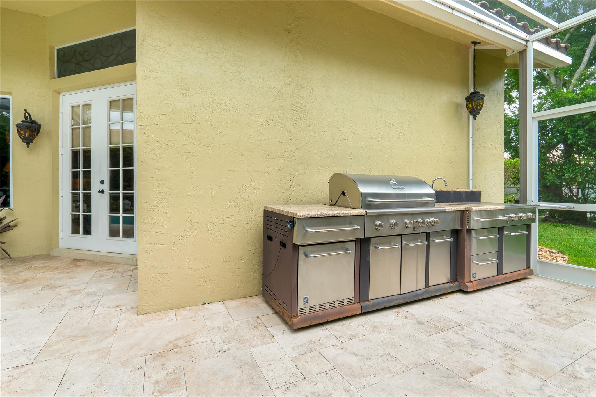 The minute you walk through the front door you will know that you have found your new home! Fabulous floor plan with Quality features throughout. 23 1/2 '' porcelain tile flooring, Chef's kitchen w/custom cabinetry, Faber ventilation system, Subzero refrigerator, GE Monogram appliances, Thermador glass cook top, Kitchen aid stand alone ice-maker. Master bath remodeled recently w/steam shower and teak collapsible benches. Hunter Douglas window treatments and Plantation Shutters throughout. Crown molding,6'' baseboards, Led high hat lighting . Oversized family room w/wet bar. Large screened pool/entertaining area with Travertine tile has cook area with sink and refrigerator. 22 kw full home generator w/ inground tank. Many more features await your discovery! Priced to sell , Don't wait !!!
