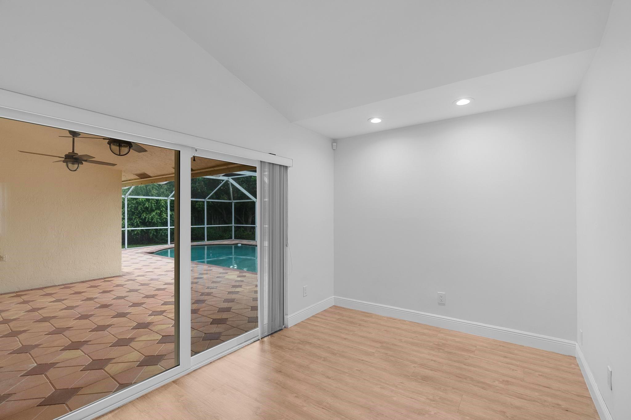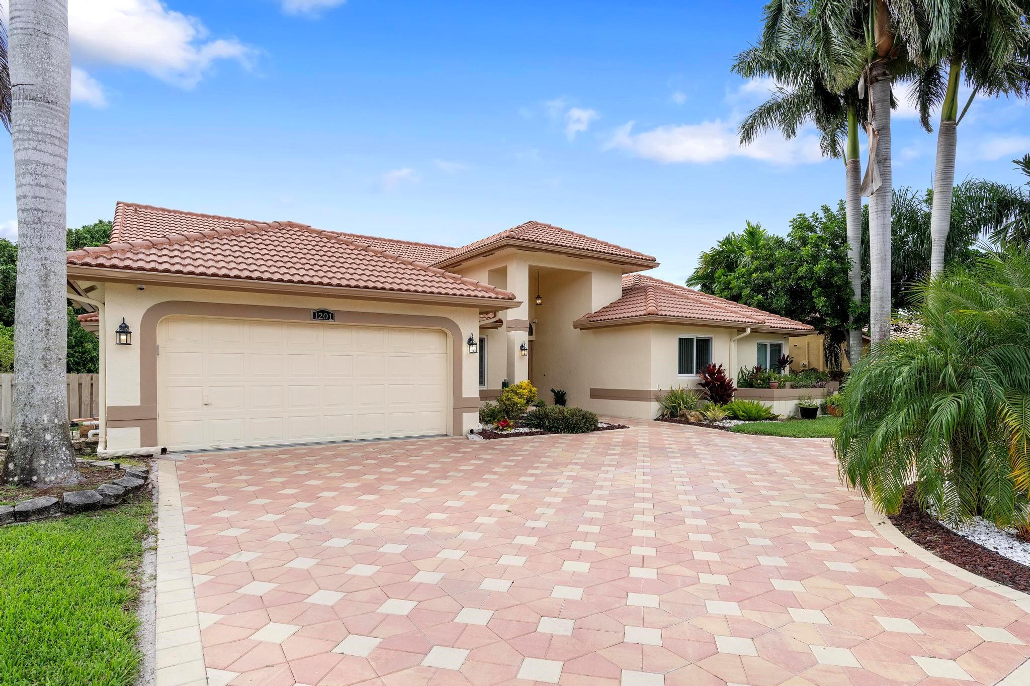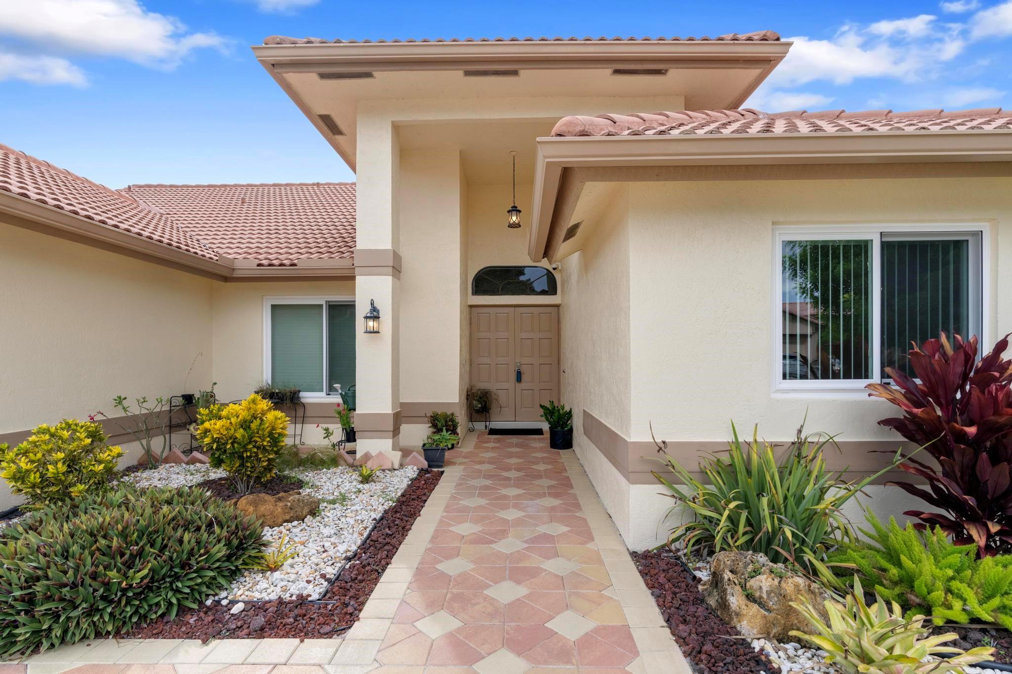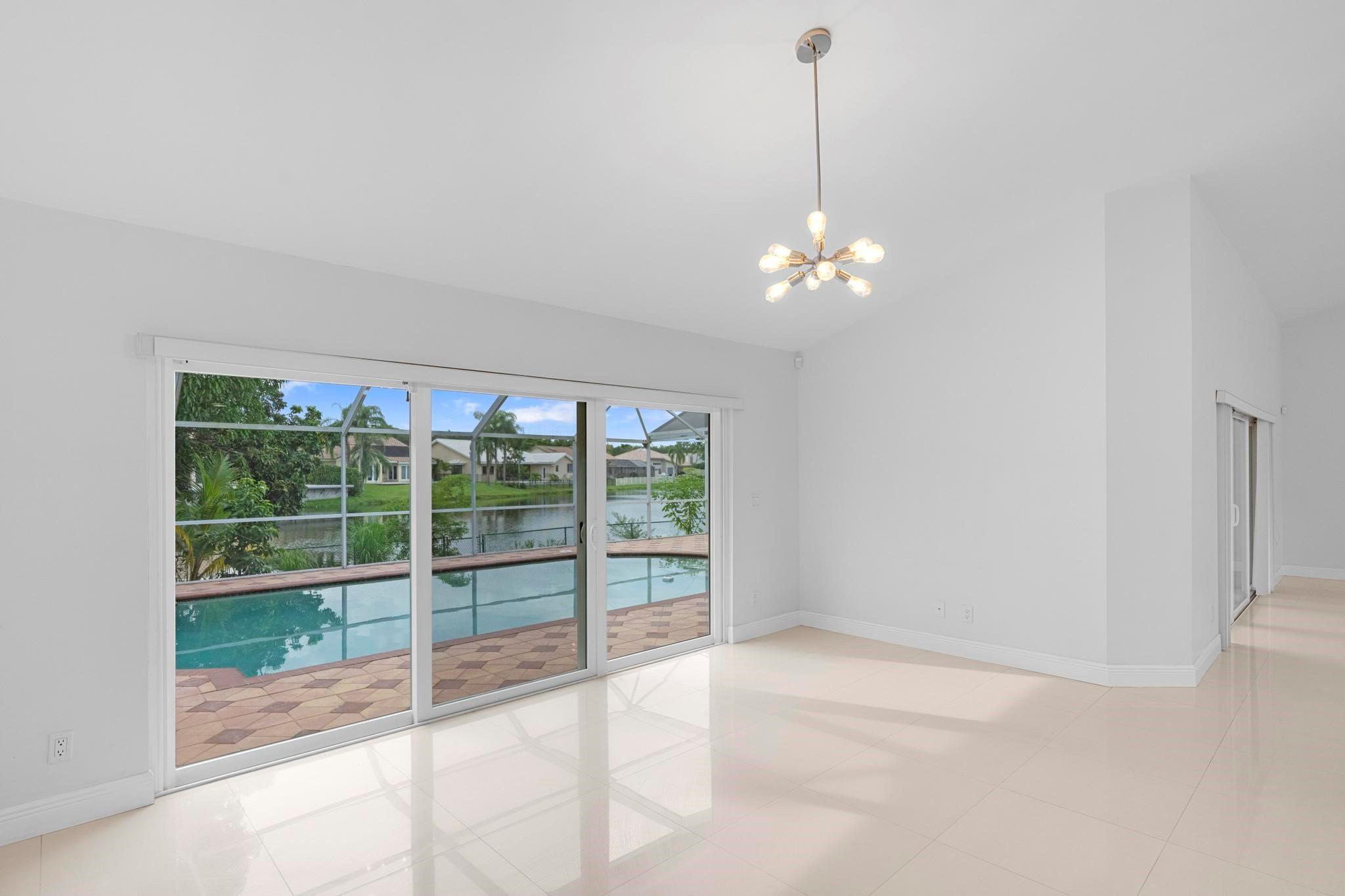This exquisite single-story corner estate home offers luxurious living with its 4 bedrooms and 2.5 bathrooms spread over 3,028 square feet. Enjoy stunning lake views and the convenience of new hurricane impact windows. The recently renovated bathroom features high-end finishes, while the layout includes a wet bar, perfect for entertaining. Relax in the heated Jacuzzi with massage jets or unwind in the large screened-in pool, providing a private oasis for leisure. Additional features include dimmable LED recessed lighting, security cameras for peace of mind, and a newly installed paved driveway leading to a spacious 2-car garage. Located near Central Park with easy access to major roads and shopping malls, the home also boasts a solar panel system that can be transferred.