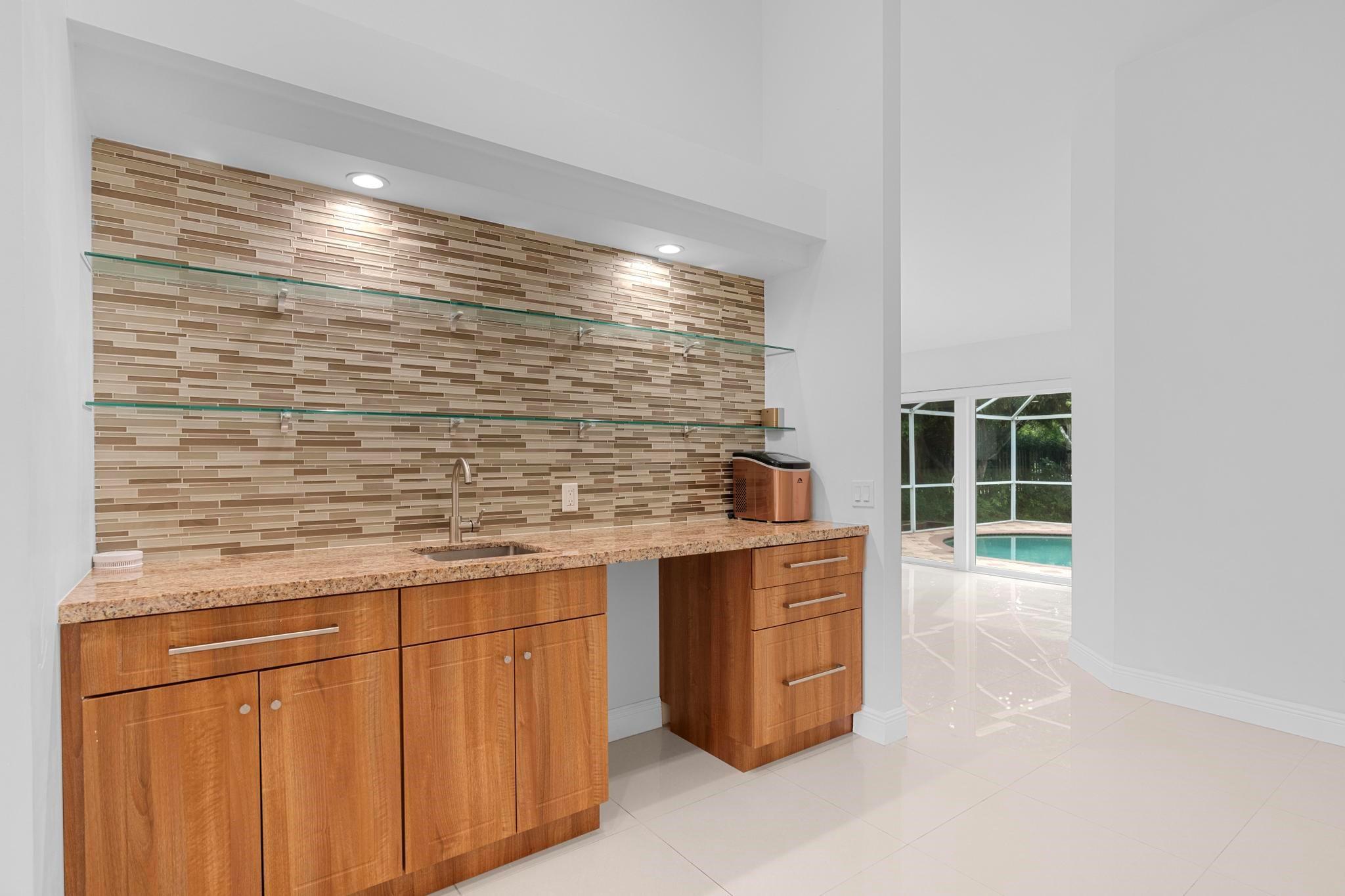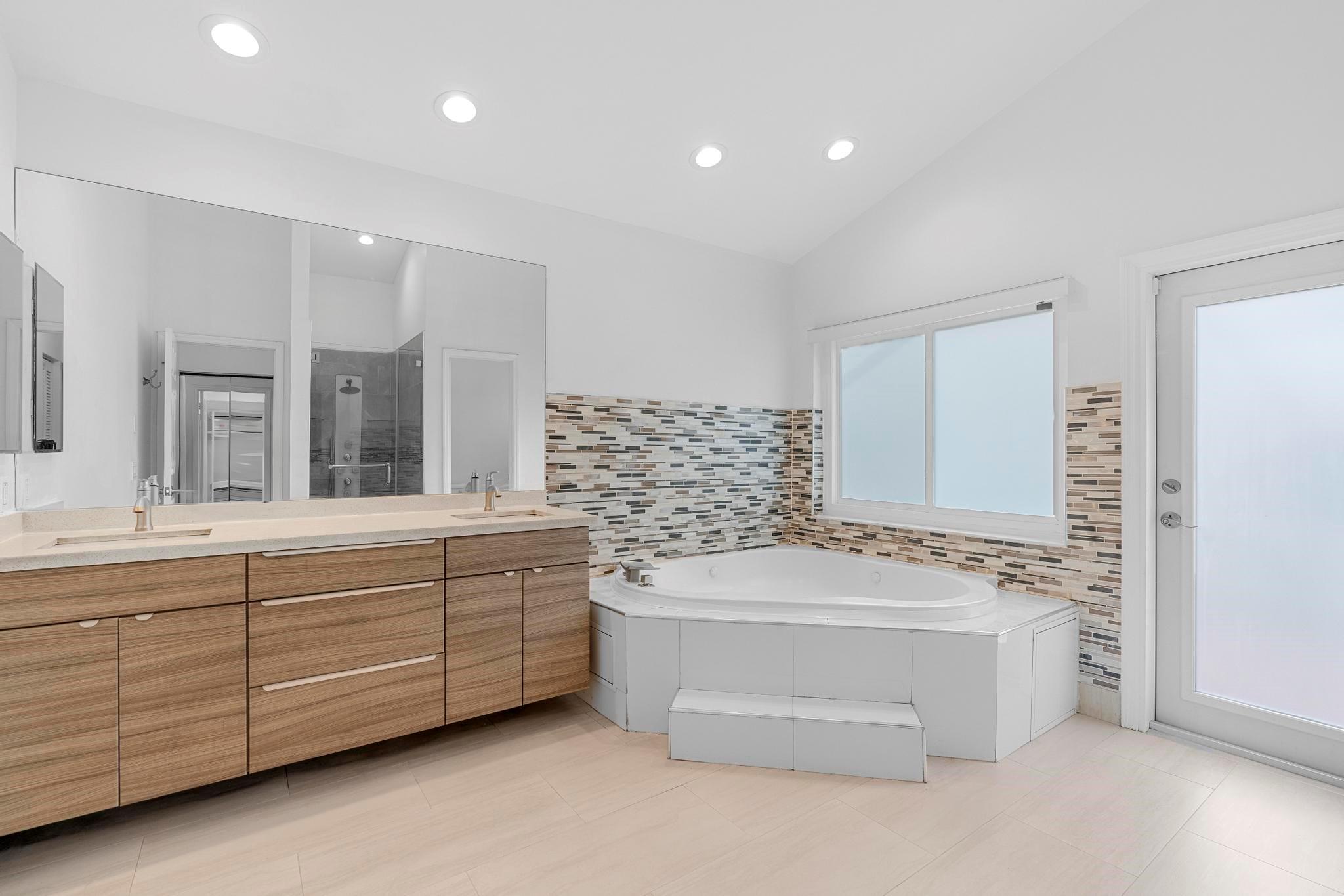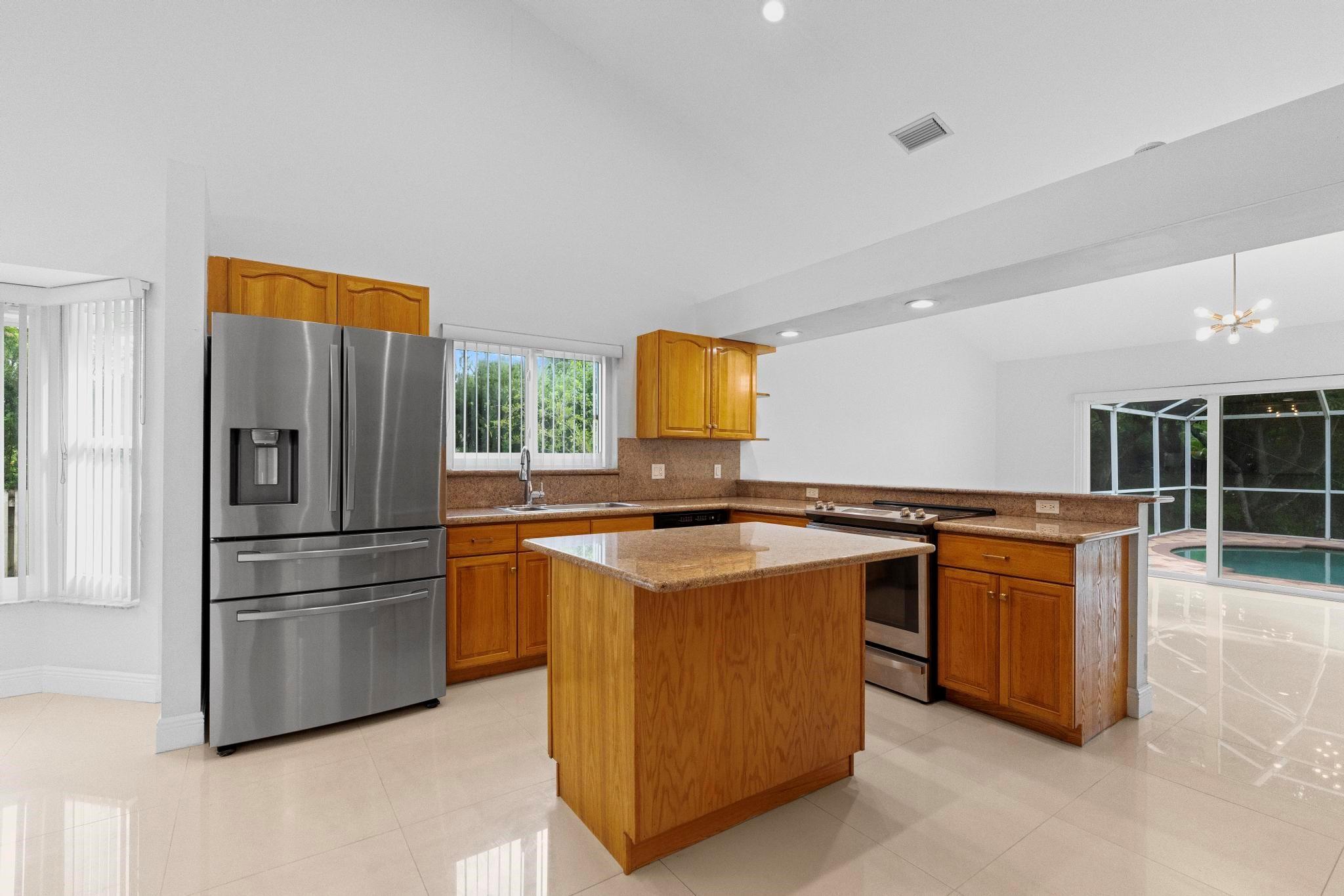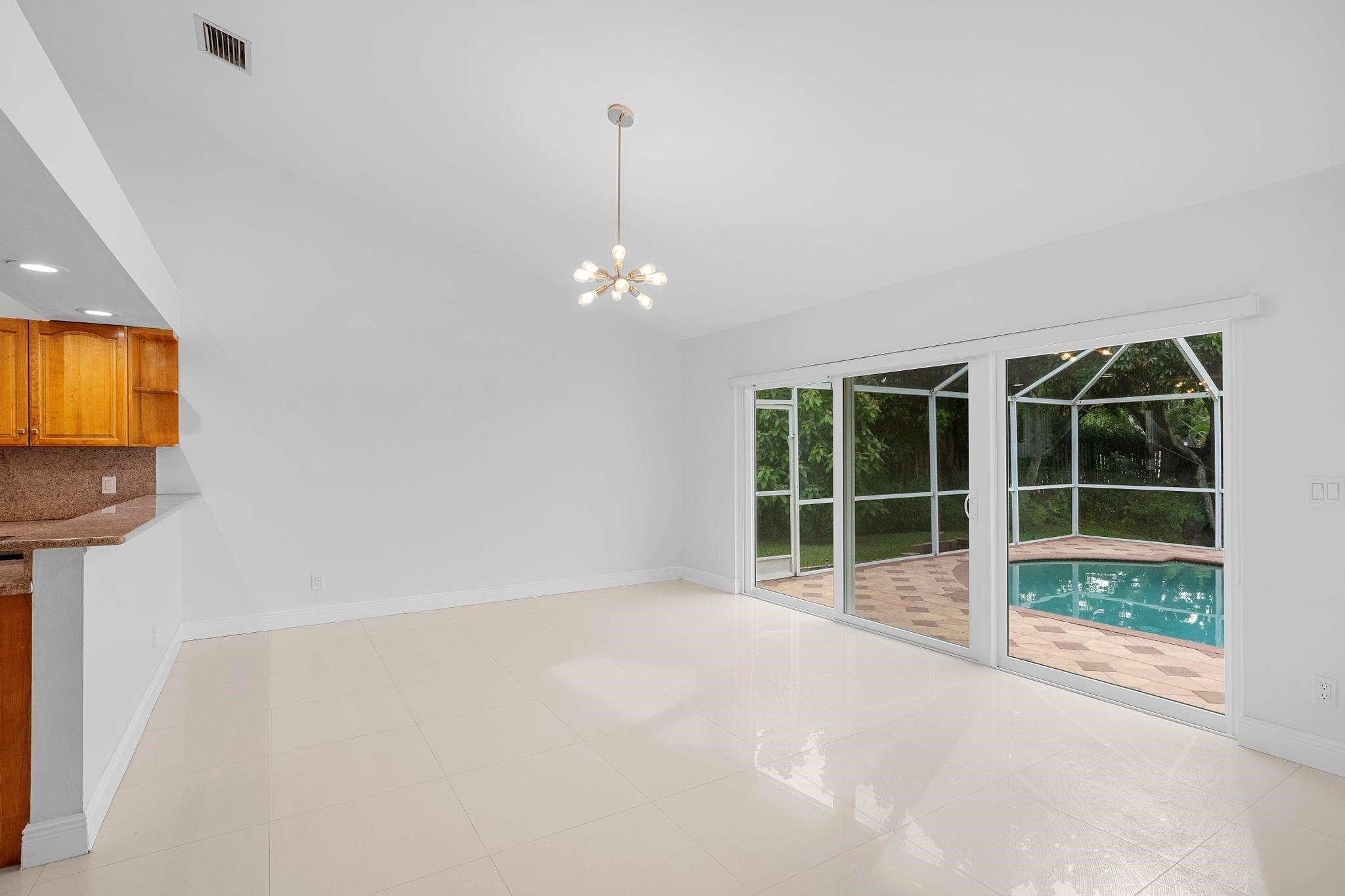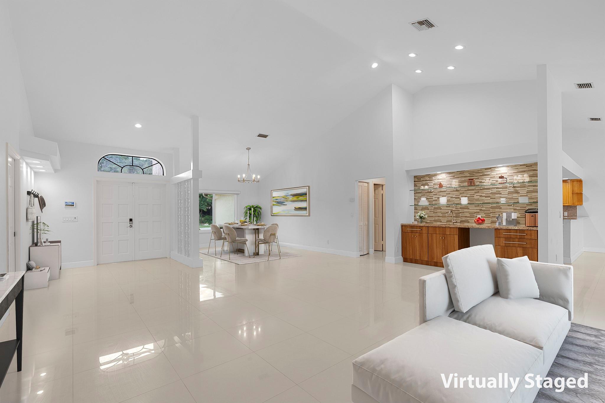 This exquisite single-story corner estate home offers luxurious living with its 4 bedrooms and 2.5 bathrooms spread over 3,028 square feet. Enjoy stunning lake views and the convenience of new hurricane impact windows. The recently renovated bathroom features high-end finishes, while the layout includes a wet bar, perfect for entertaining. Relax in the heated Jacuzzi with massage jets or unwind in the large screened-in pool, providing a private oasis for leisure. Additional features include dimmable LED recessed lighting, security cameras for peace of mind, and a newly installed paved driveway leading to a spacious 2-car garage. Located near Central Park with easy access to major roads and shopping malls, the home also boasts a solar panel system that can be transferred.