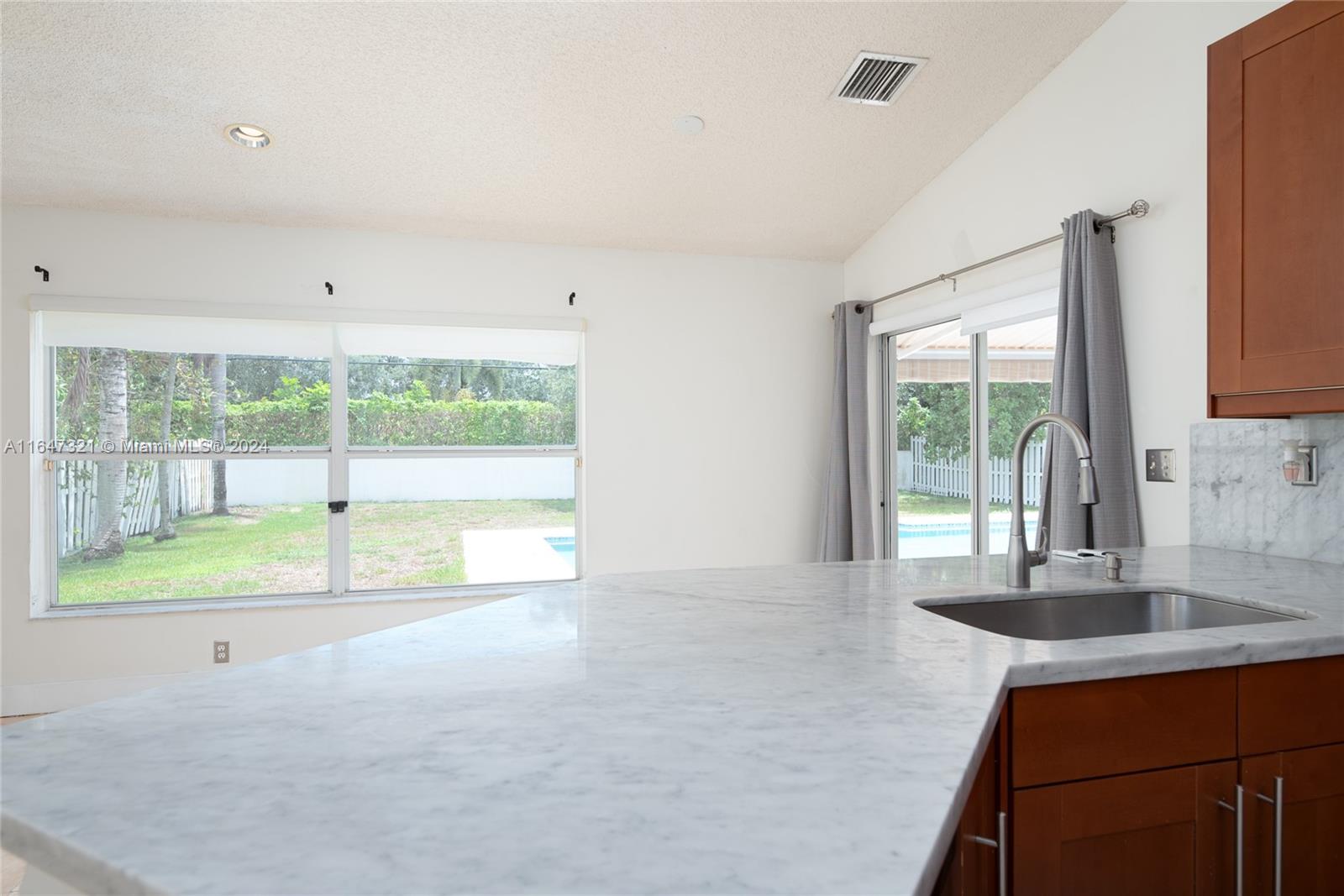 This stunning 3-bedroom, 2-bathroom home provides spacious living areas with soaring high ceilings, creating an open and airy feel. The remodeled kitchen and bathrooms add modern elegance, while the fantastic large backyard, complete with a beautiful pool, offers an ideal space for relaxation and entertainment. Nestled in a quiet, fully established neighborhood, this home is the epitome of comfort and sophistication. Whether you're looking for a family home or a tranquil retreat, this property has it all. Don’t miss your chance to own this spectacular home—it’s an opportunity you won’t want to pass up!