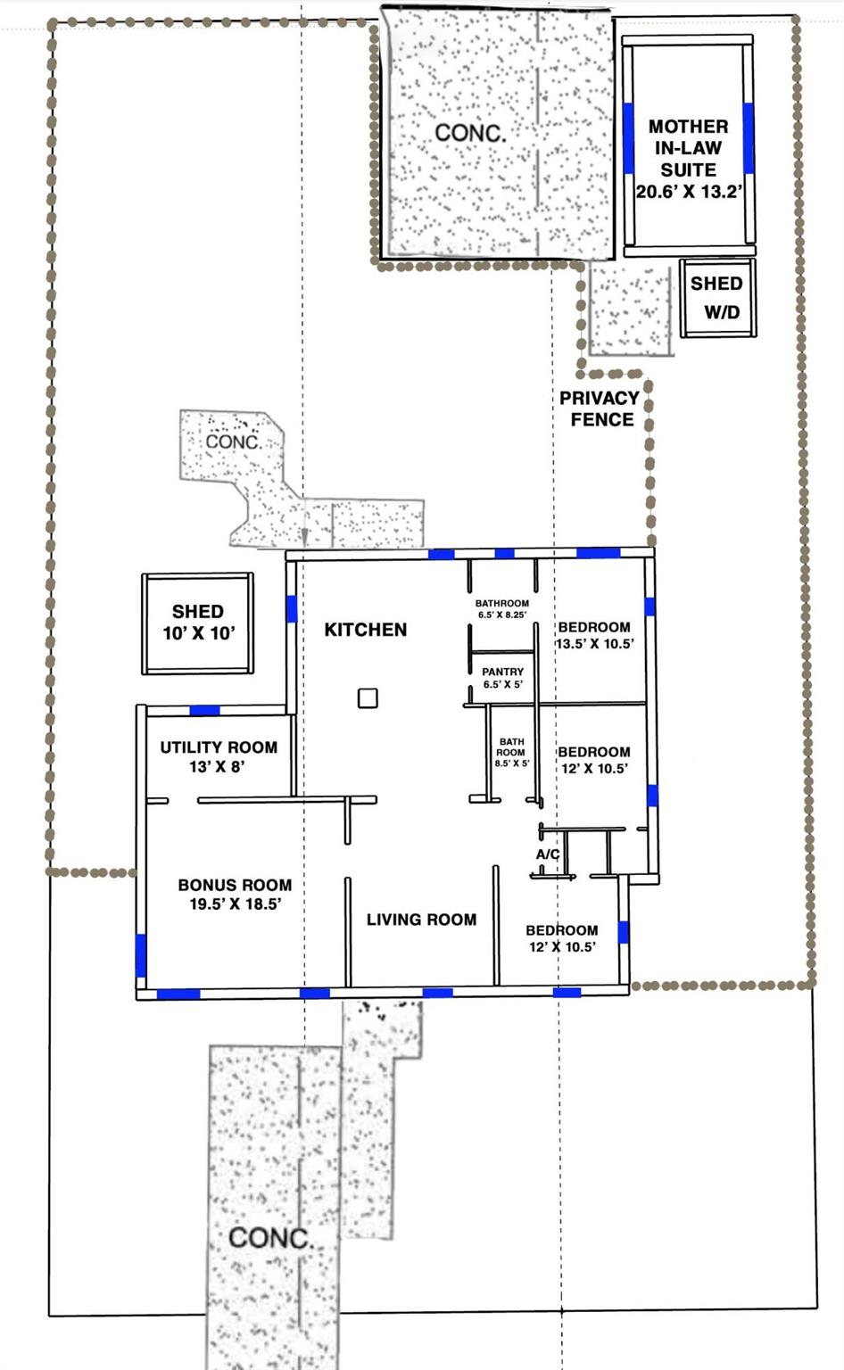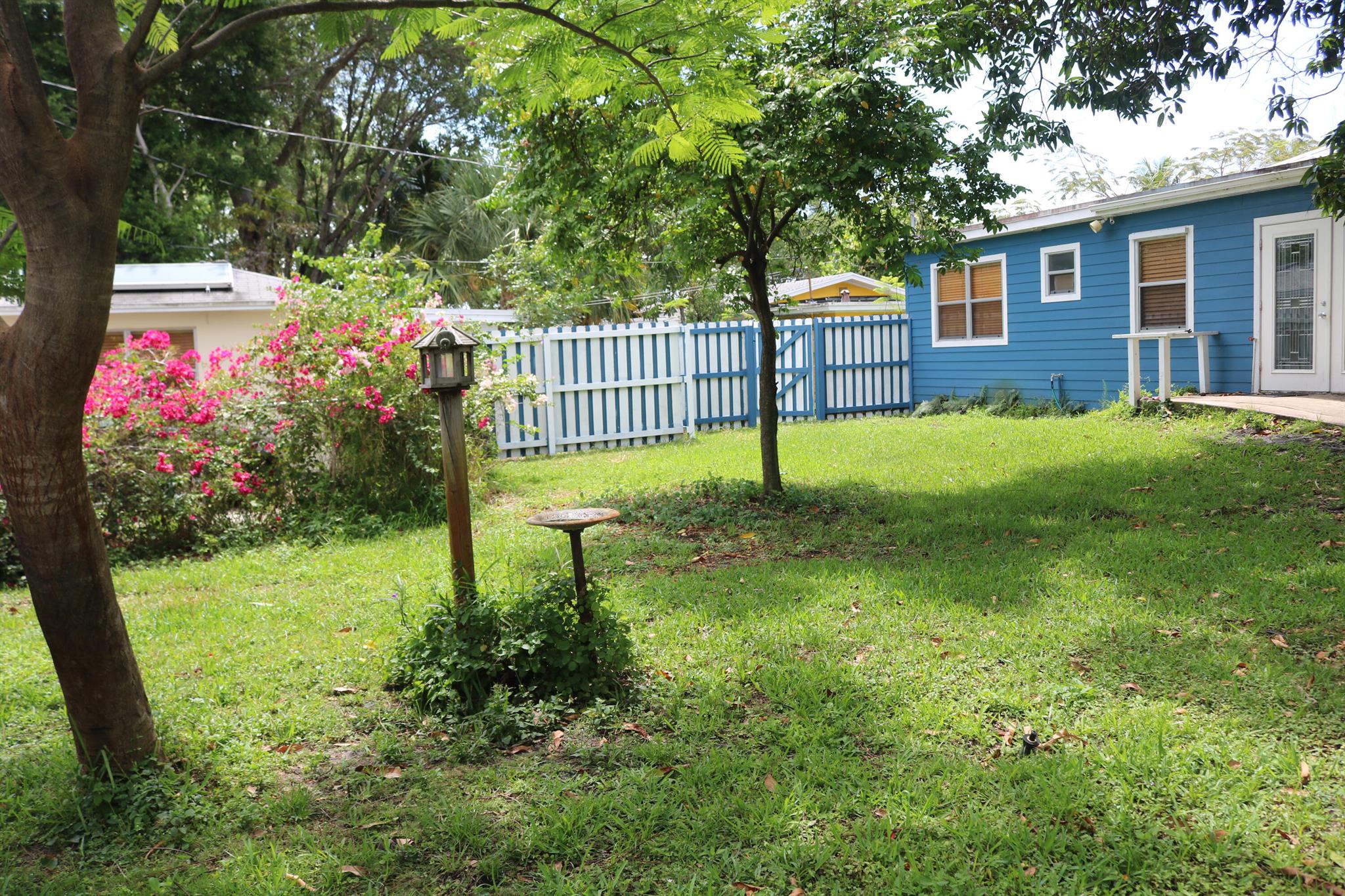 This adorable 3 bed/2 bath home with a huge convertible extra room and 1/1 mother-in-law suite is conveniently located and ADA-compliant. The oak hardwood floors, spacious rooms and private, fully-fenced yard with gorgeous trees and bougainvilleas (SO beautiful when in bloom!) make the property wonderfully appealing but the bonuses put it over the top as a potential home/investment. The separate 1 bed/1 bath suite is a detached efficiency and being rented out separately. It includes its own electric washer/dryer, but the appliances in the house use gas. 3 sheds included. Central A/C unit was replaced in 2023. Metal roof, tie-Downs and tankless heater. Impact rated windows on all but 2 windows, but those shutters are provided. Main house tenants had a lease @$3350 and recently vacated