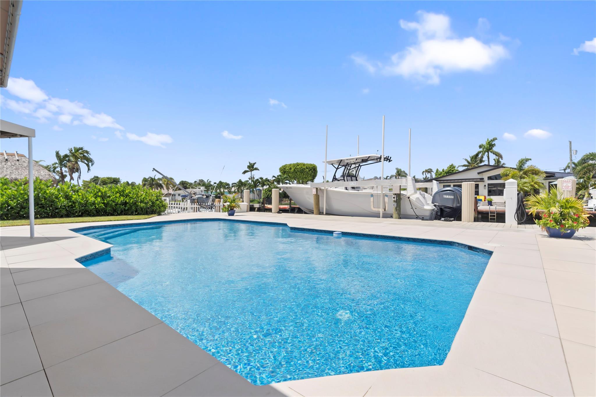 Experience the ultimate luxury waterfront lifestyle! FULLY upgraded home with 70' waterfront. Step into an open floorplan bathed in natural light that showcases custom finishes and stunning 48x48 Italian tile. The gourmet kitchen features quartzite countertops and high-end cabinetry, perfect for culinary enthusiasts. New baths, lighting, and walk-in closets. Additional upgrades include new electrical panel, ductwork, and impact windows and doors, roof 2020. The backyard oasis boasts a resurfaced pool, new skimmer, new pool deck, ideal for entertaining or relaxing. Seawall completed in 2024 with raised cap and batter piles meets new code. New WearDeck composite dock and 16,000 lb boat lift provide easy access to boating, jetskiing, paddleboarding, and more right from your private dock!