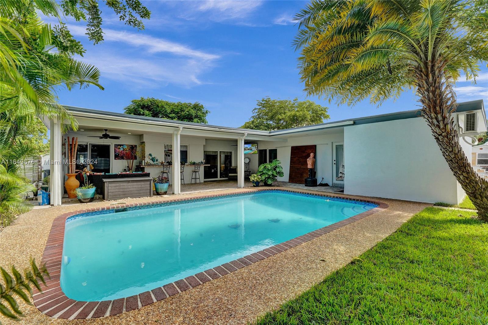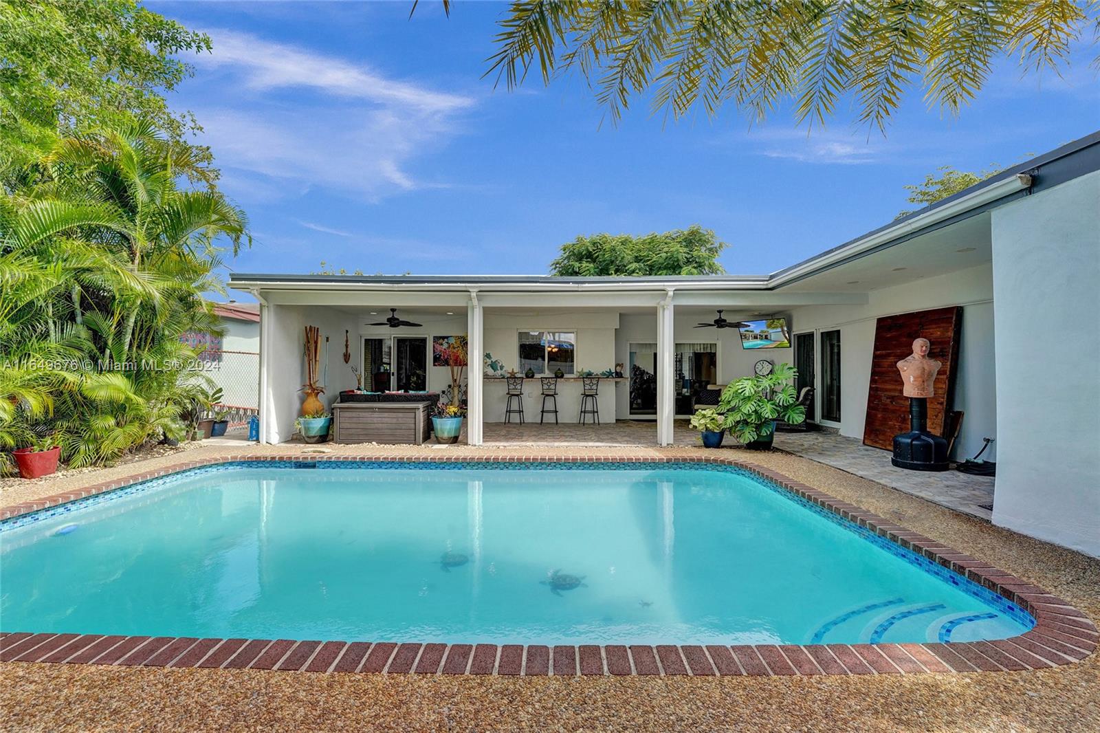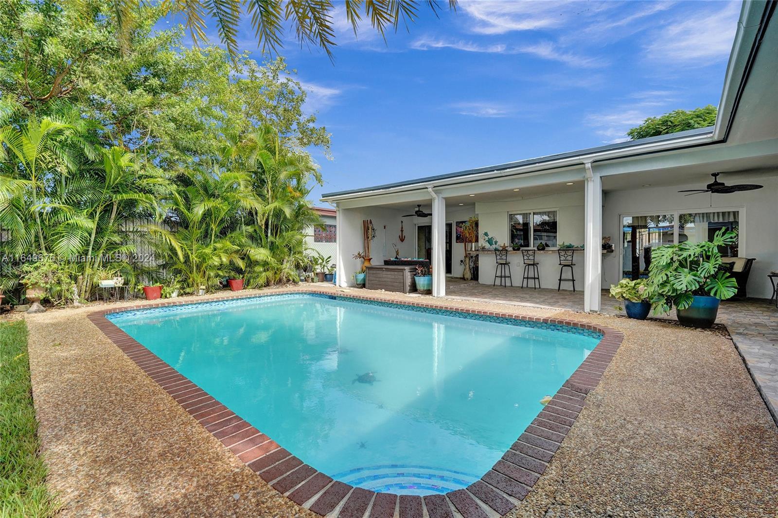 Welcome to this beautifully updated pool home in Miramar! Boasting 1,516 sq.ft. of living area and 2,804 sq.ft. total area, 4 bedrooms, 2 bathrooms, and an In-Law Suite (Total 5 beds + 3 baths)! The garage has been converted to a 4th bedroom. This gem features a 4 year old roof, impact windows and doors, and NEW appliances. Inside, enjoy the large kitchen, recently renovated bathrooms, new interior doors, and new baseboards. The A/C is 7 years old (serviced in August 2024), Outside, the home has fresh paint, the pool has a new diamond-bright finish, a huge covered terrace with LED lights and 2 fans, and a bar window. No HOA!