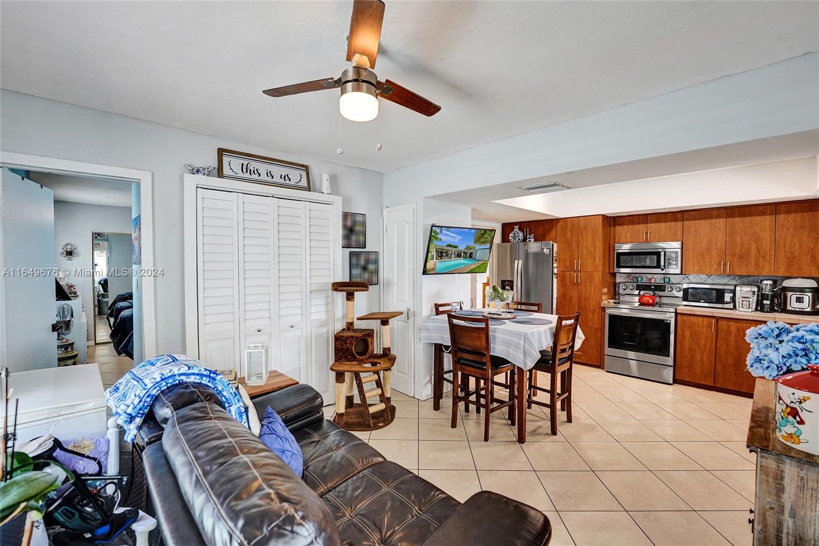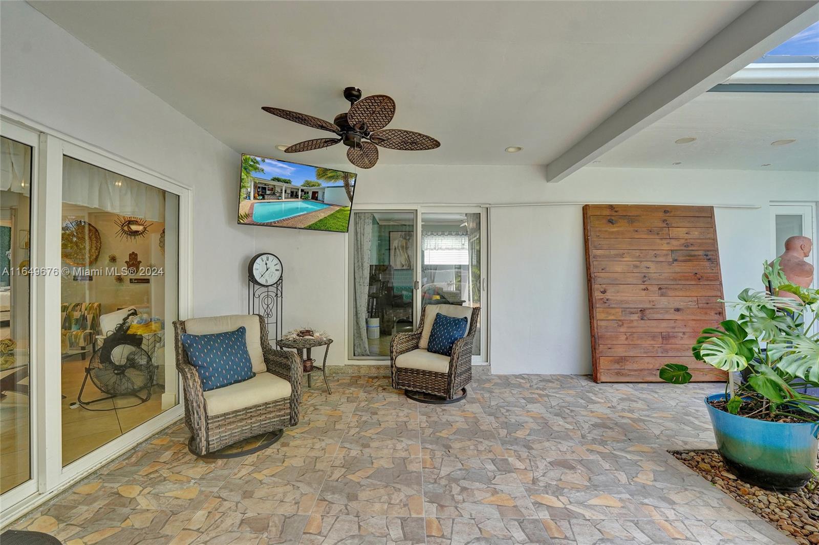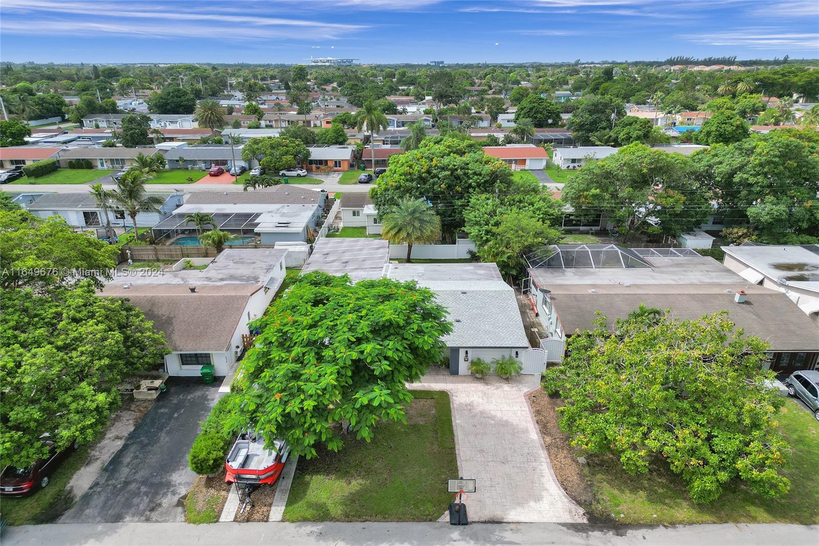 Welcome to this beautifully updated pool home in Miramar! Boasting 1,516 sq.ft. of living area and 2,804 sq.ft. total area, 4 bedrooms, 2 bathrooms, and an In-Law Suite (Total 5 beds + 3 baths)! The garage has been converted to a 4th bedroom. This gem features a 4 year old roof, impact windows and doors, and NEW appliances. Inside, enjoy the large kitchen, recently renovated bathrooms, new interior doors, and new baseboards. The A/C is 7 years old (serviced in August 2024), Outside, the home has fresh paint, the pool has a new diamond-bright finish, a huge covered terrace with LED lights and 2 fans, and a bar window. No HOA!