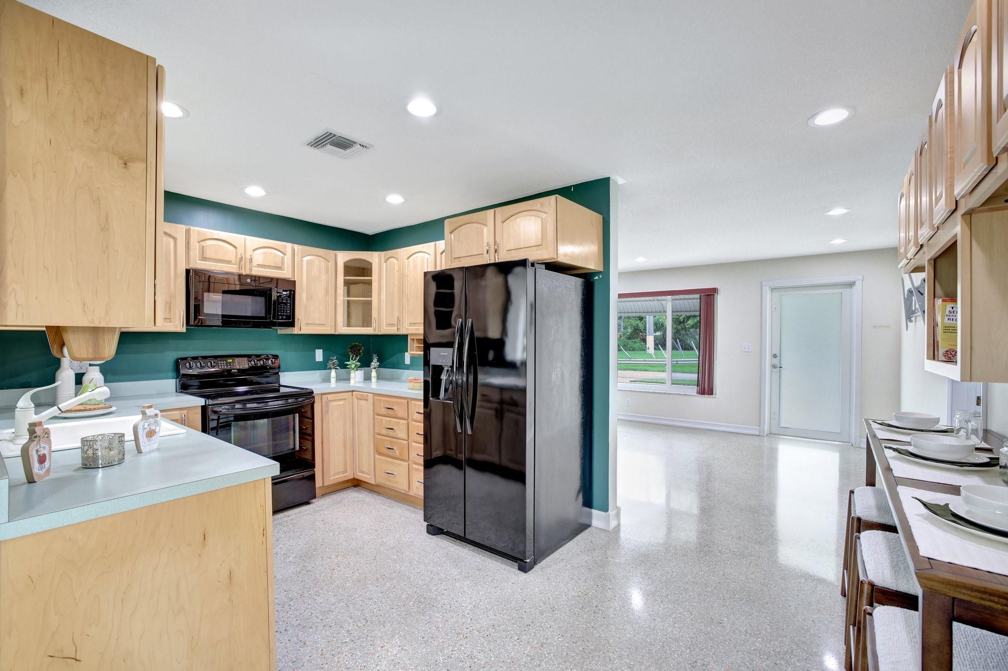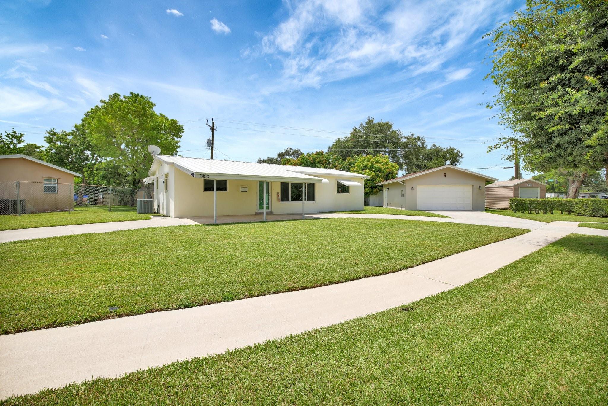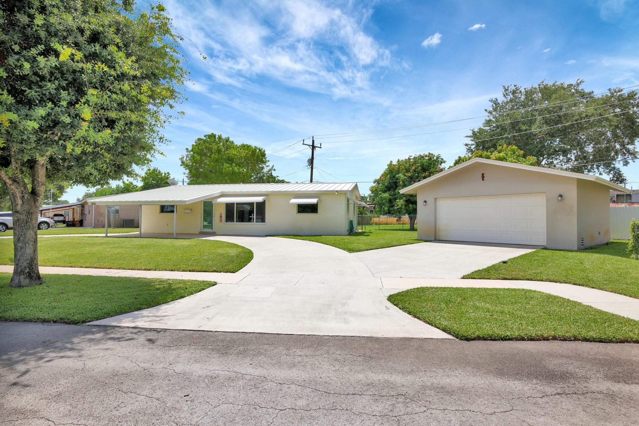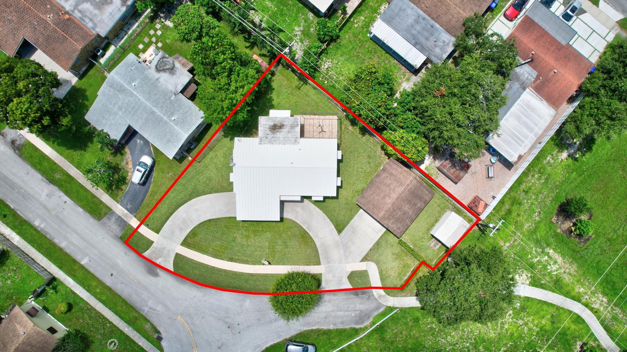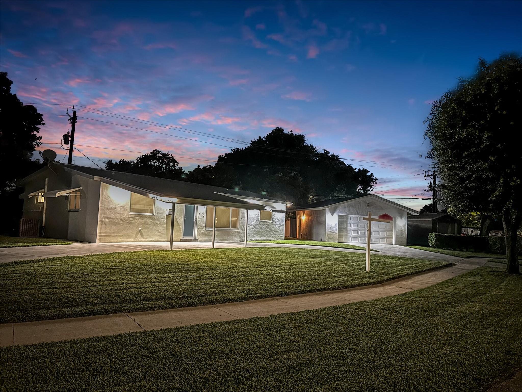 Honey STOP the car! THIS is IT! 3/2 oversized 9083 sf corner lot with IMPACT windows/doors, 2018 METAL roof, det. 2-car garage w/ 2018 shingle roof & hurricane door + 10x14 shed, brick paver patio, 2022 a/c, tankless hot water heater, gorgeous 2022 completely re-done primary bath to knock your socks off, and updated all-wood kitchen, brand new frig., 2000+ sf circular concrete driveway provides parking for 8, plus carport & 2-car garage. Gorgeous exterior lighting makes this home glisten at night. With a touch of nostalgia comes terrazzo floors that are hand polished and shine like the sun! Dedicated laundry room is designed with convenience and storage. Versatility of family room could be dining room, breakfast room could be office, or dining room-lots of options. Will not last